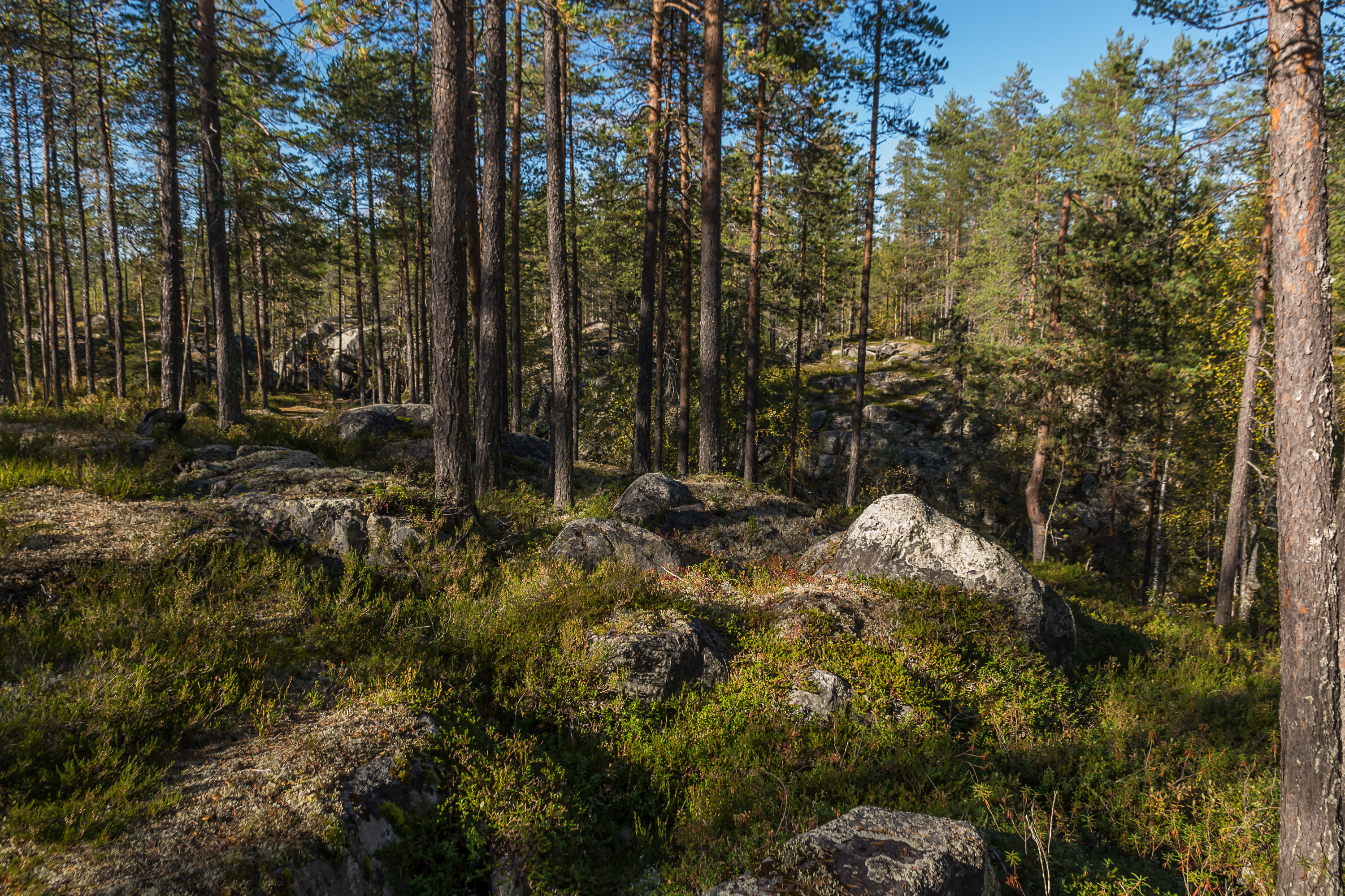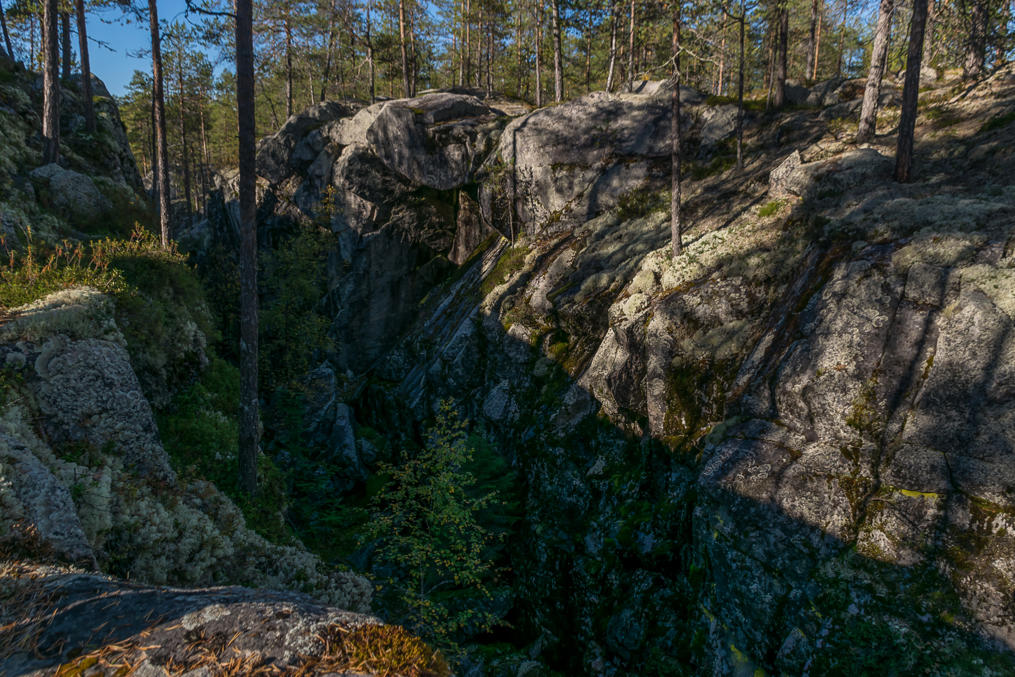 75. Ну и последнее место, куда можно заглянуть — ущелье Хииденкиркко (Hiidenkirkko, фин. Церковь лешего), единственное место из восточной части Хюрюнсалми в этом посте. И единственное, где я был до 2025 — эти фотографии с сентября аж 2016.