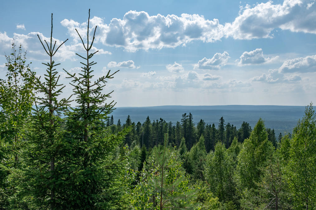74. Виды, конечно, ожидаемые — зеленое море во все стороны, по пологим-препологим сопкам, кварцитовым корням древних, давно разрушившихся гор-Карелидов. Можно различить склоны Уккохаллы и ветряки, скорее всего на горе Лумиваара к юго-востоку (тезка села Лумиваара из Ладожской Карелии, да). В Кайнуу мало ветровых электростанций, да и во всей Восточной Финляндии их почти что по пальцам пересчитать можно; ветровая энергетика у нас — западная тема, особенно во всех регионах Остроботнии. На западе у моря лучше дует, конечно, но более важно тут то, что исторически финские вояки обычно запрещали строить ветряки на востоке, так как это предположительно мешает радарам, направленным в сторону России. Сейчас вроде попроще с этим стало, по крайней мере в Кайнуу сейчас обычно разрешают. С другой стороны, сейчас и строят эти ветряки уже не так активно — не очень выгодно уже, нередко бывает электричество бесплатное или с отрицательной ценой, когда по всей Финляндии дует хорошо, да и гос. субсидии вроде уже не особо на эти ветряки дают.