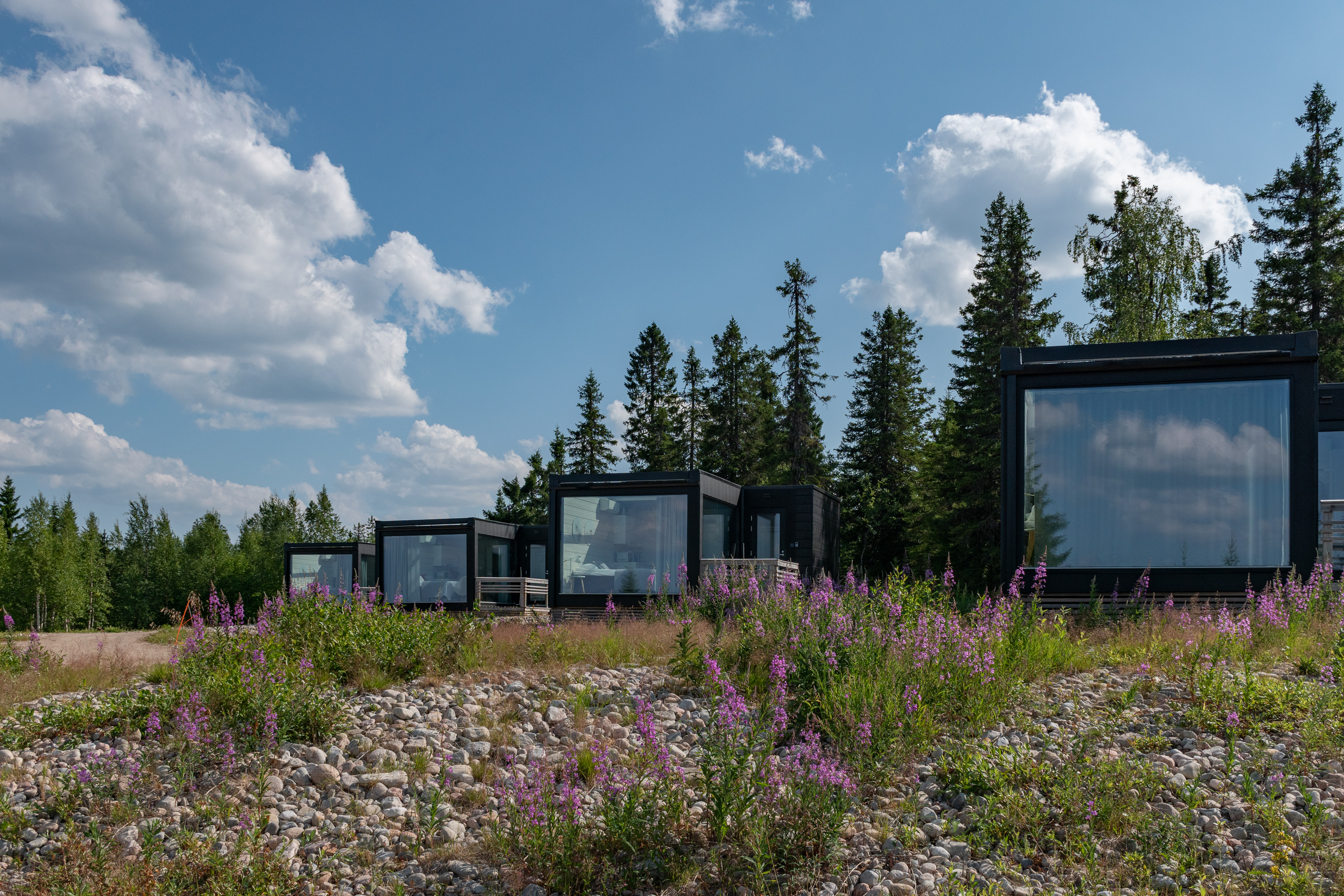 63. На Пиени-Туомивааре, куда я заехал полюбоваться видами, стоят над склонами такие вот современные модные коттеджики со стеклянной стеной и крышей, чтоб северным сиянием любоваться. Летом сейчас, по-видимому, закрыты, в них наверняка та еще теплица в жару-то.