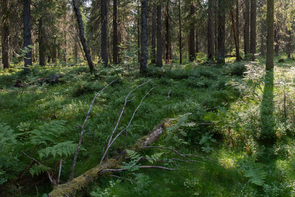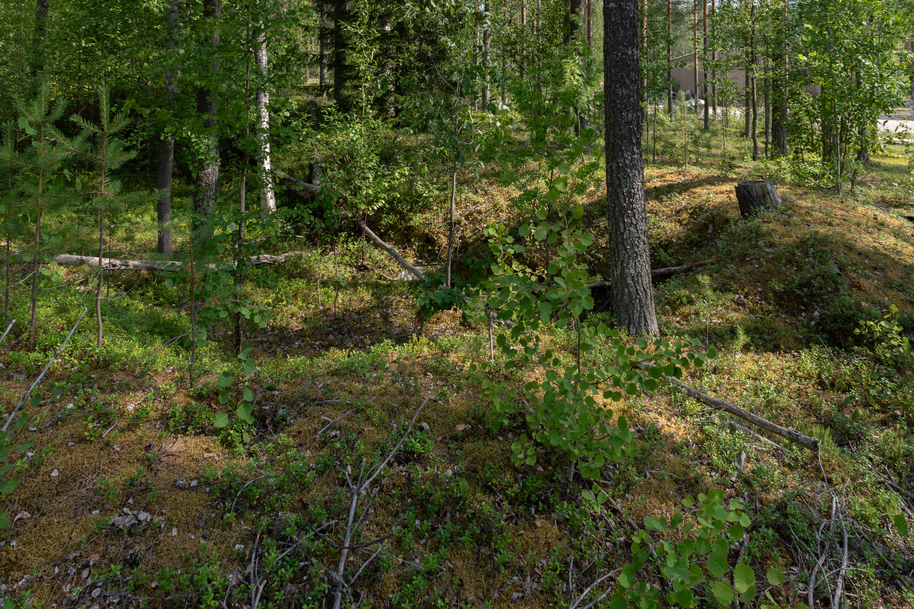 50. Лес по пути к заводику. Довольно сырой участок. Выбирать для краеведческой поездки в Кайнуу июль месяц вообще было рискованным делом — на востоке и севере Финляндии в середине лета комары заживо сожрать могут. В этом году, однако, из-за июньских дождей и потом июльской жары ситуация с комарами была на удивление терпимая, кроме самых сырых и тенистых мест, зато совершенно безбожно расплодились слепни, с которыми у меня до сих пор исторически как-то никогда проблем не было, а тут кругом эти бомбовозы летали.