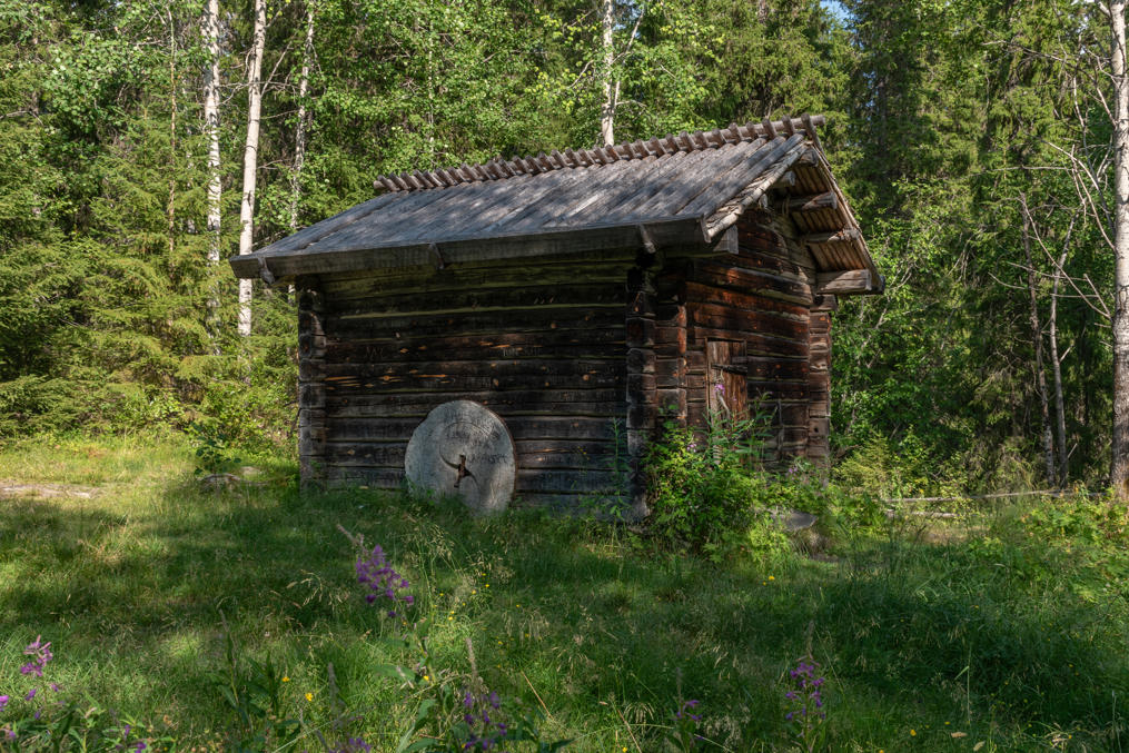 46. Но хутор Халла тоже можно посетить — там разрешен свободный доступ к памятнику Деду Халла. В хуторе интересно то, что это типичный для Кайнуу, а также Северной Карелии и Северной Савонии, хутор на вершине пологой сопки. Земледелие в этих краях, конечно, совсем не то же, что в находящейся на тех же широтах у Ботнического залива Остроботнии; тут климат намного континентальнее, плотность населения была намного меньше, и те, кто все-таки тут селился, старались делать это не где пониже, а где повыше, на сопках — конечно, на невысоких и не очень очерченных, но все же. На сопках была более плодородная земля и меньшая вероятность заморозков. Земледелие на них было, конечно, подсечно-огневое, сохранявшееся тут на востоке вплоть до начала 20 века.