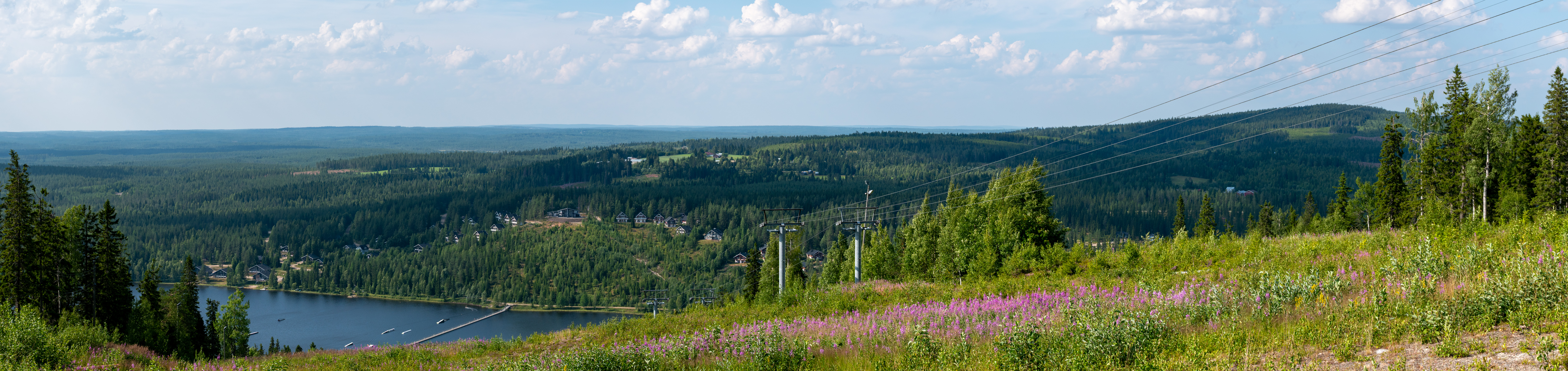 60. Как видно на этой панораме с верхушки горнолыжных склонов, Уккохалла оказалась весьма удачно расположена; напротив горы со склонами, Пиени-Туомиваара (Pieni Tuomivaara, фин. Малая Черемуховая сопка), через озеро Сювяярви (Syväjärvi, фин. Глубокое озеро) возвышается другая гора, Исо-Туомиваара (Iso Tuomivaara, фин. Большая Черемуховая сопка). Исо-Туомиваара — самая высокая (естественная) точка всей области Кайнуу, 388 м над уровнем моря, около 180 м над озером.