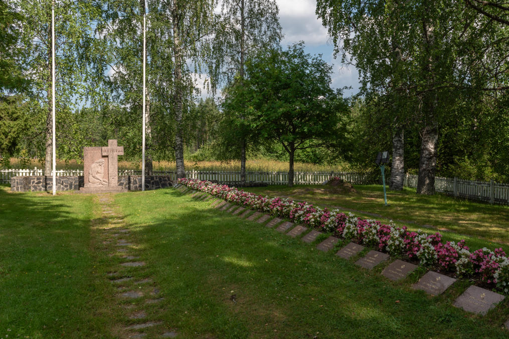 23. Напротив церкви стоит еще один памятник войны — сюда в ригу (сарай) хутора Салмела (который стоит через дорогу, и где сейчас располагается кофейня "У бабушки" (Mummula)) зимой 1939-1940 привозили тела погибших в битвах под Суомуссалми и на Раатской дороге финнов. Около 700 человек — хотя советские потери тогда были больше буквально на порядок, финнам тоже пришлось несладко.