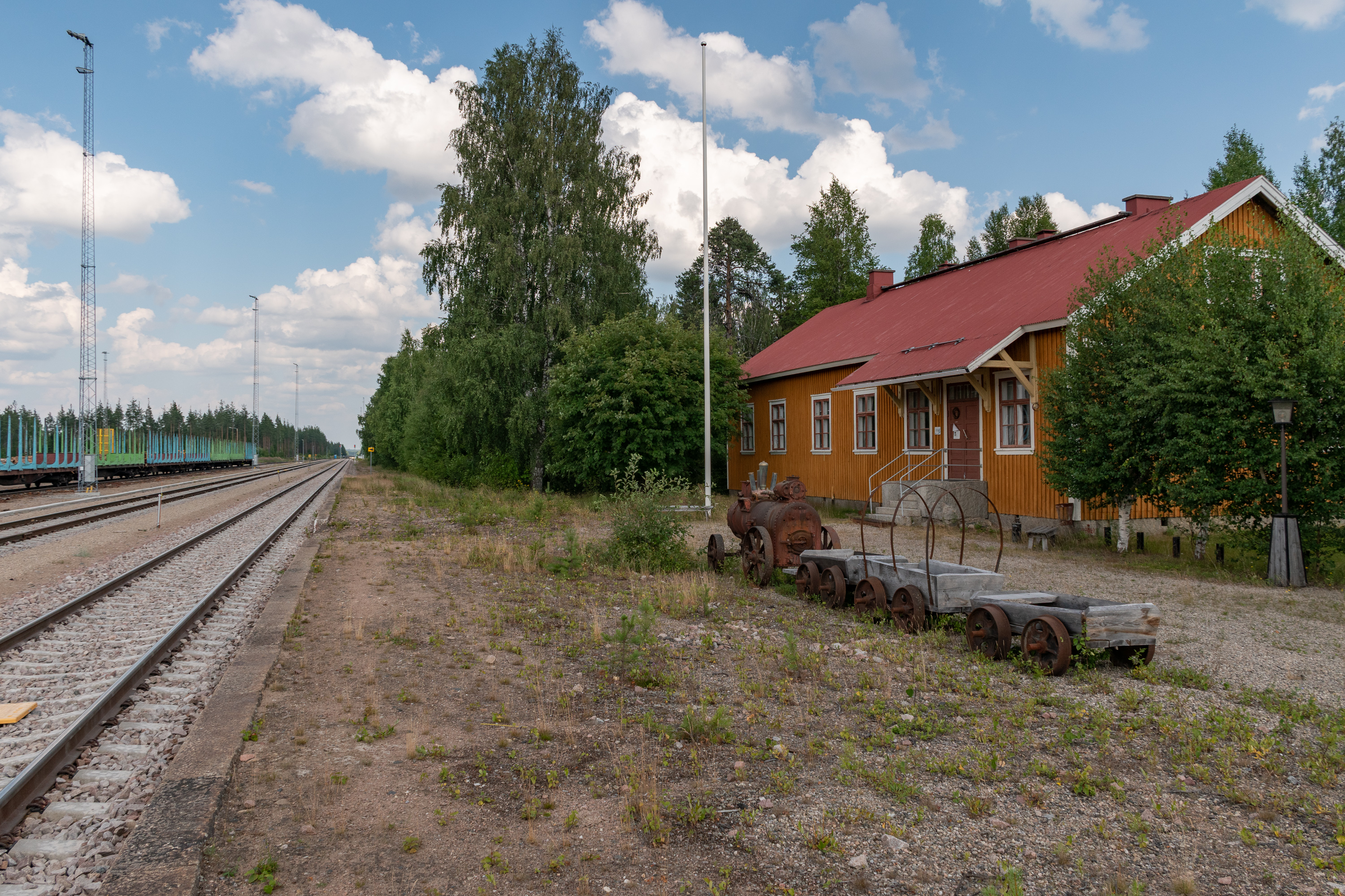 Зато остальную часть железной дороги капитально отремонтировали в 2021-2024, на фото хорошо заметно, что все совсем новенькое. Малодеятельная лесовозная ветка — пассажирское движение закрыто с 1982 — была долгое время под угрозой закрытия, но в 2020 ее решили-таки реконструировать, выделили деньги в рамках программы по стимулированию экономики из-за коронакризиса. Из программы той хорошего вышло мало — деньги все освоили и местами таки сделали или построили что-то хорошее, но какой-то особой видимой пользы экономике в целом особо заметно не было — но тут все-таки получилось достаточно удачно, потому что в 2022, как известно, Финляндия прекратила импортировать лес из России, а значит, своего леса стали рубить больше и возить его приходится теперь больше.