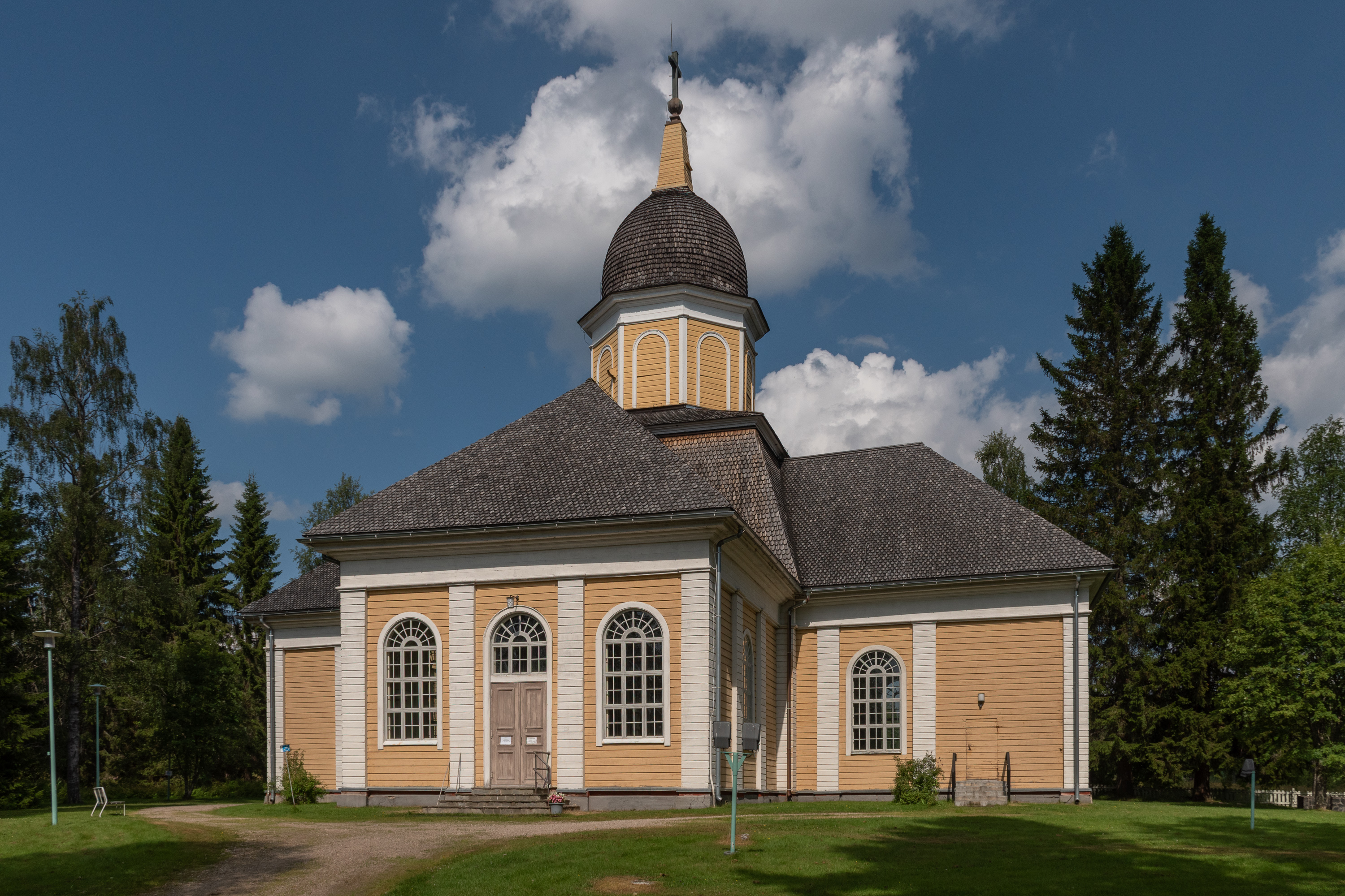 21. А у основной трассы 5 чуть дальше — церковь Хюрюнсалми, уцелевшая в войну. Старая, 1786 года, остроботнийского храмодела Якоба Рийфа, довольно классического облика.