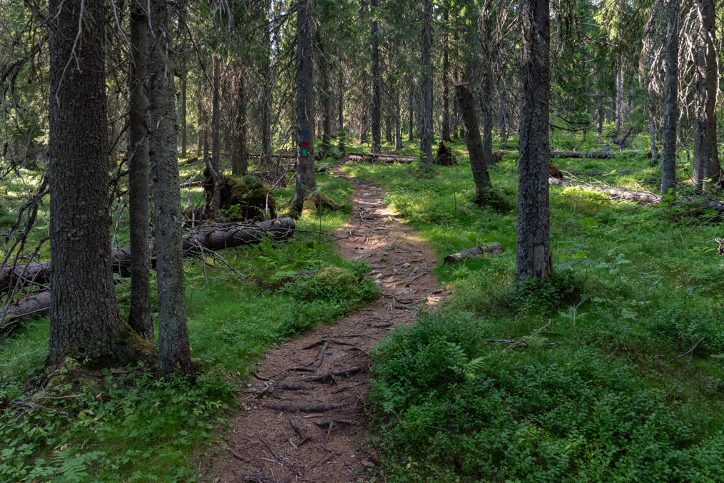 72. По всей тропе я не ходил, только по участку до смотровой вышки. Тропа проложена по старому еловому лесу по одной из сопок массива Пальякка (Paljakka). Пальякка занимает довольно большую территорию, где-то 7x15 км, это только ее северо-восточный край; упомянутый одноименный горнолыжный центр находится по другую сторону, западную. В числе прочего на Пальякке есть заповедник, достаточно приличных размеров для заповедника, 29.5 кв. км; его небольшую часть, ближе к горнолыжному центру, можно осмотреть, есть официальная тропа (в заповедниках разрешено ходить только по тропам, если они есть, а в мелких их обычно и нет). Ну это тоже уже на стороне Пуоланки, и я пока не бывал там.