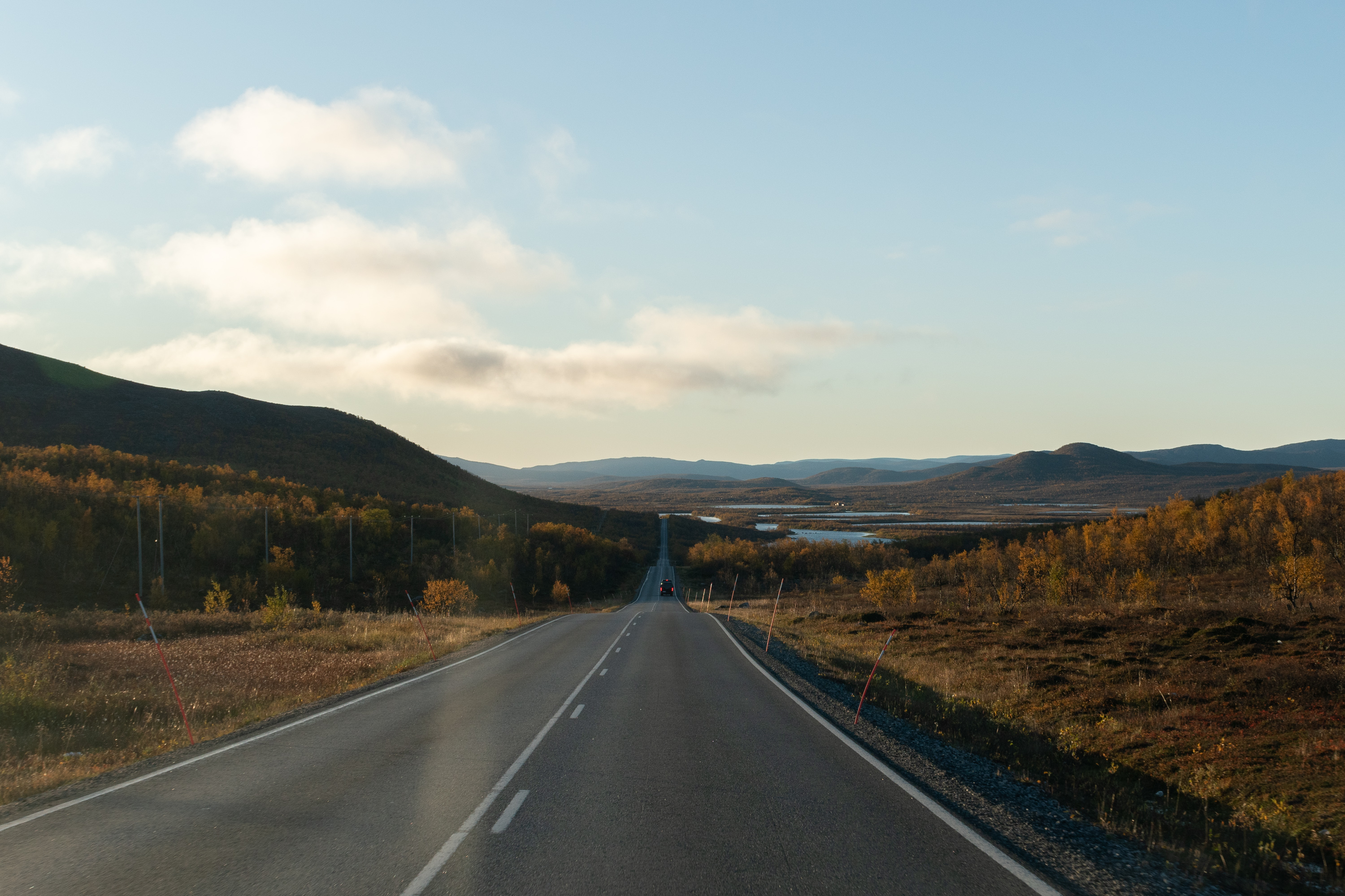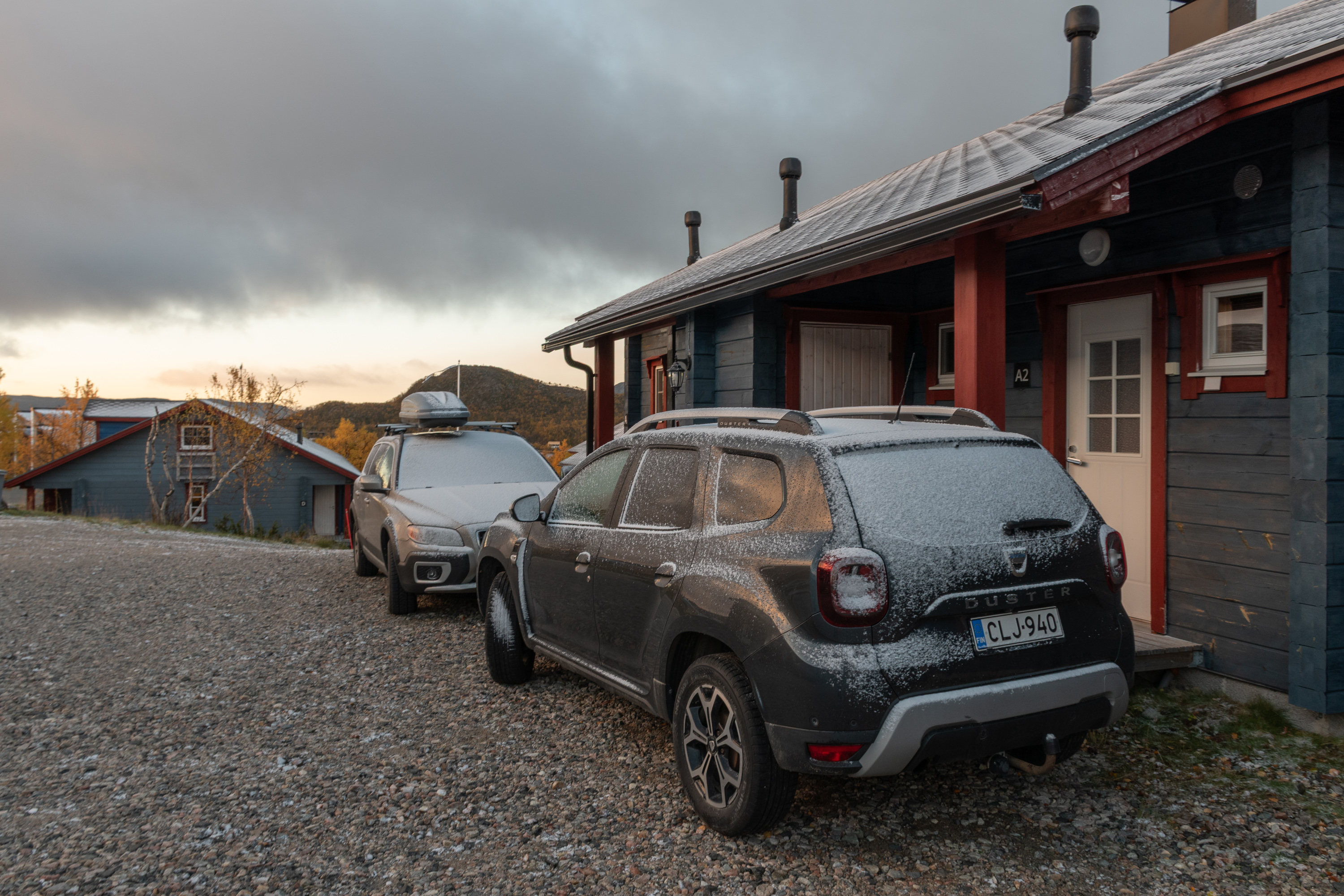 Все бы хорошо, но, как я говорил, погода выдалась холодная (буквально пару дней всего, но все же), а так далеко на север — уже были заморозки и легкий снежок ночью. Выезжать было страшновато, опасался, что на дороге будет лед, но повезло — чуть-чуть в пределах самого Килписъяври было, дальше по трассам уже сухо. Ну а там уж вскоре и солнце взошло, стало чуть греть.
