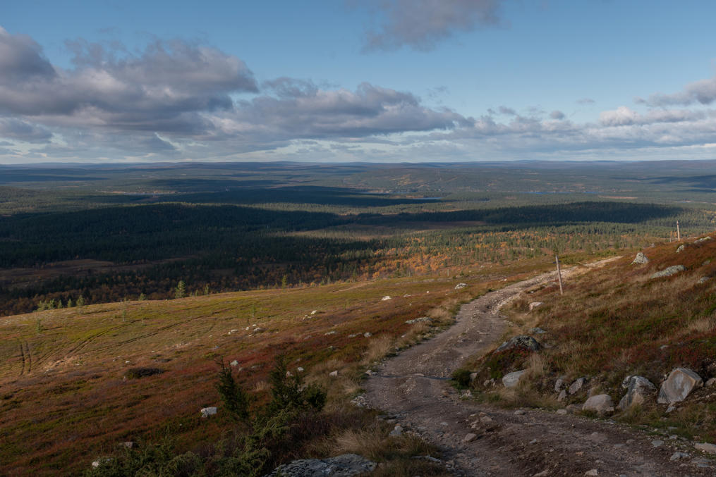 Как и Кархункиеррос, Хетта-Паллас вполне заслуживает свою популярность — это место, где с лапландскими тундрами познакомиться поближе проще всего в стране. Тундрами я здесь и далее называю то, что по-фински зовется tunturi — характерные для Финской Лапландии пологие округлые горы с лысыми верхушками, достаточно высокие и северные, чтобы на них уже не росли деревья; аналогично как и про горы Кольского полуострова в России говорят — Хибинские тундры, Ловозерские тундры. Хотя сами тундры Хетта-Палласа похожи, например, на то, что я видел в национальном парке Урхо Кекконена в Восточной Лапландии, здесь, во-первых, они идут практически непрерывно — относительно скучных лесных участков практически нет, кроме самого начала. Маршрут проходит с севера на юг вдоль пологого горного хребта, через массивы Оунастунтури и Палластунтури, и да, на горы придется карабкаться с рюкзаком, но все-таки подъемы весьма щадящие по уклону и высоте (не более 300 м за раз), и отлично вознаграждают замечательными видами. Маршрут также идеально оборудован местами для привала и ночевки, а при необходимости можно и укоротить его — есть несколько мест, где с этого хребта можно просто свернуть в сторону и выйти к деревням у подножия.