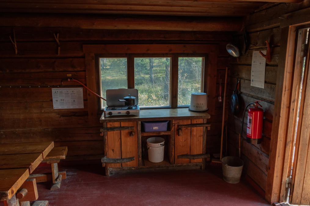 Места для привала же расположены с интервалами 1-6 км, то есть их предостаточно, хотя не у всех места для палаток хорошие и в достаточном количестве. Крупнейшие места для привала — это хижины Sioskuru, Hannukuru и Nammalakuru, расположенные как раз с интервалом в дневной переход, при условии, если разбить маршрут на четыре дня. В этих местах есть как общедоступная хижина (autiotupa), где кто не успел — тот опоздал, так и хижина с бронируемыми спальными местами (varaustupa), где за 20 евро за ночь с носа можно забронировать койку, и условия чуть более цивильные — матрасы и подушки есть, правда, без постельного белья все равно, конечно. Но в любом случае спать придется в одном помещении с другими людьми почти наверняка, места популярные. В других местах для привала есть только общедоступная хижина (autiotupa) или только коническая хижина-кота (kota), не предназначенная для ночевки.