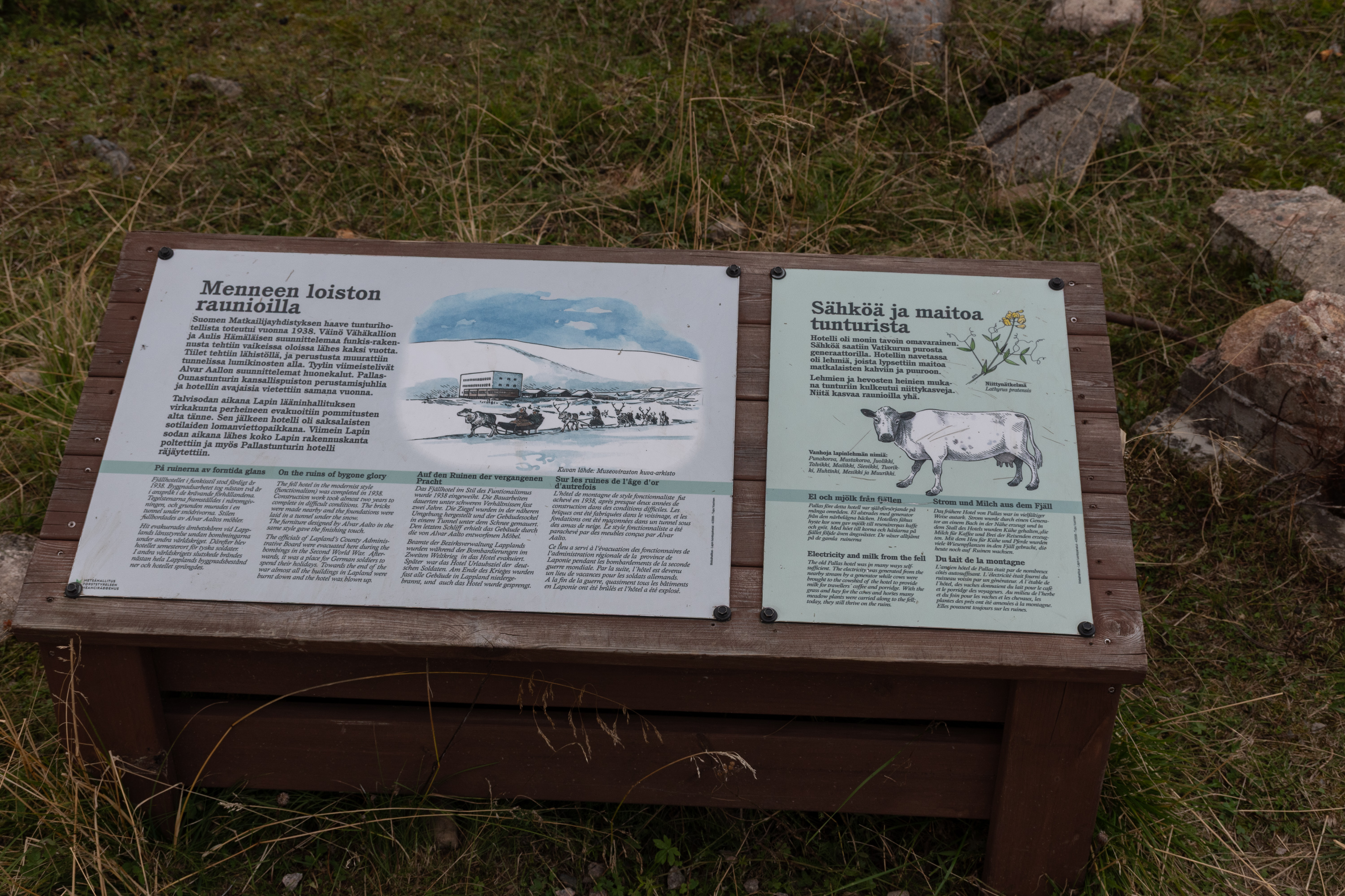 36. Впереди немного необычная хижина, приют Монтелля (Montellin maja). Юстус Элиас Монтелль (Justus Elias Montell, 1869-1954) — финский биолог, родом с Аландских островов, в 1900-1910-х работавший лесником в этих краях, и построивший себе тут маленький домик лесника в 1906. В числе прочего по его инициативе был учрежден в 1916 один из первых заказников страны, в 1938 преобразованный в первый заповедник — Малла, в горах в районе места, где сходятся границы Финляндии, Швеции и Норвегии. С 1930-х работал заведующим биологического музея Академии Або (главного шведоязычного университета страны). Хижину сожгли немцы в войну, но оленеводы отстроили ее уже в 1946 в более или менее прежнем облике. Для ночевки она использовалась до 2021, сейчас заперта на замок, а для туристов тут открыта коническая кота.