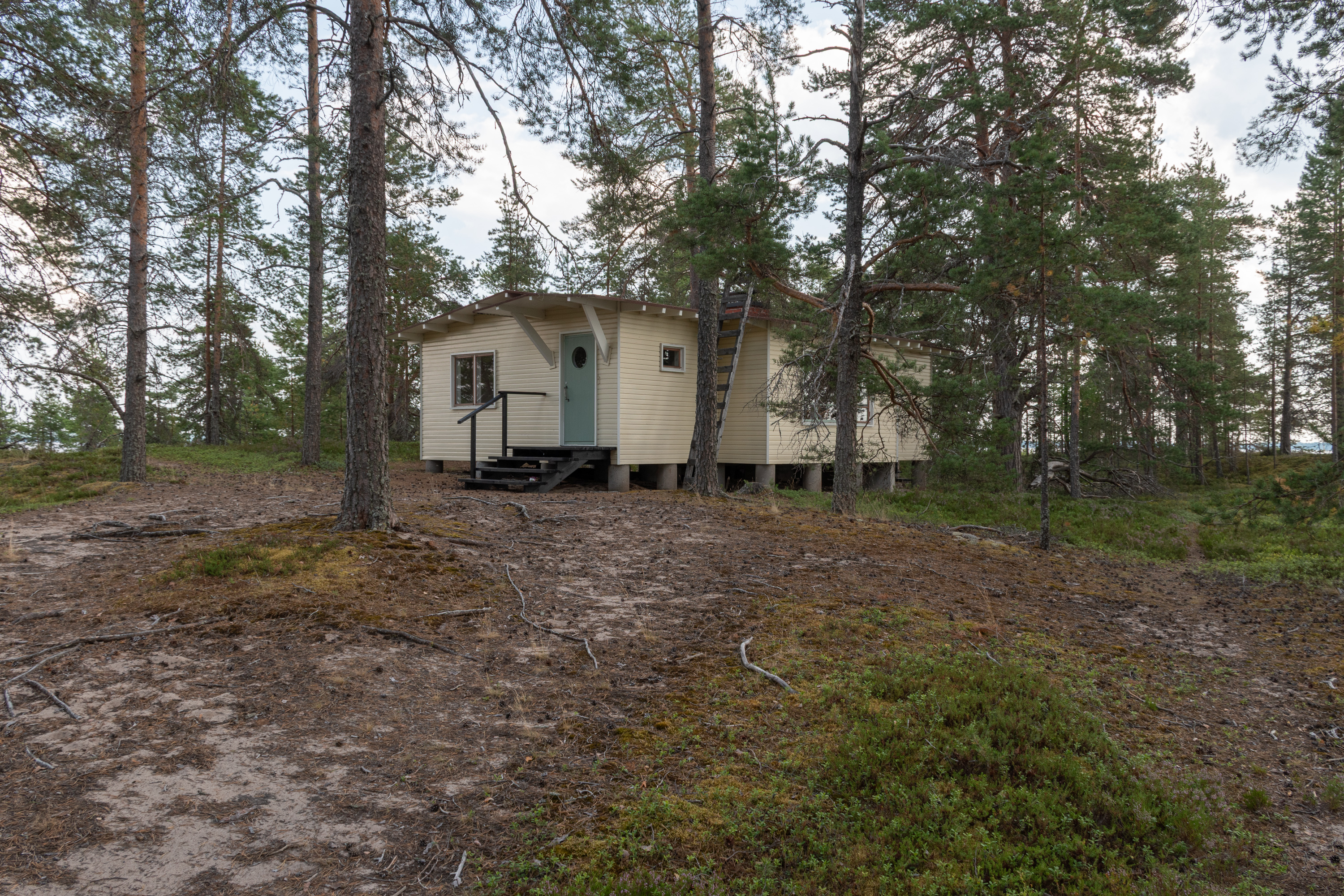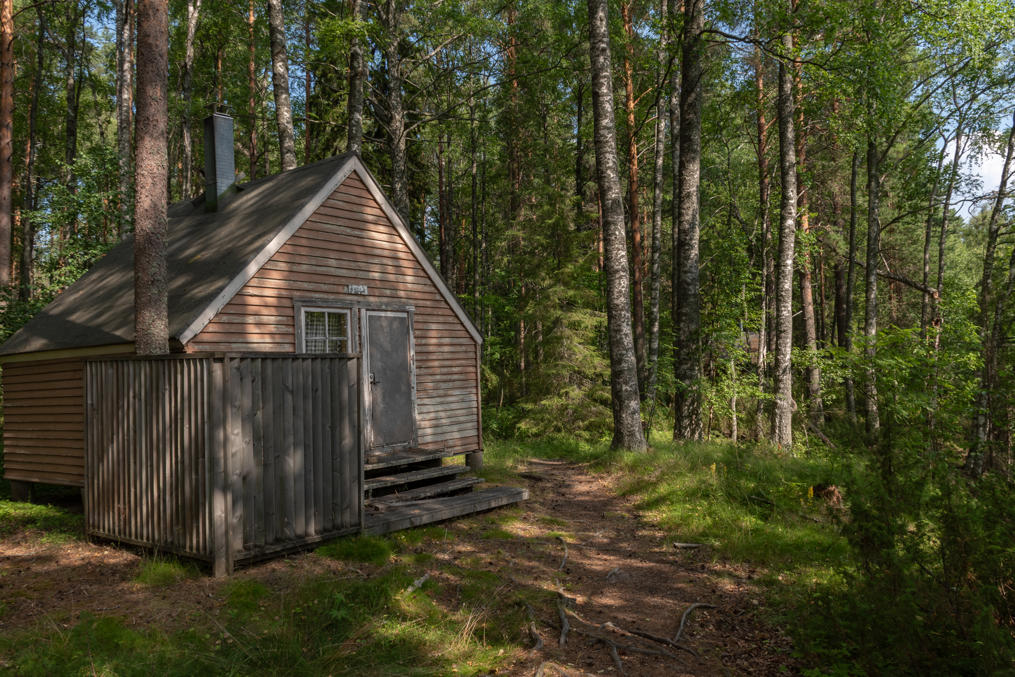 25. А это более нового образца, 1980-х, это уже похоже на домик из типичного кемпинга. Так и стоят все в лесу на берегу, где-то между ними еще общая сауна есть и бывший дом смотрителя острова, единственный, рассчитанный на круглогодичное проживание.