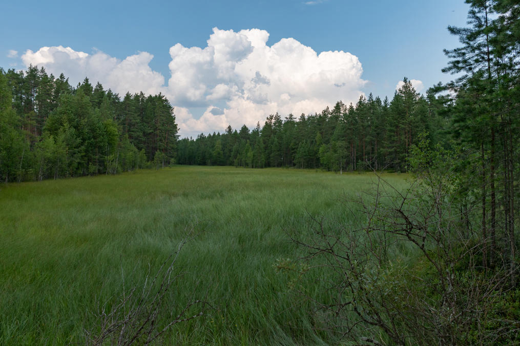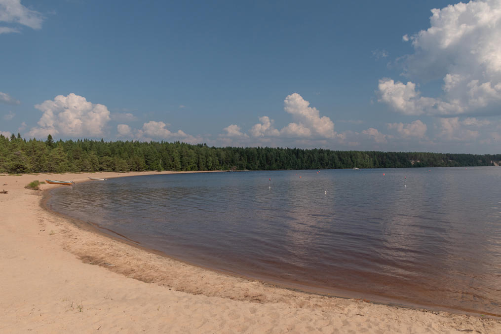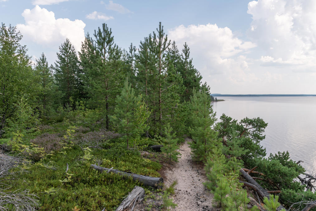 19. Жара и правда стояла под плюс тридцать. Периодически через Восточную Финляндию в те дни проходили грозы, но сильно локальные, я так и не попал за ту поездку под дождь. Конкретно в этот раз над Эрьянсаари как раз стали собираться тучки, и, пока я гулял по острову, стало вдали грохотать и сверкать. Промокнуть так и не удалось, гроза прошла южнее острова.