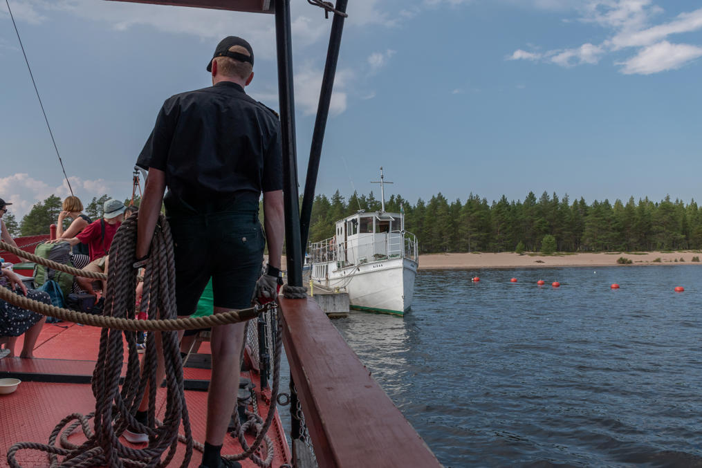 Хотя я был заинтересован именно в осмотре острова, а не купании (хотя погода жаркая стояла), я все-таки выбрал именно пароход, интересно же. Пароходов, преимущественно озерных, в Финляндии сохранилось в принципе не так уж мало, но я всего один раз до этого катался, в 2016 в Савонлинне, когда своим родителям Финляндию показывал в первый раз.