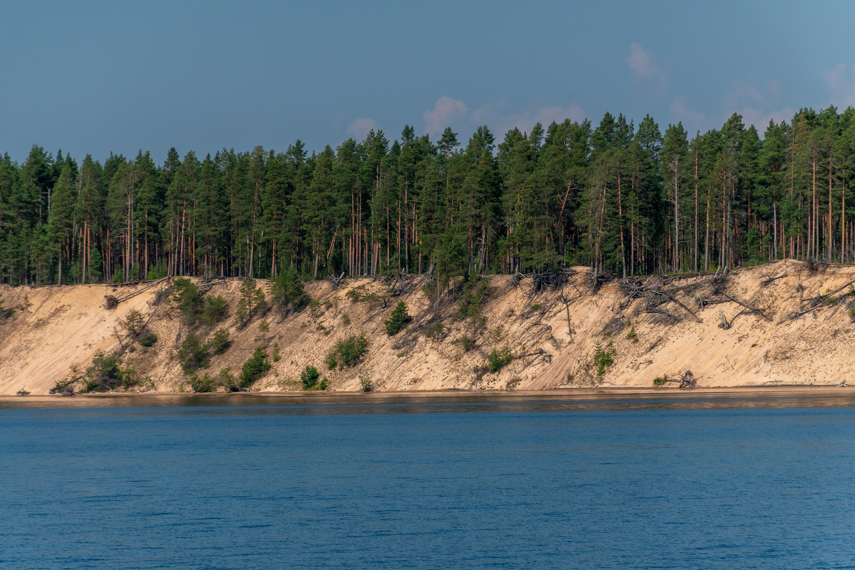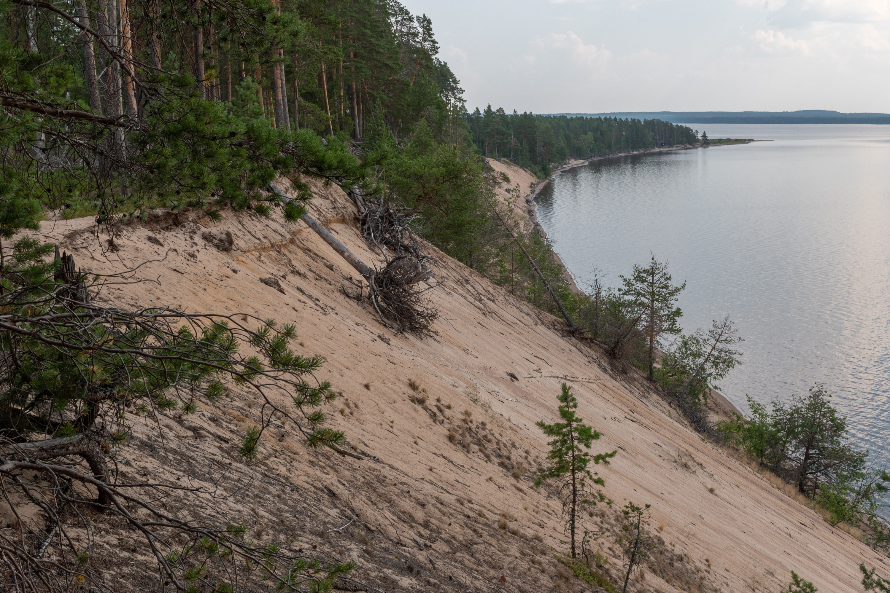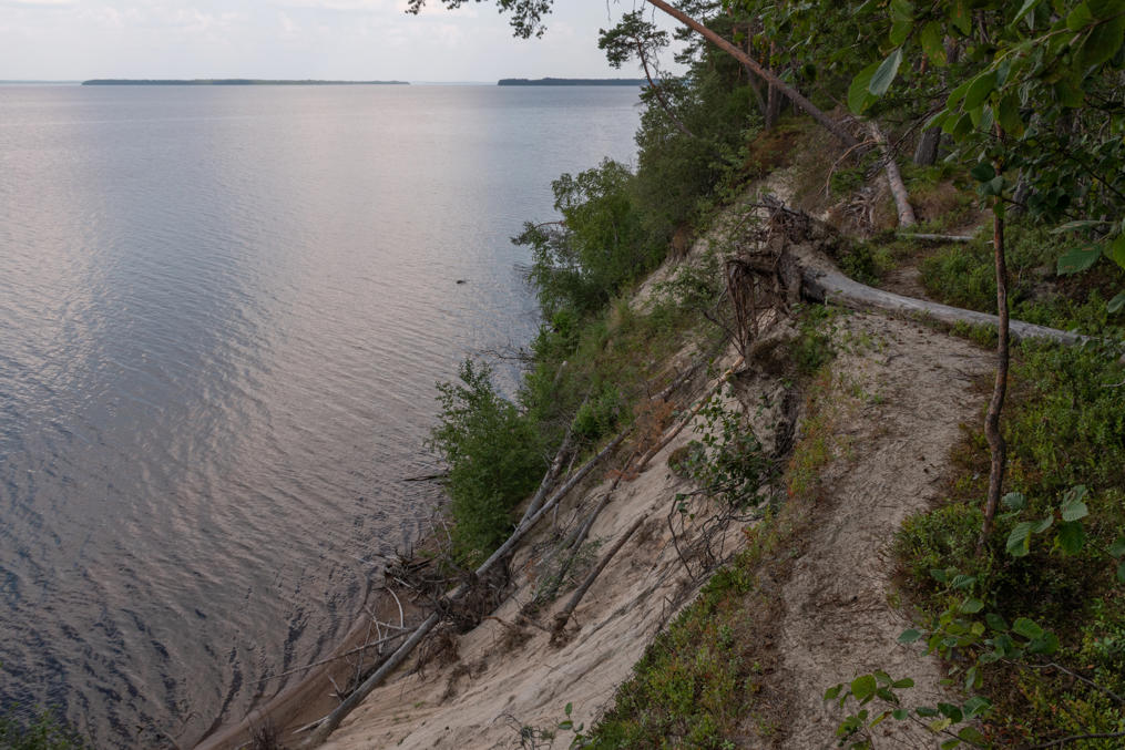 15. А дальше прекрасно видны те самые песчаные обрывы, главная достопримечательность острова. Обрывы непрерывно подтачивают берег и местами завалены соснами, которые больше не могли на них стоять.