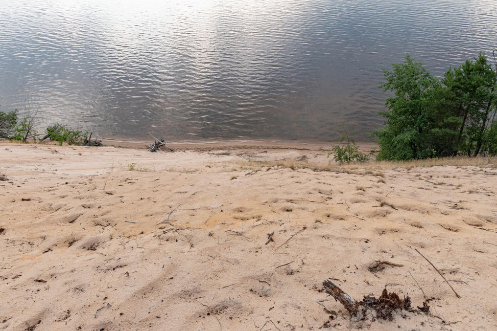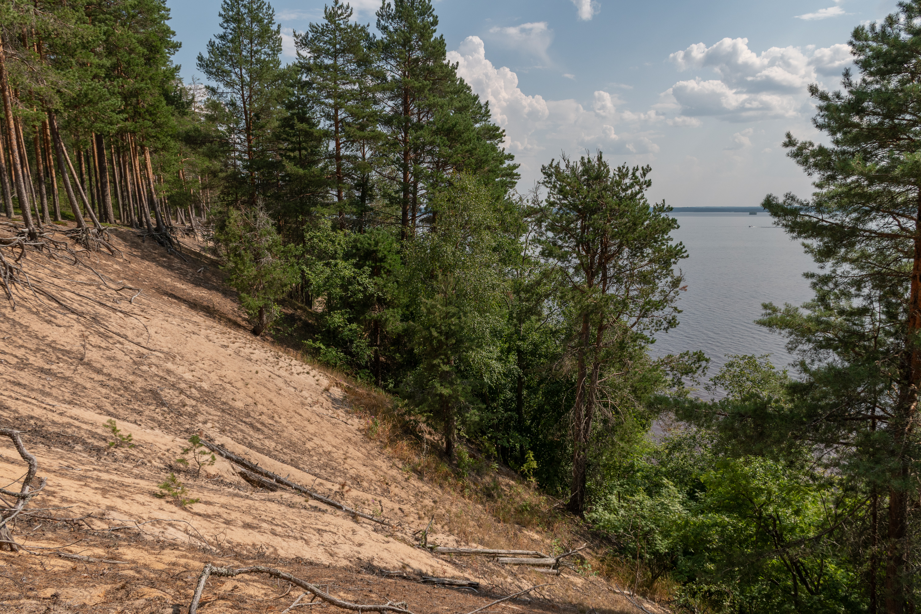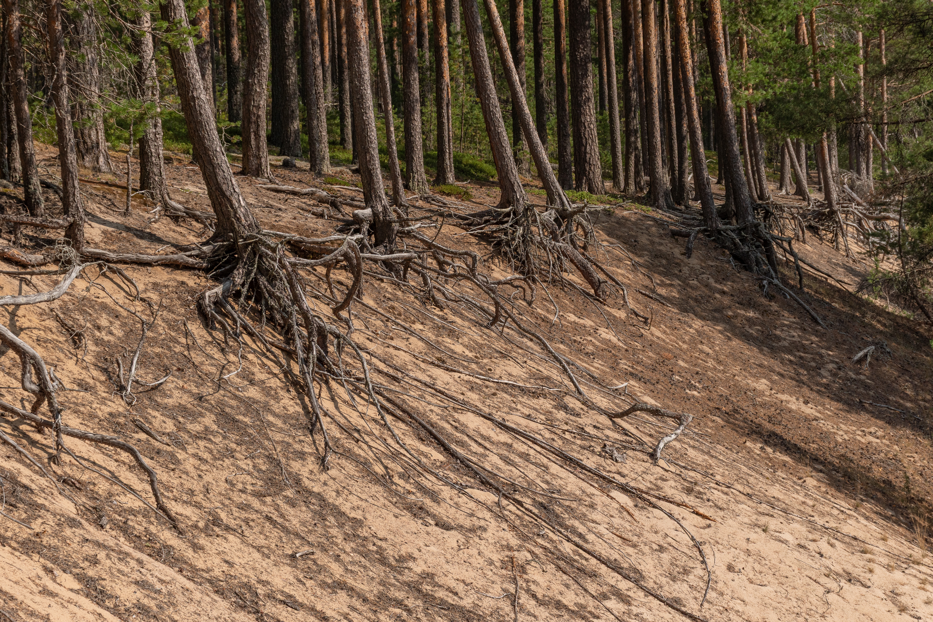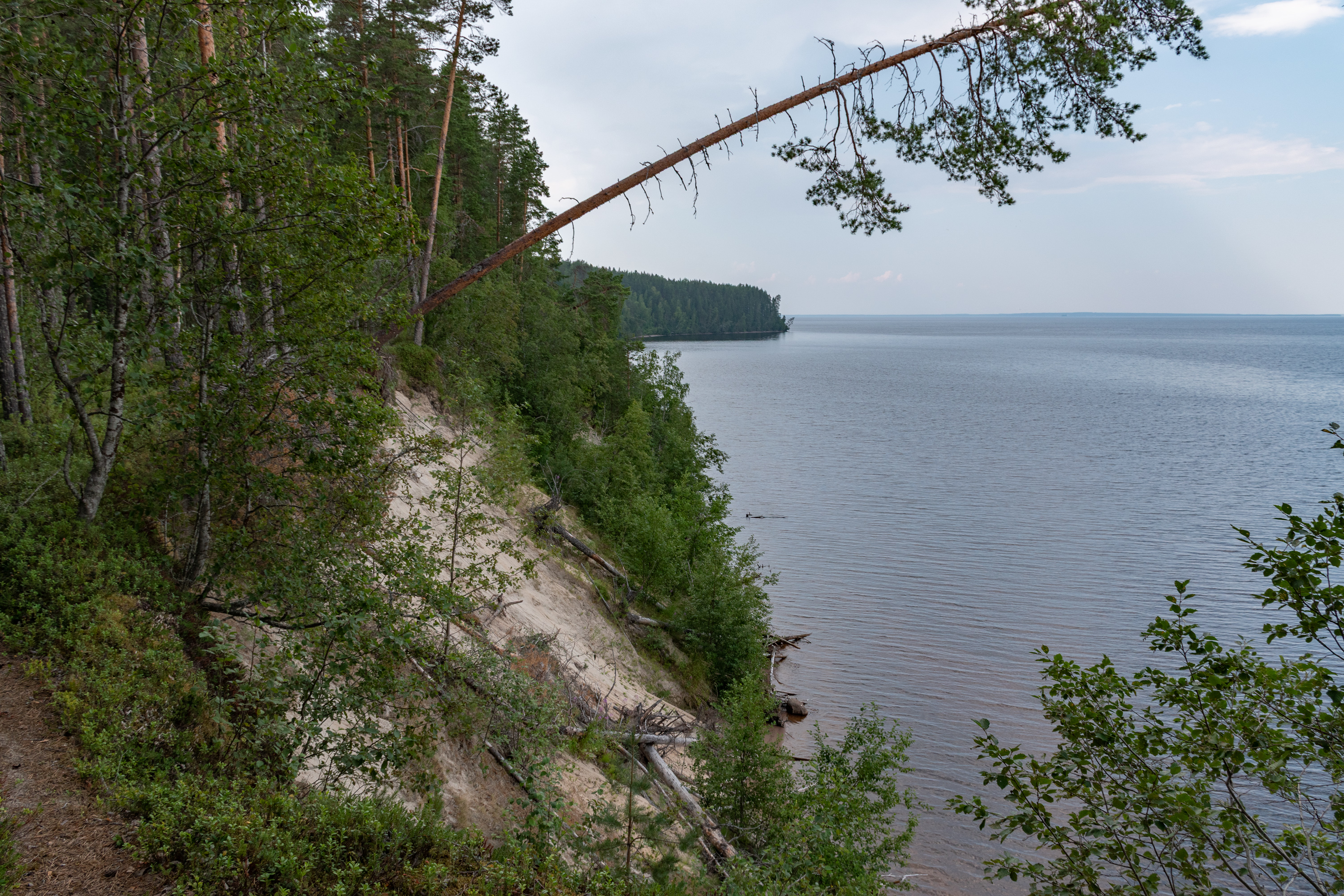 15. А дальше прекрасно видны те самые песчаные обрывы, главная достопримечательность острова. Обрывы непрерывно подтачивают берег и местами завалены соснами, которые больше не могли на них стоять.