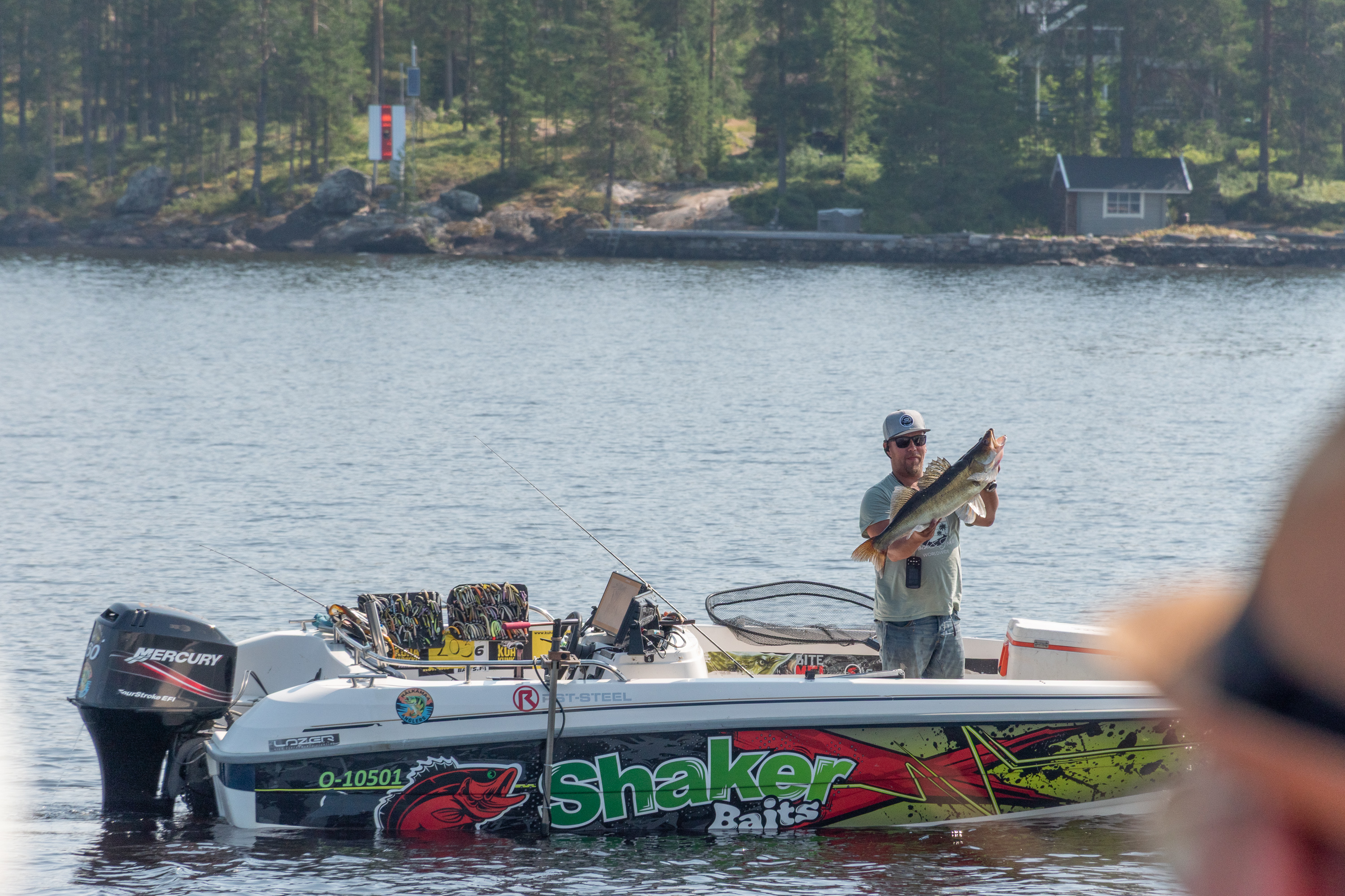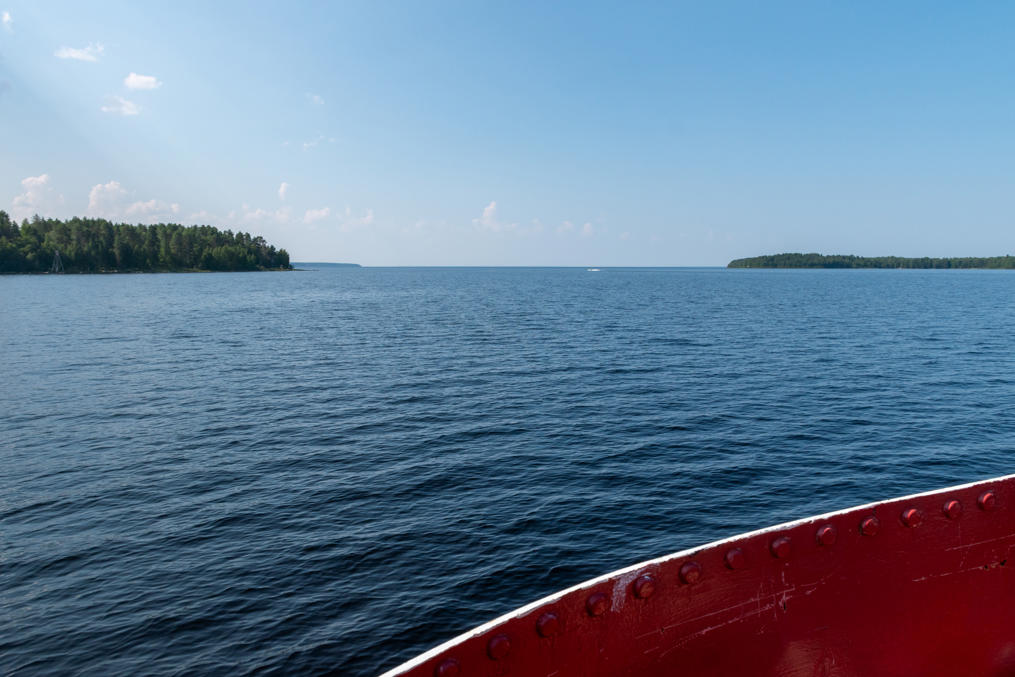 10. В районе Палтаярви проплыли мимо рыбака, который внезапно взял и продемонстрировал нам здоровенную рыбину — не силен в рыбалке, но, кажется, это судак. Вся "Коута" ему дружно зааплодировала (народу на теплоходе было довольно много, хотя день будний, четверг).
