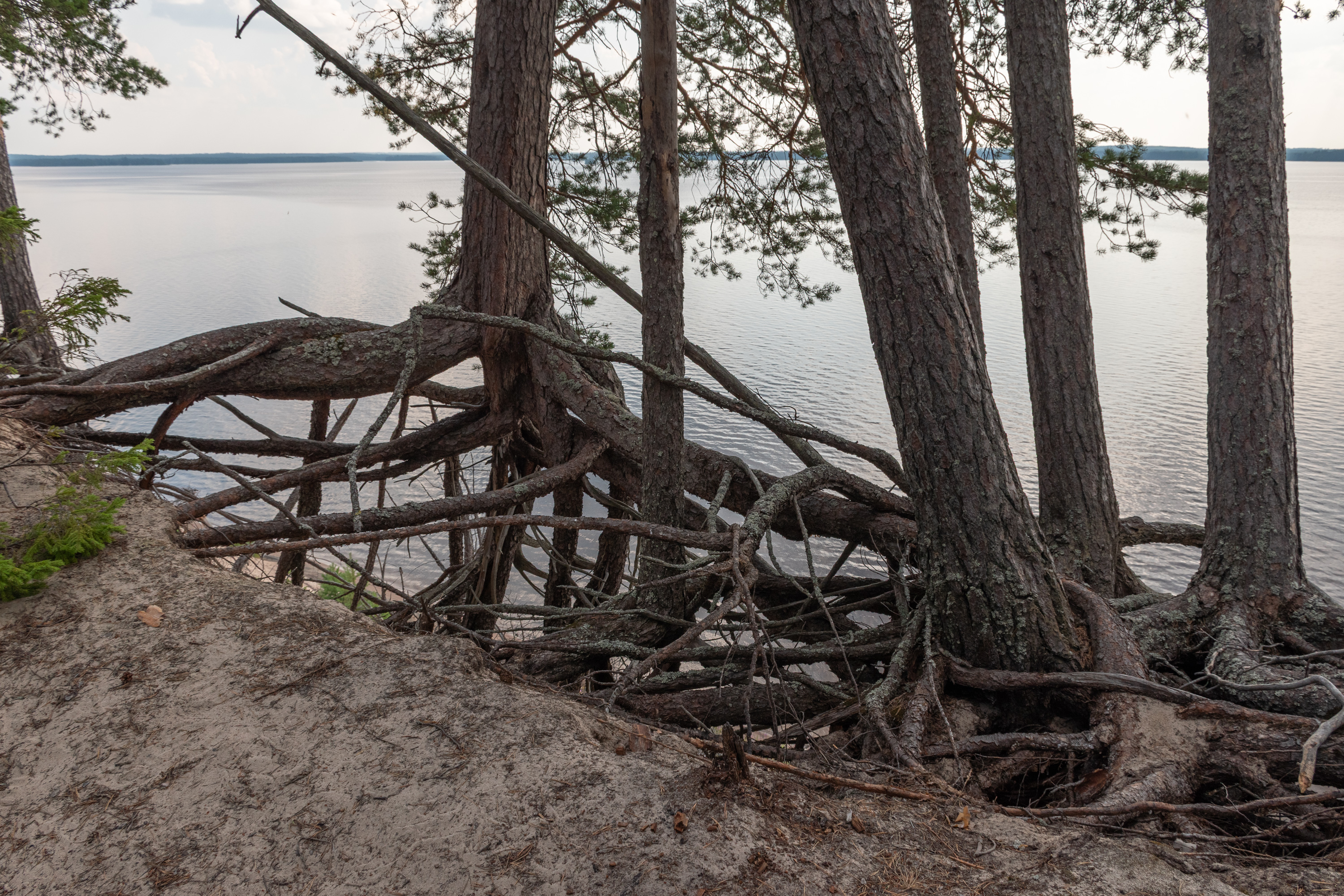 29. Как обычно в таких местах, иные сосны на обрыве уже непонятно, как и держатся.