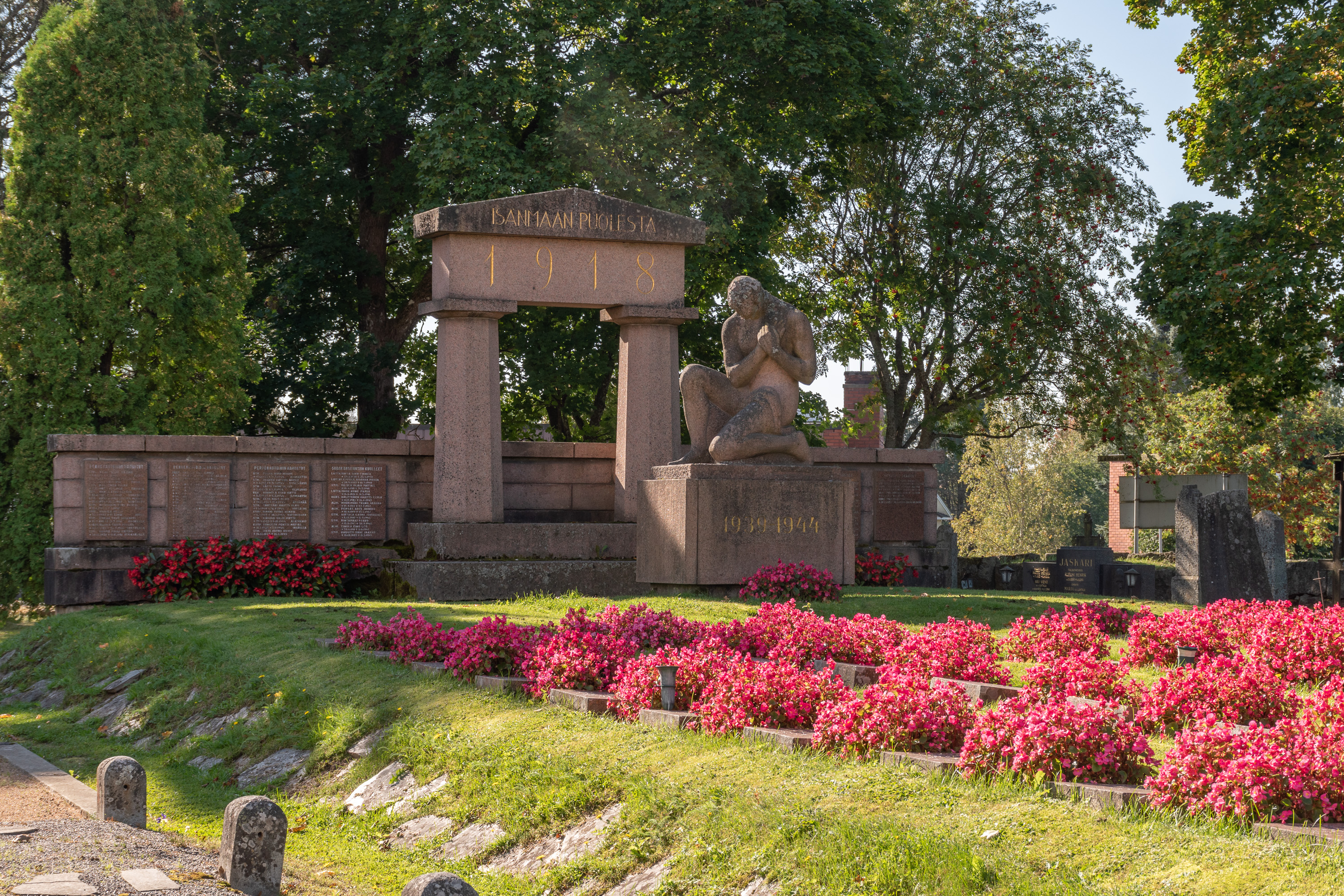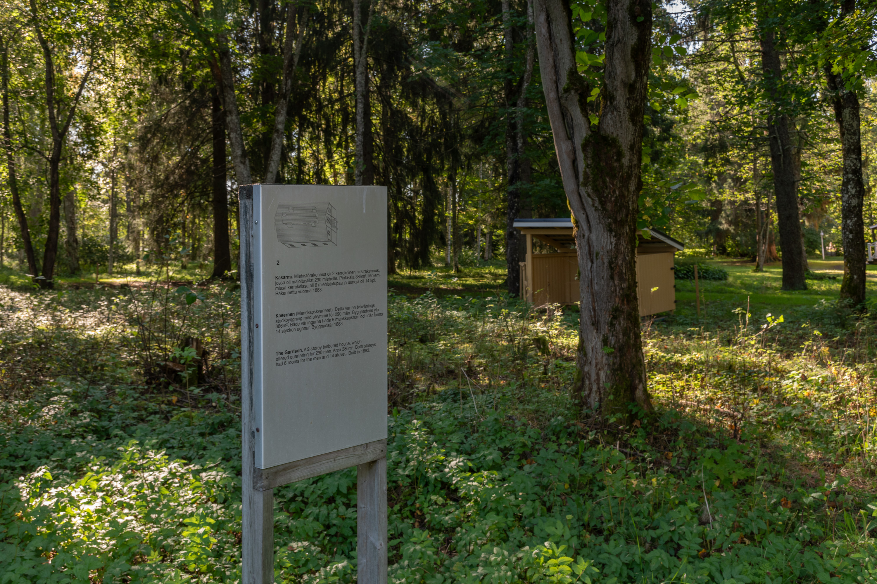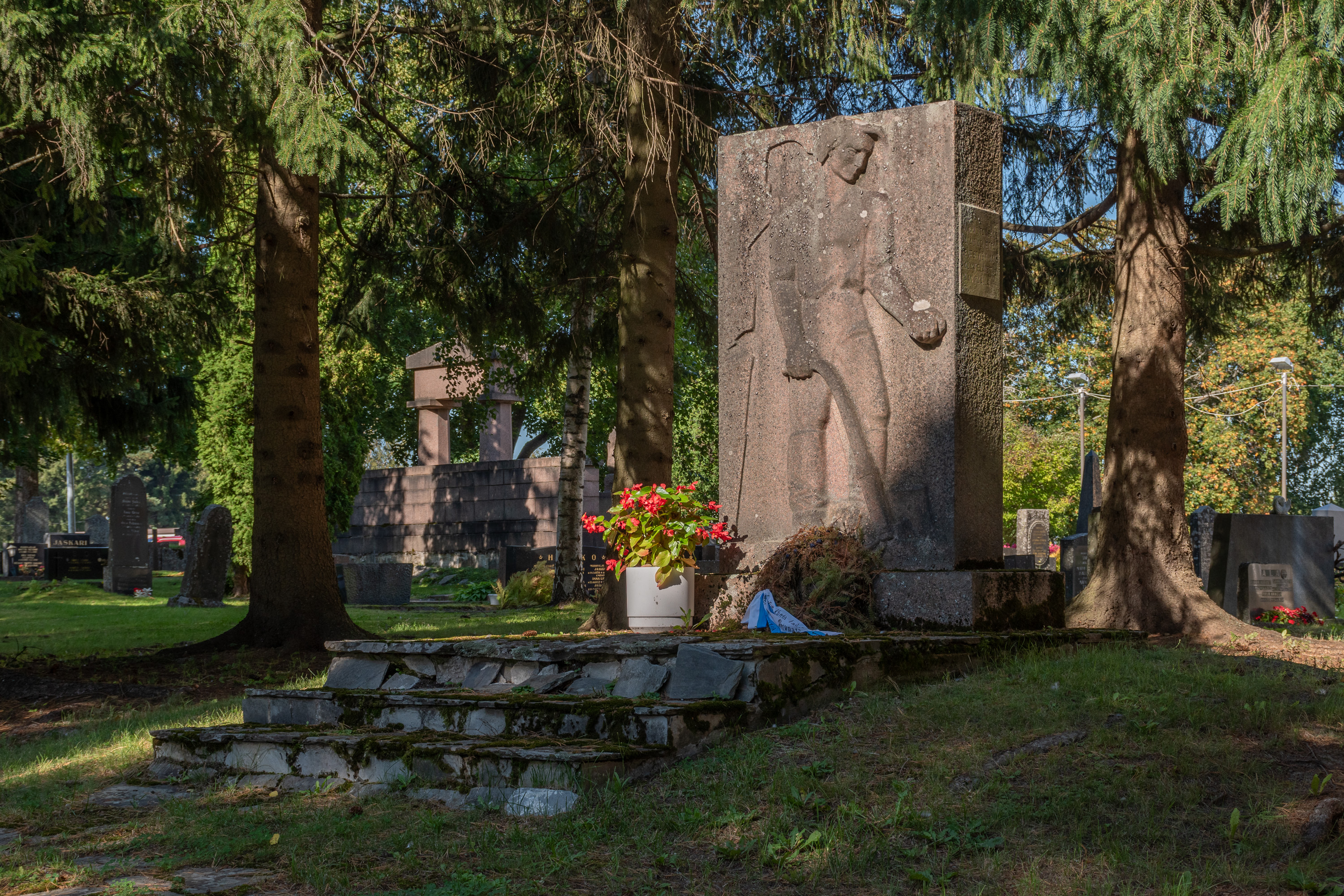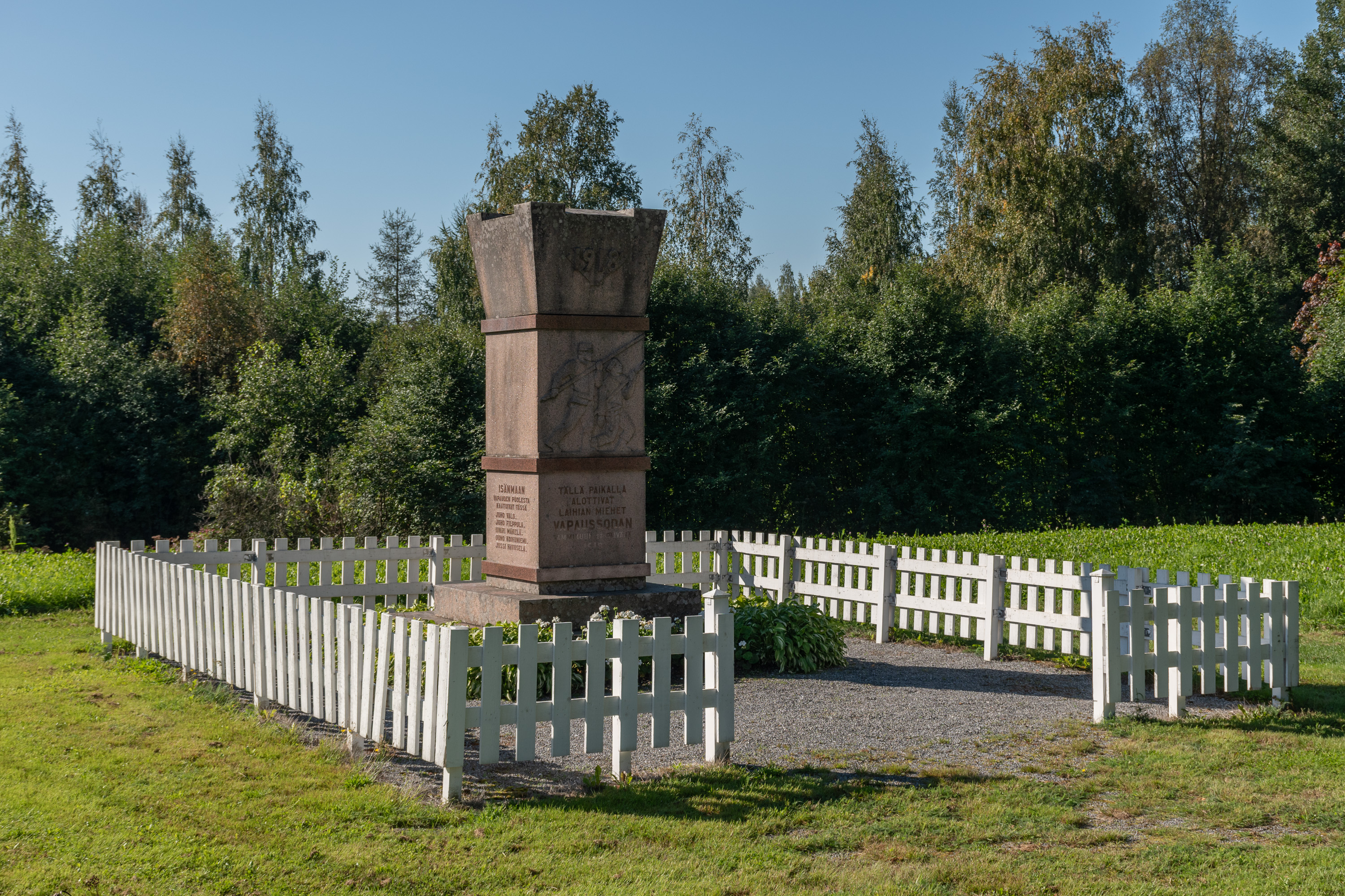 48. Памятник был установлен в 1938 году. Рядом с ним, на месте собственно бывших казарм 10-й (Лайхийской) резервной роты 3-го (Ваасанского) стрелкового батальона армии Великого княжества Финляндского, разбит парк; единственное уцелевшее сохранившееся от казарм здание — т. н. капитанский дом (kapteenintalo). Он был построен в 1882 по типовому проекту, в нем жил командующий ротой и размещался ее штаб. "Капитанским" его стали звать уже в 1920-х, когда в бывшем гарнизоне стали обучать унтер-офицеров. Сейчас он сдается для мероприятий.