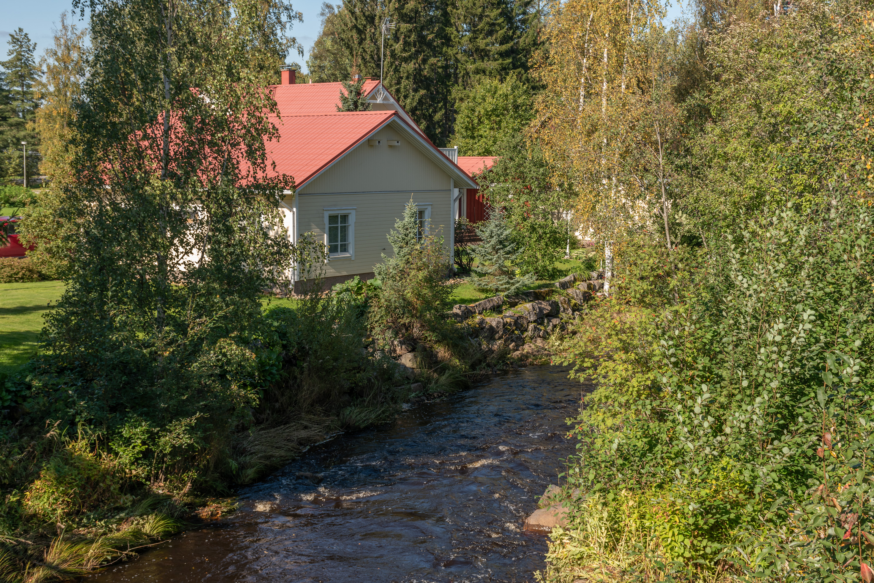 30. Речка Лайхианйоки (Laihianjoki) воображение отнюдь не поражает, но южнее Ваасы вообще до самого Пори с крупными реками плохо. Река течет с юго-востока на северо-запад, и, приближаясь к Ваасе ниже Лайхии, меняет название на Туовиланйоки или Тобю (Toby å) в честь стоящей у нее деревни. Та деревня знаменита одним из старейших каменных мостов Финляндии, про нее у меня был пост. Впадает река в Южный Городской плес (Eteläinen kaupunginselkä) под Ваасой, образуя южную границу города.