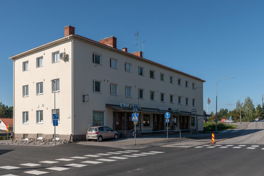 12. В этом доме до 2019 работал несетевой универмаг Kössin Halli, один из редких остававшихся подобных магазинов. Но закрылся-таки. В 2024 открыли молодежное кафе и спортзал, но были вынуждены закрыть уже к началу 2025, не справившись со счетами за отопление.