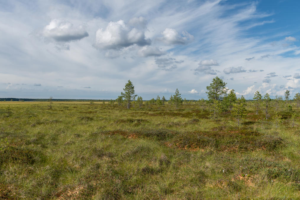 52. Леванева — типичное для Западной Финляндии верховое болото (keidassuo). Ввиду очень отдаленного и неудобного, по старым временам, расположения оно сохранилось в практически первозданном виде; осушать его пытались только лишь немного и по краям, и то канавы сейчас уже практически заросли. Ну и подъехать сейчас на машине не проблема, с трассы 687 Лайхия-Юрва, но все-таки остается довольно глухой угол.