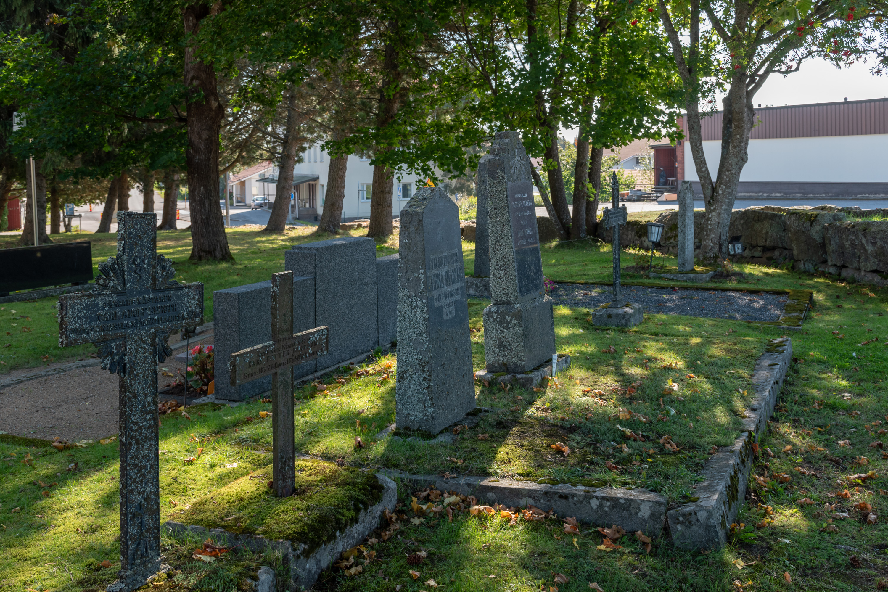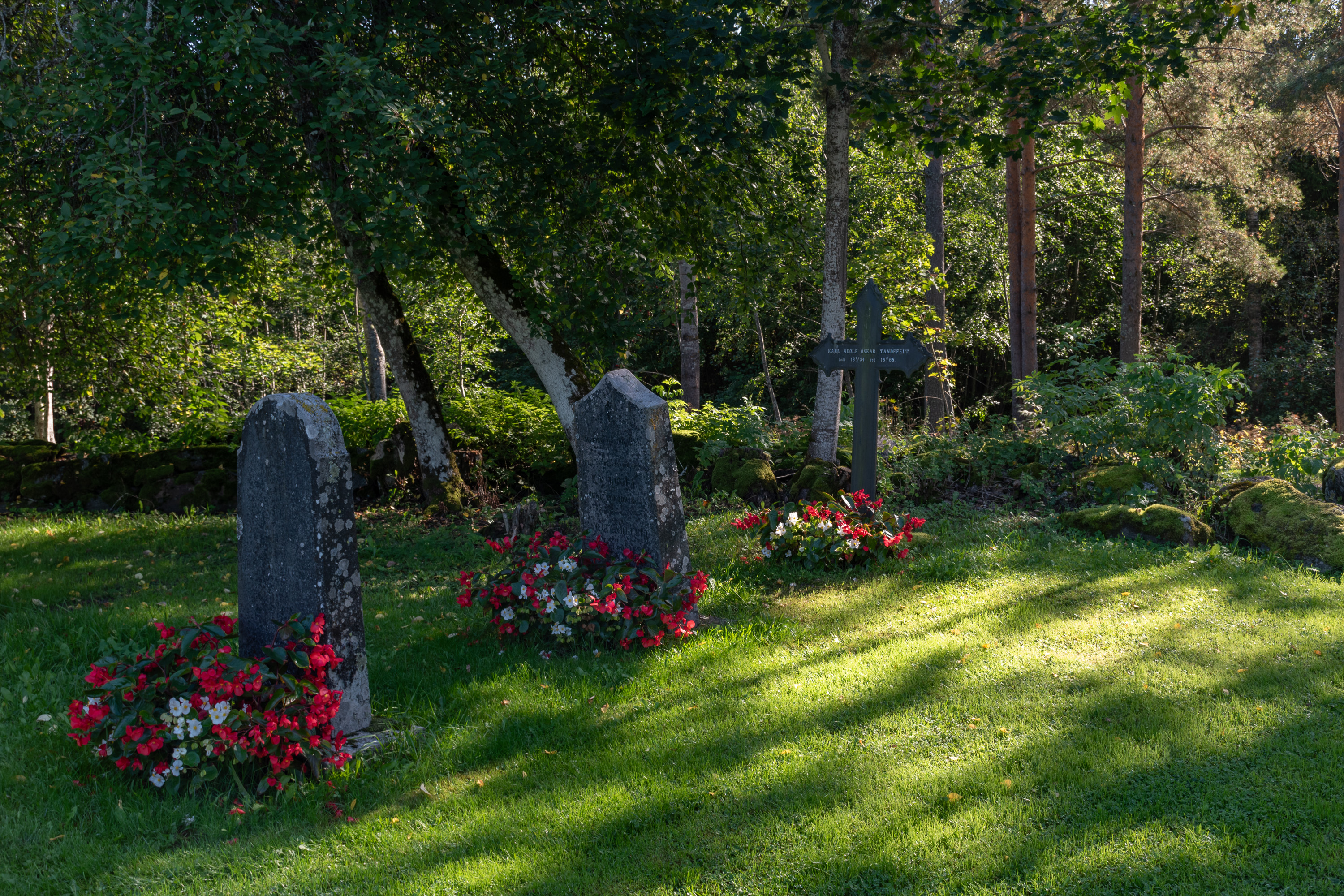6. Старые могилки. Обратите внимание на табличку-клинышек в земле у одного из памятников — так отмечают могилу, которую признали бесхозной (если в течение трех лет за ней не ухаживают родственники (уход считается по определенным критериям), а также уход за могилой не заказан у прихода — так тоже можно — это стоит обычно менее 100 евро за год). Если и после объявления хозяин могилы не находится, она переходит в собственность прихода; приход имеет право после этого при необходимости снести памятник и использовать место для нового захоронения.