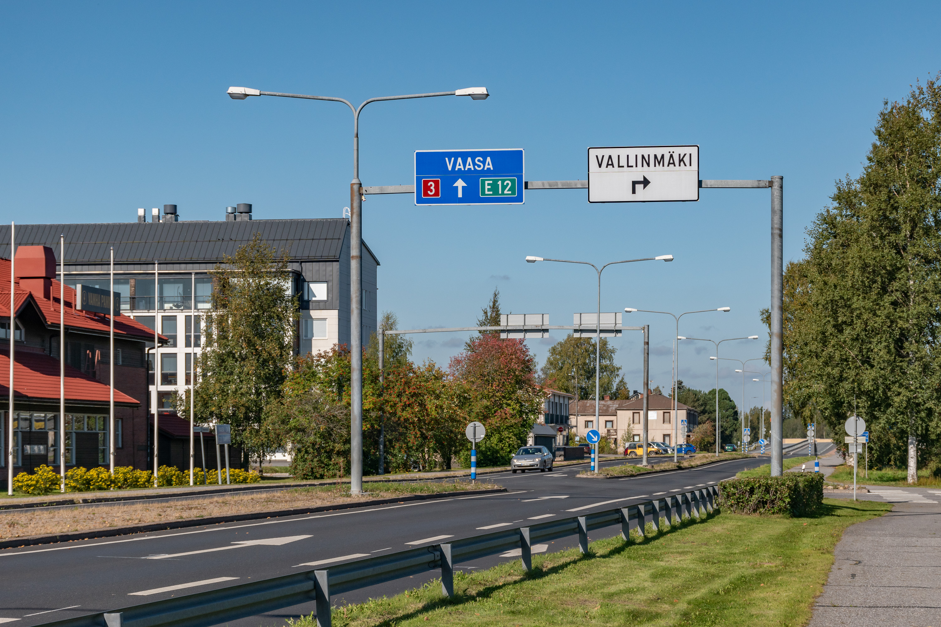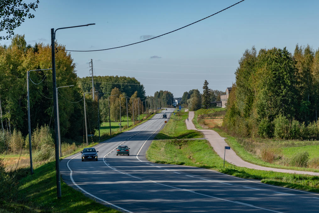 23. Трасса 3 Тампере-Вааса, собственно, проходит через самый центр Лайхии не самым удобным образом. Впрочем, начиная от развязки на Сейняйоки и дальше на юг, включая центр, тут не так много машин — основной поток уходит на Сейняйоки. Ограничение тут 60 км/ч, пешеходный переход всего один, насколько помню, в остальном везде переходы или проезды под дорогой, и на трассе самой перекрестнов не так много, а свороток непосредственно к домам во дворы и вовсе нет.