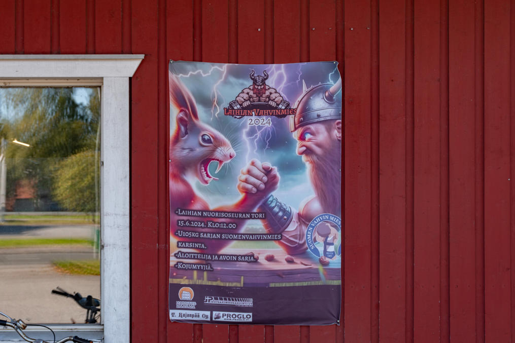 11. В 2024 году лайхийцы открыли для себя AI-картинки :) Это тут проводили отборочный тур чемпионата "Самый сильный мужчина Финляндии" (Suomen vahvin mies) в категории "до 105 кг".