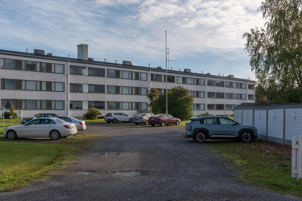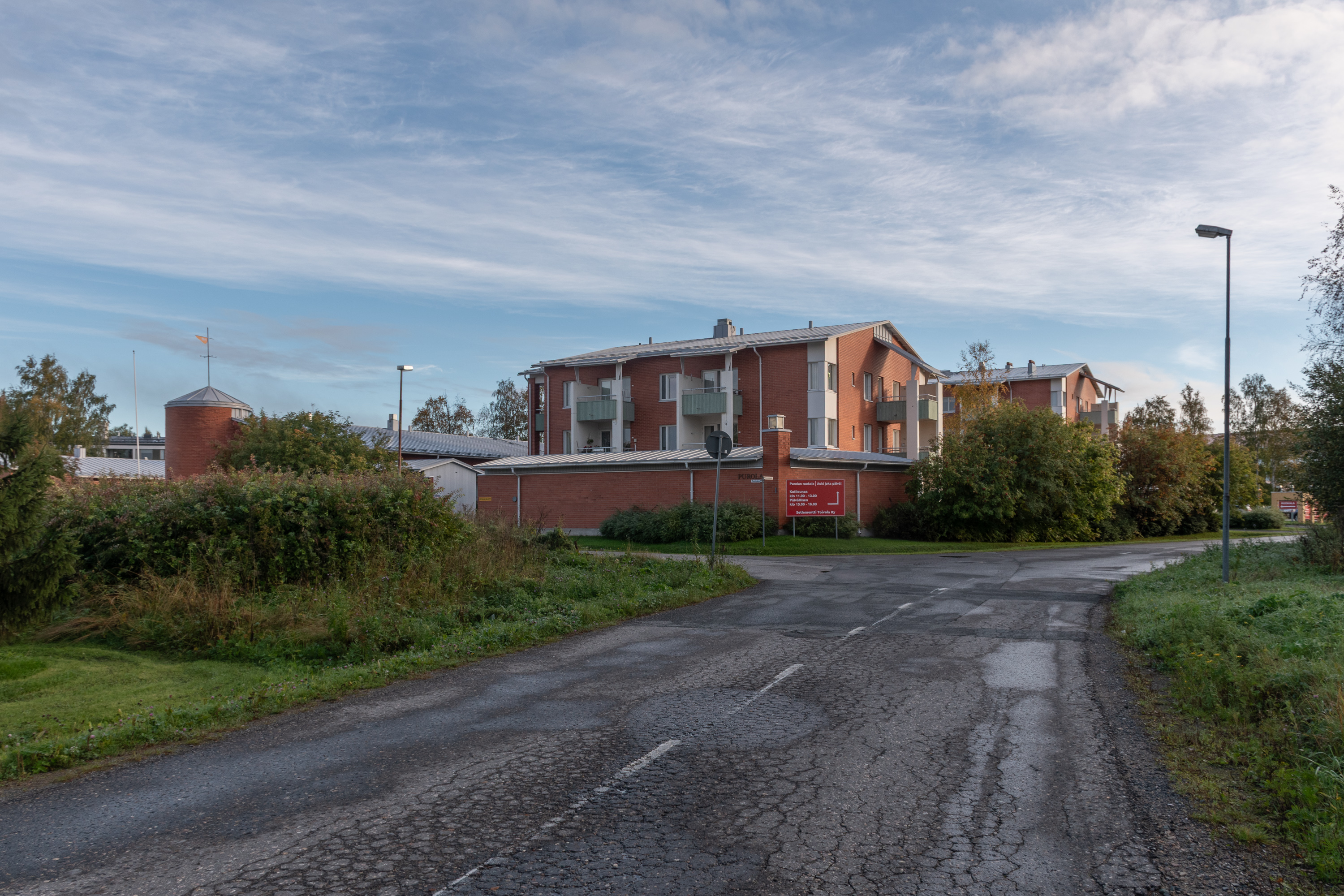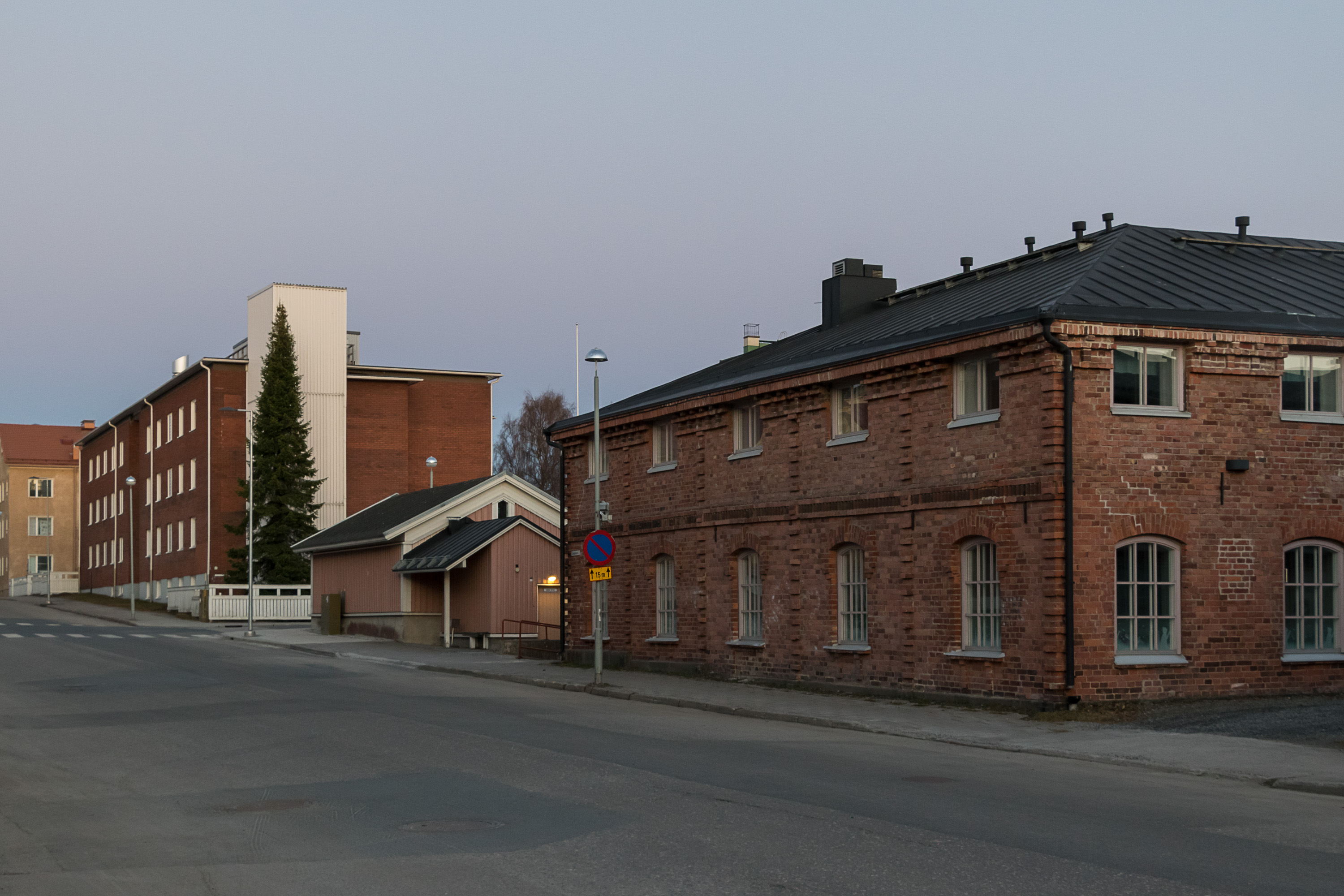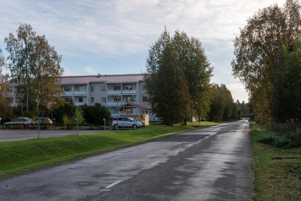57. Карихаару мне довелось осмотреть довольно случайно. В поездке в поход Хетта-Паллас в сентябре 2025 я, как обычно, первые несколько дней отпуска провел, исследуя разные мелкие в основном малопримечательные места по пути на север, и вторую ночь останавливался в Кеми. Гостиницы я в таких случаях ищу по принципу "подешевле, своя ванная комната есть, и хотя бы более-менее по пути", и в этот раз попалась мелкая гостиница, которую открыли не так давно в бывшей крошечной районной поликлинике, Hotel 24 Karihaara. Довольно занятное место, в интерьере номера осталось кое-что от больничной палаты. Я собирался там только переночевать, но, подъезжая туда на машине, заметил кое-какие старые домики и биокомбинат Metsä совсем недалеко, так что пришлось все-таки на следующее утро встать пораньше и по-быстрому пробежаться :)