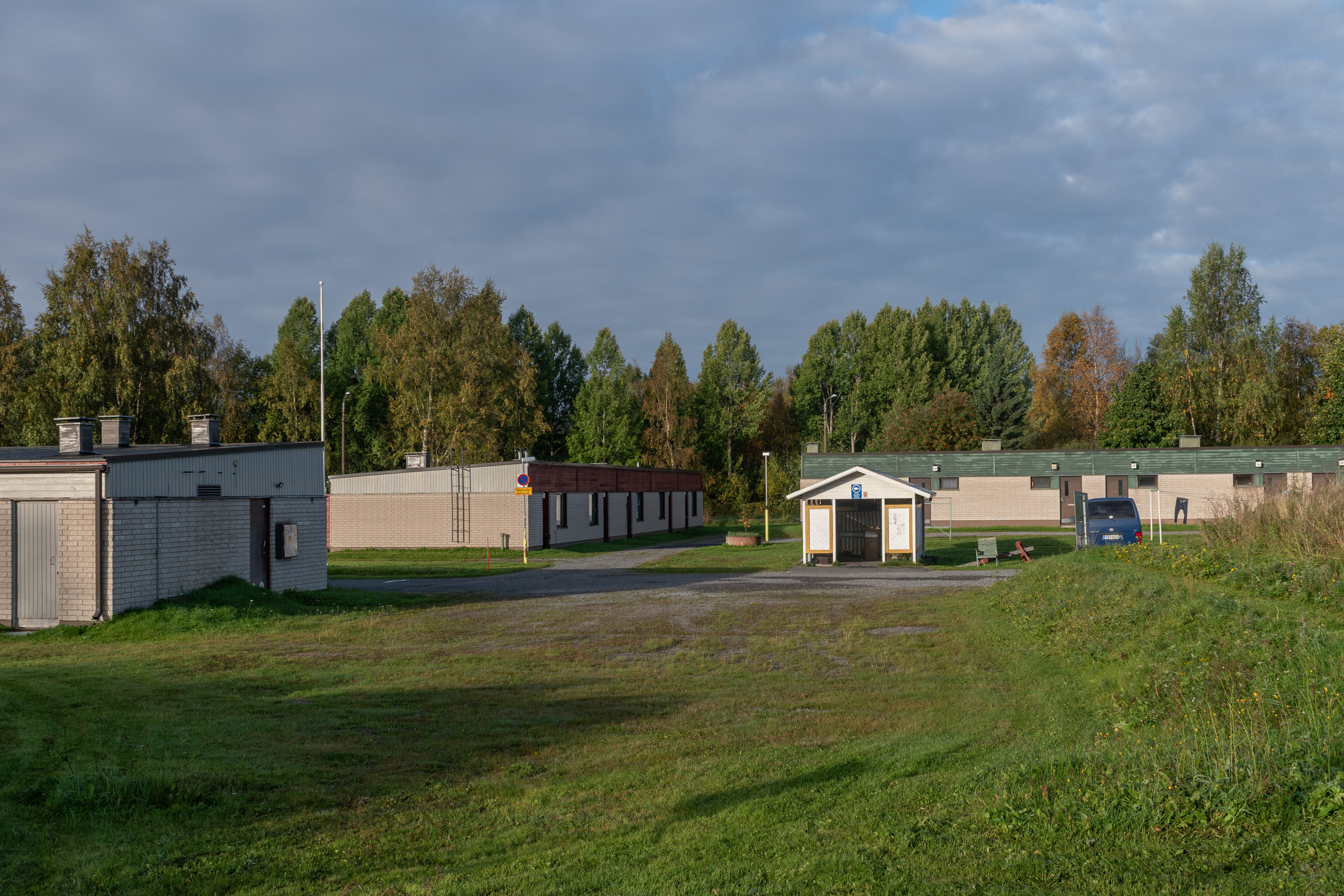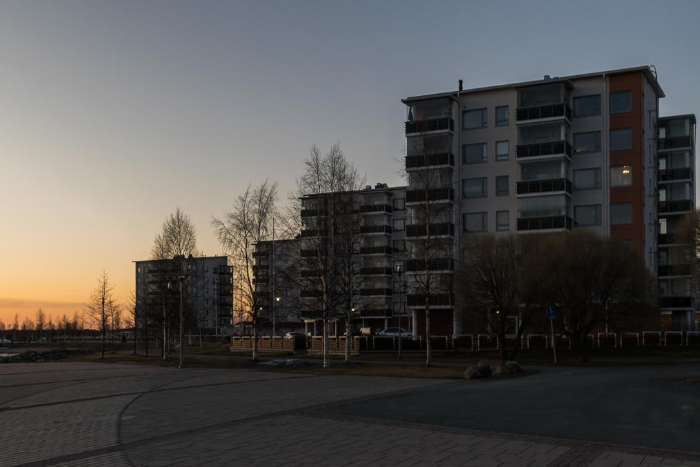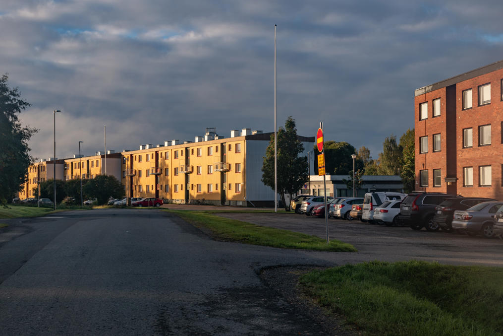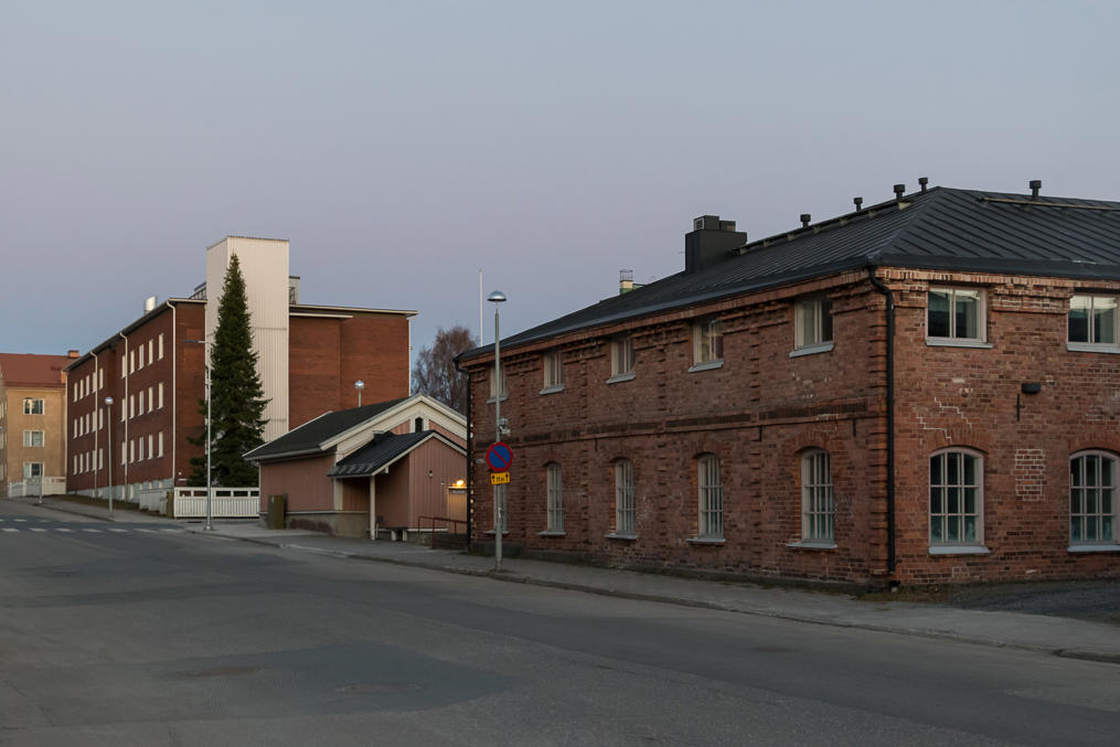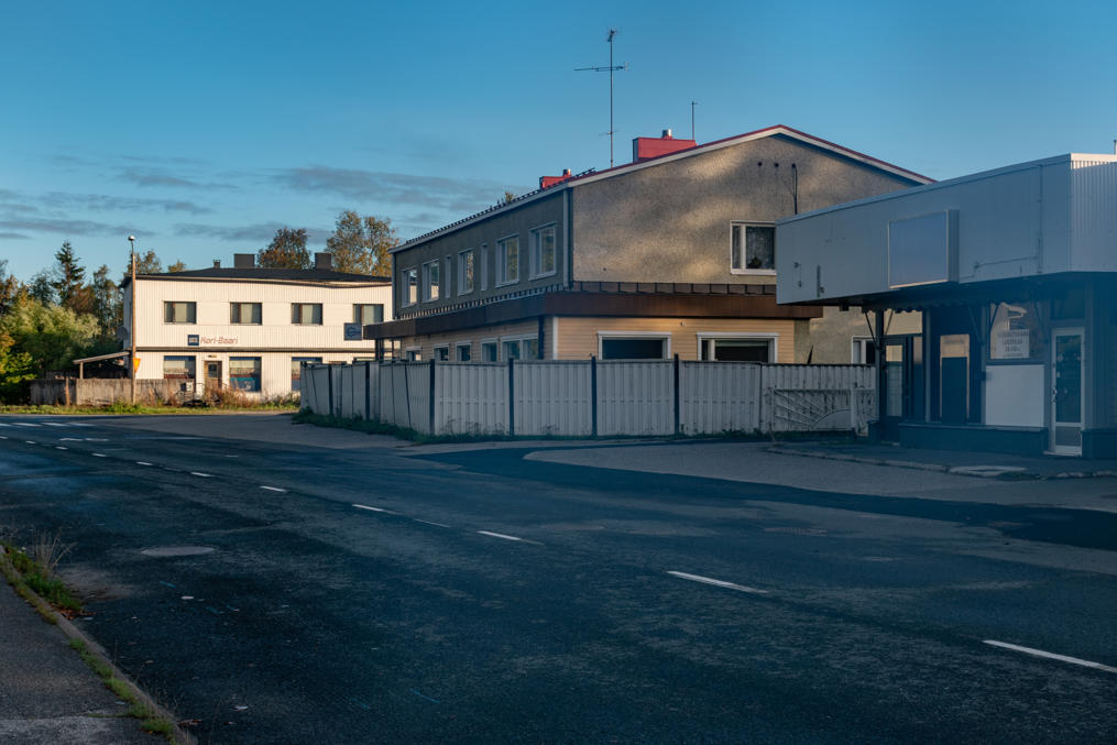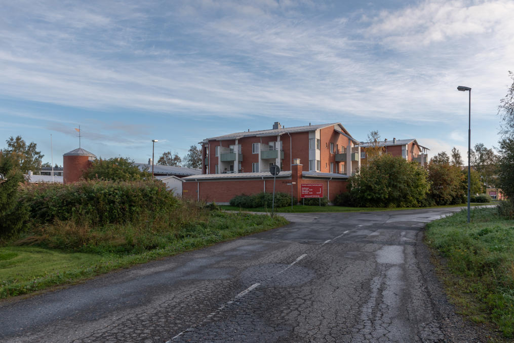 59. Дальше за дорогой на комбинат — малоэтажная застройка, и тут многое выглядит полузаброшенно и депрессивно. Место, где расположен комбинат, кстати, называется не только Карихаара, но и Пайусаари (Pajusaari, фин. Ивовый остров). Ну то есть это, наверное, чуть разные места, но я так и не понял, где кончается Карихаара и начинается Пайусаари, так что говорю везде про Карихаару. К реальной географии дельты Кемийоки названия уже не имеют отношения, многие протоки засыпаны, но можно все-таки на карте увидеть, что комбинат все еще большей частью отделен от жилых районов частично засыпанной протокой Вяхяхаара (Vähähaara, фин. Малая протока).