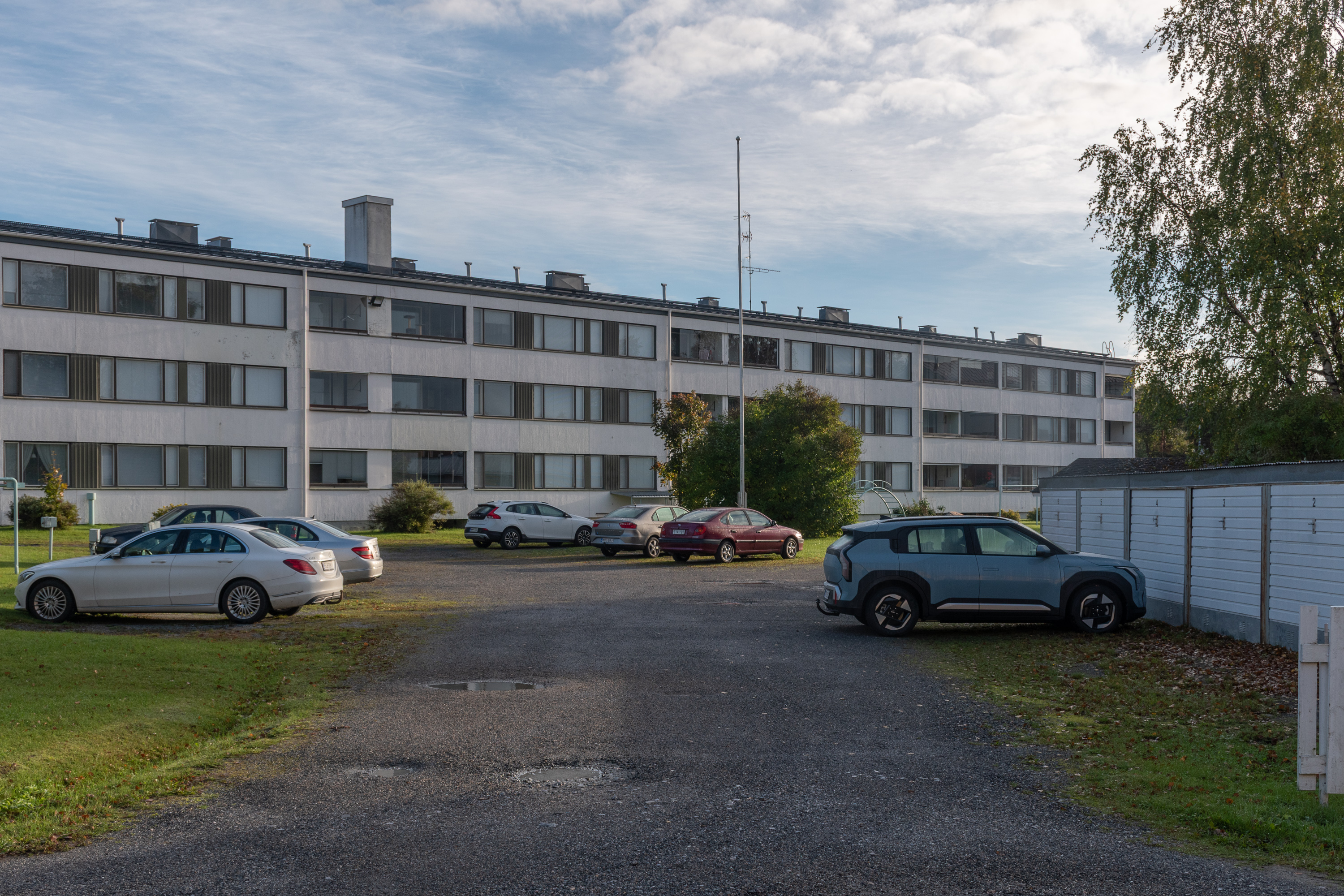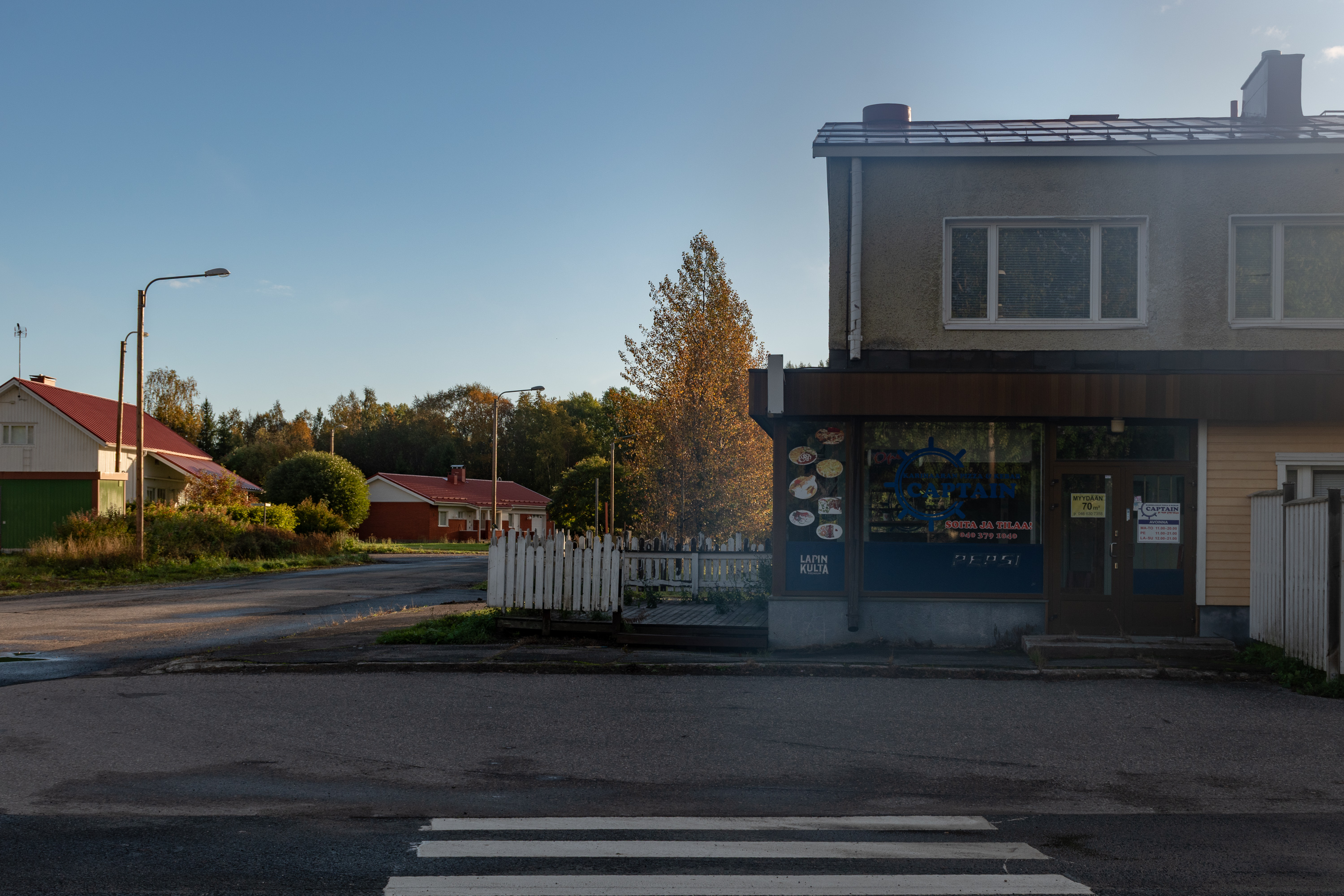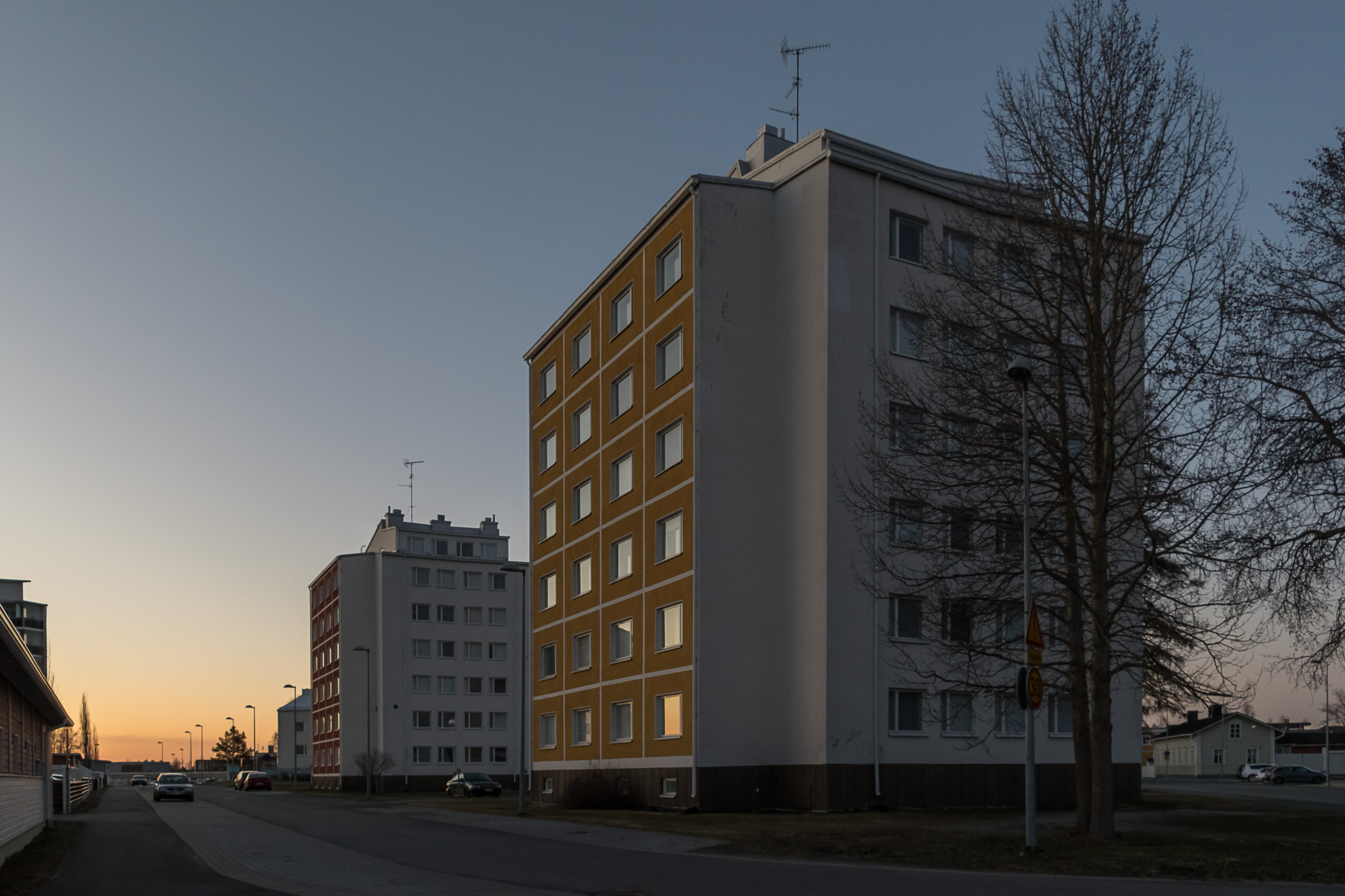 59. Дальше за дорогой на комбинат — малоэтажная застройка, и тут многое выглядит полузаброшенно и депрессивно. Место, где расположен комбинат, кстати, называется не только Карихаара, но и Пайусаари (Pajusaari, фин. Ивовый остров). Ну то есть это, наверное, чуть разные места, но я так и не понял, где кончается Карихаара и начинается Пайусаари, так что говорю везде про Карихаару. К реальной географии дельты Кемийоки названия уже не имеют отношения, многие протоки засыпаны, но можно все-таки на карте увидеть, что комбинат все еще большей частью отделен от жилых районов частично засыпанной протокой Вяхяхаара (Vähähaara, фин. Малая протока).