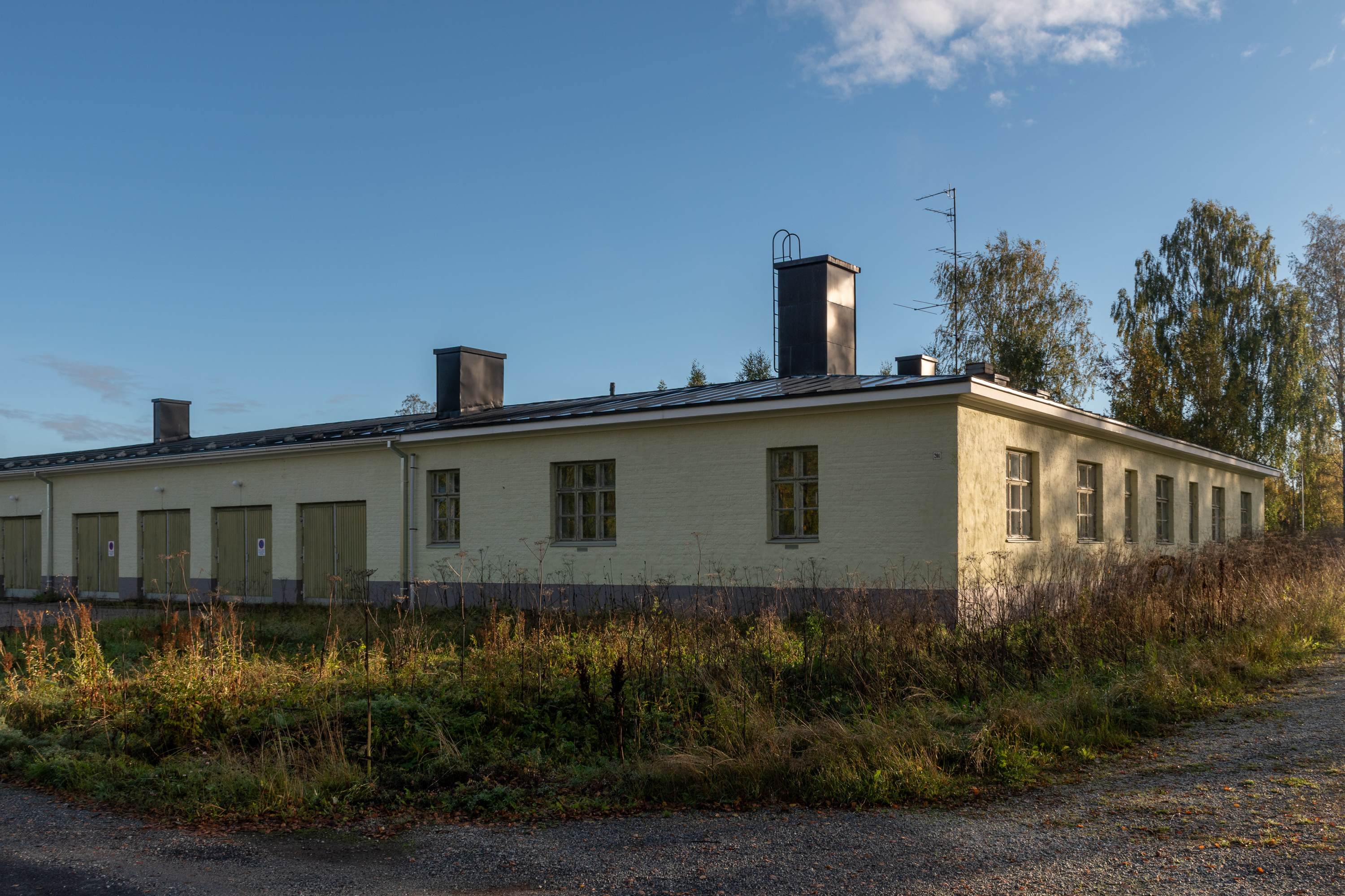 62. Помимо конторы Kemi Oy, с этой стороны от въезда на комбинат вроде больше ничего интересного не осталось, ну гараж вот разве что исторический.