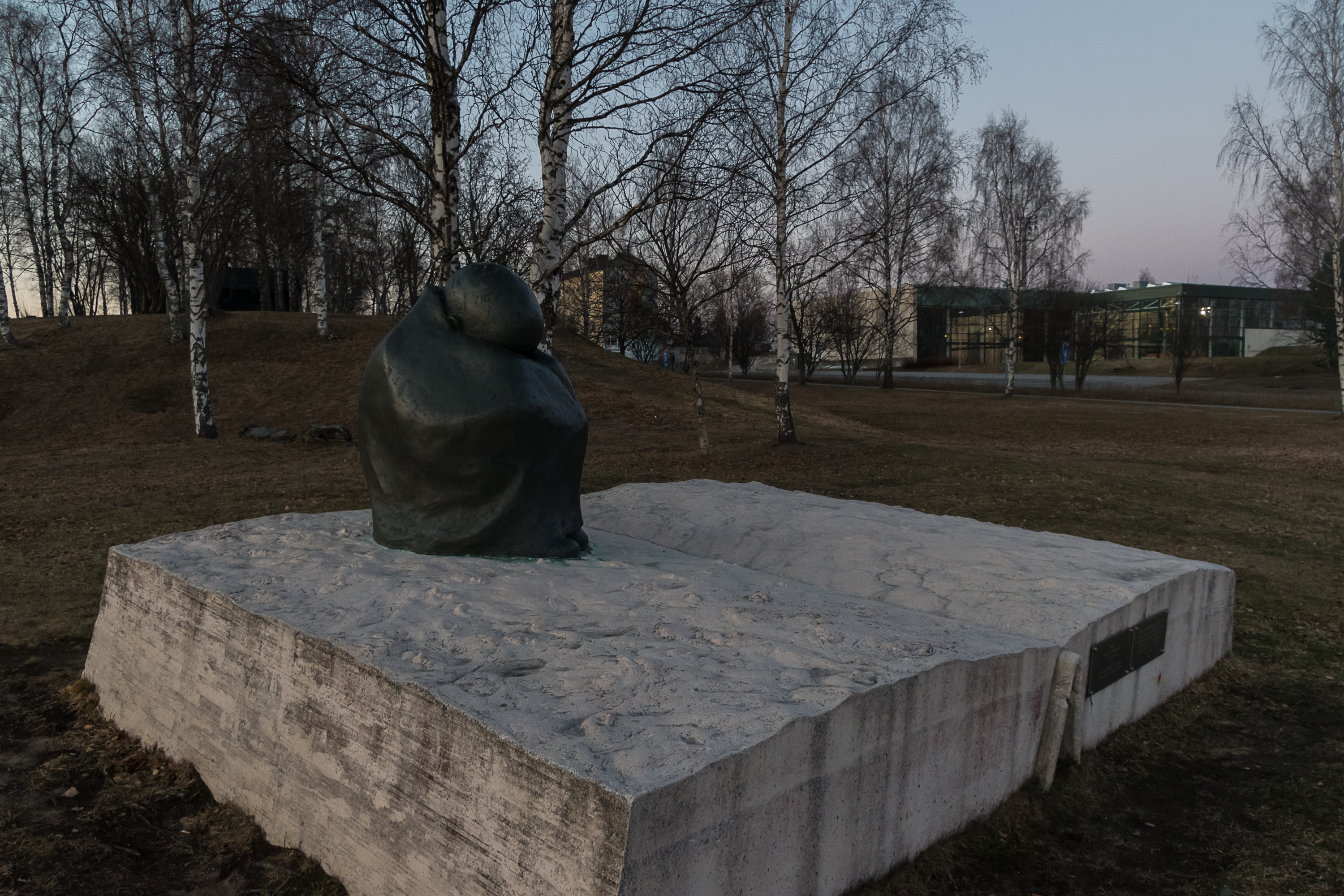 38. Еще выделяется на набережной довольно пронзительный памятник с закутавшимся в одеяло мальчиком. Это памятник т. н. детям войны (sotalapset). В войну, как Зимнюю войну, так и Войну-Продолжение, около 80 тыс. финских детей были вывезены в Швецию (также в Данию и Норвегию в небольших количествах) в качестве беженцев в приемные семьи. Это была инициатива шведов, все хотели, как лучше, но в итоге многим там тяжело пришлось на чужбине, а 15.5 тыс. так и не вернулись — наверное, те, кто успел там вырасти и осесть. При том, что объективно опасность в Финляндии всю войну была минимальна, за всю Вторую Мировую погибло лишь 2-2.5 тыс. гражданских финнов, практически исключительно от бомбардировок (а от них, если уж страшно, можно и на деревню бабушке было уехать, а не за море). Тяжелый, в общем, эпизод, и в Финляндии ему стоит довольно много памятников и памятных табличек — в основном на вокзалах, потому что вывозили детей на поездах, через Торнио-Хапаранду; в Хапаранде тоже на шведской стороне памятник есть. Но этот памятник самый сильный, наверное; установлен в 1996, скульптора Санны Койвисто из Оулу, называется "Маленькая вечность" (Pieni ikuisuus).