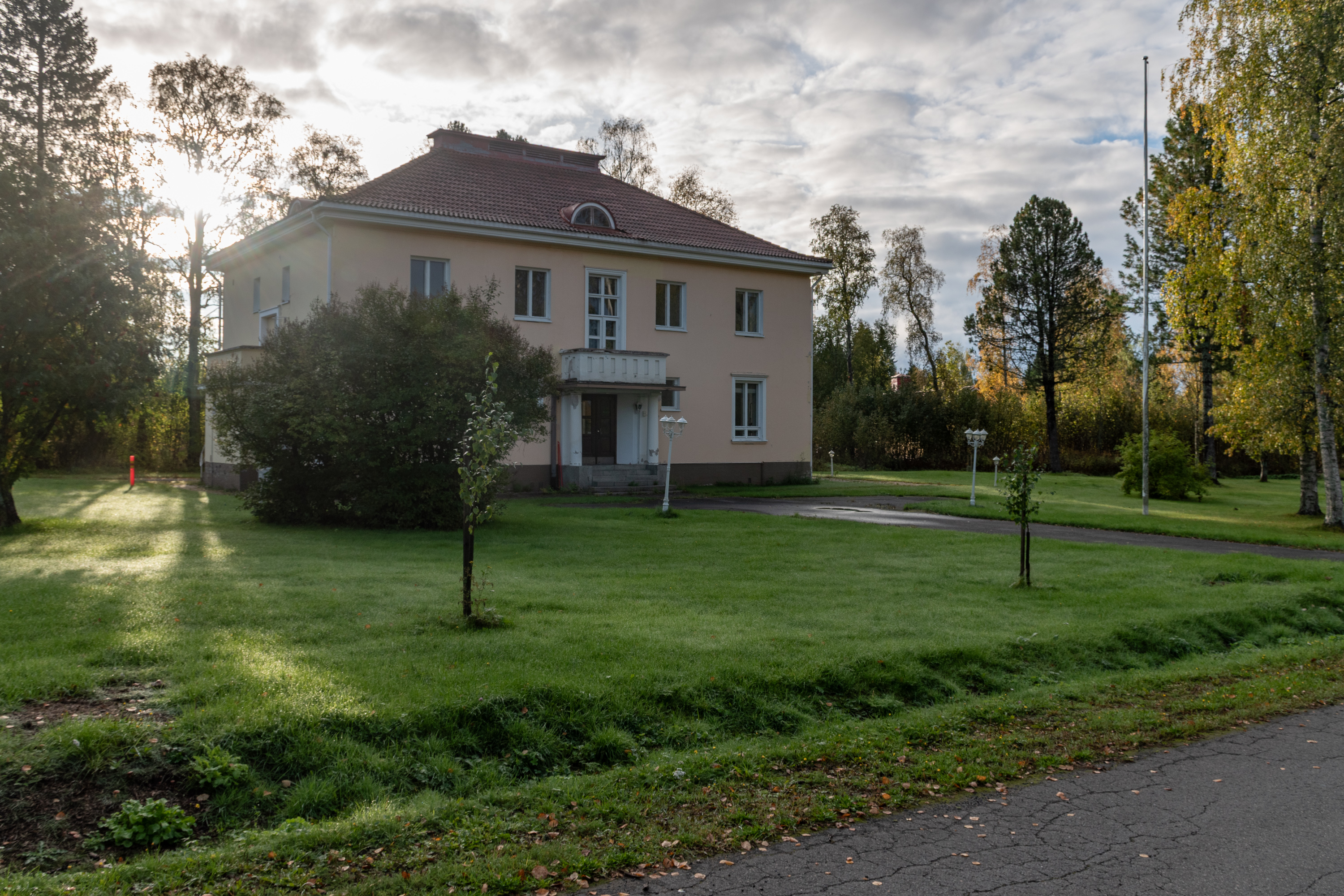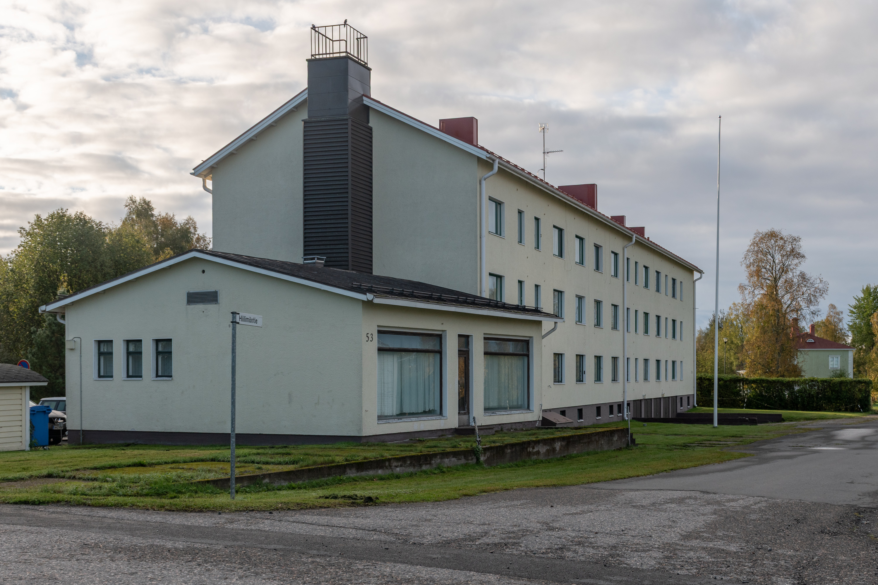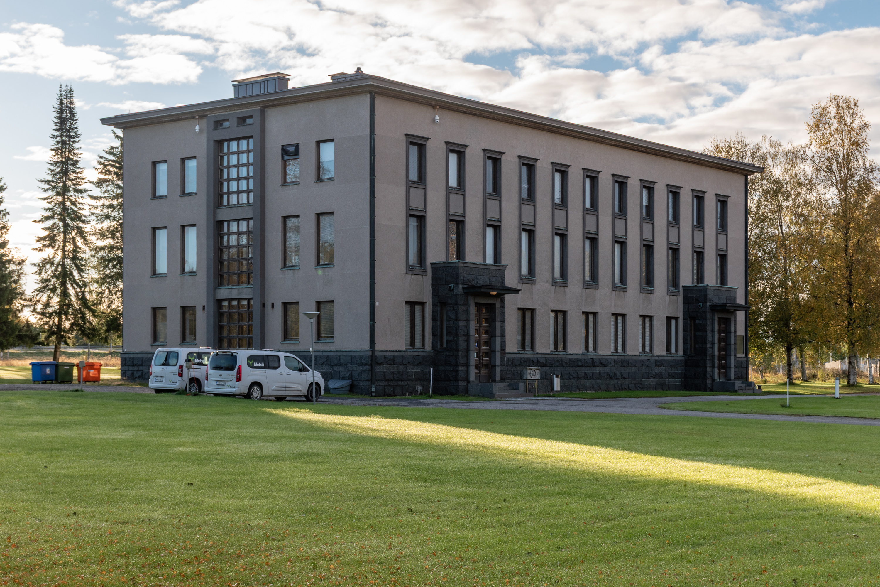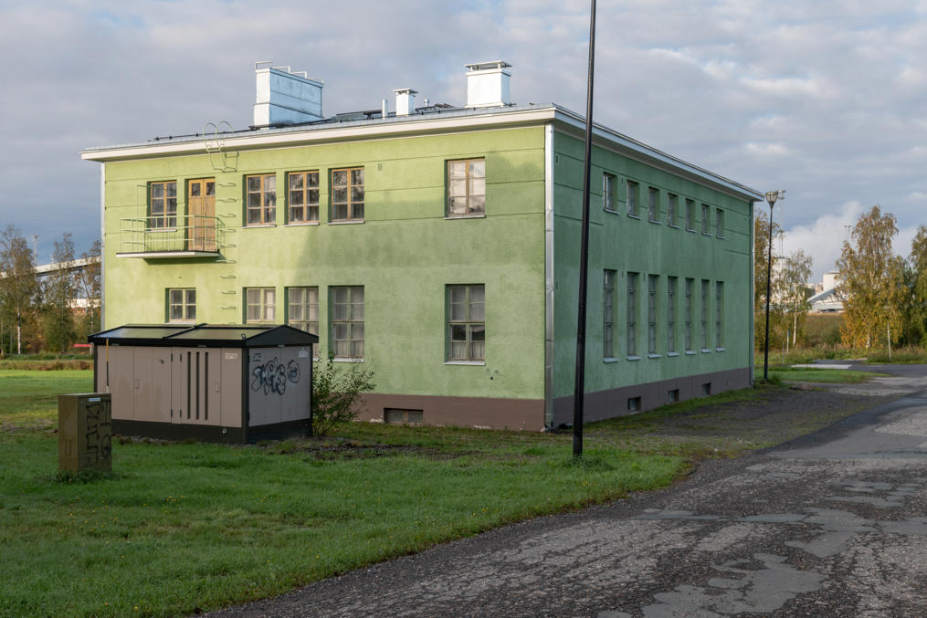 60. Из интересного тут можно найти старую администрацию компании Kemi Oy. Очень симпатичное здание, 1936 года, архитектора Пальмквиста (W. G. Palmqvist). Не знаю, для чего ее используют сейчас, здание осталось теперь в неудобном тупичке после строительства подъездов к новому комбинату, и особо активно используемым не выглядит, но траву косят и машины Metsä стоят парочка. Писали в 2020, что в ней размещалась контора большой стройки нового комбината, но стройка теперь закончена.