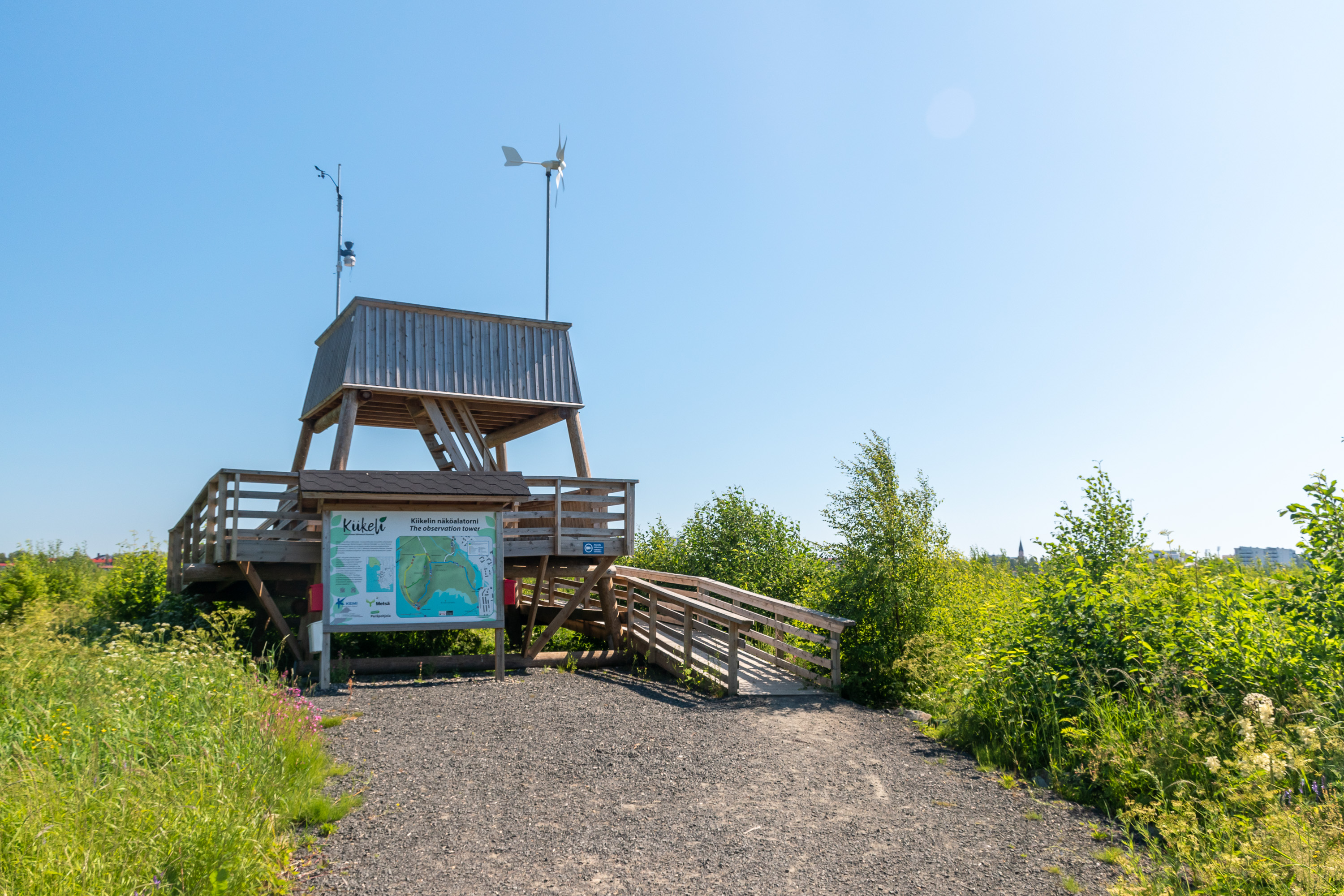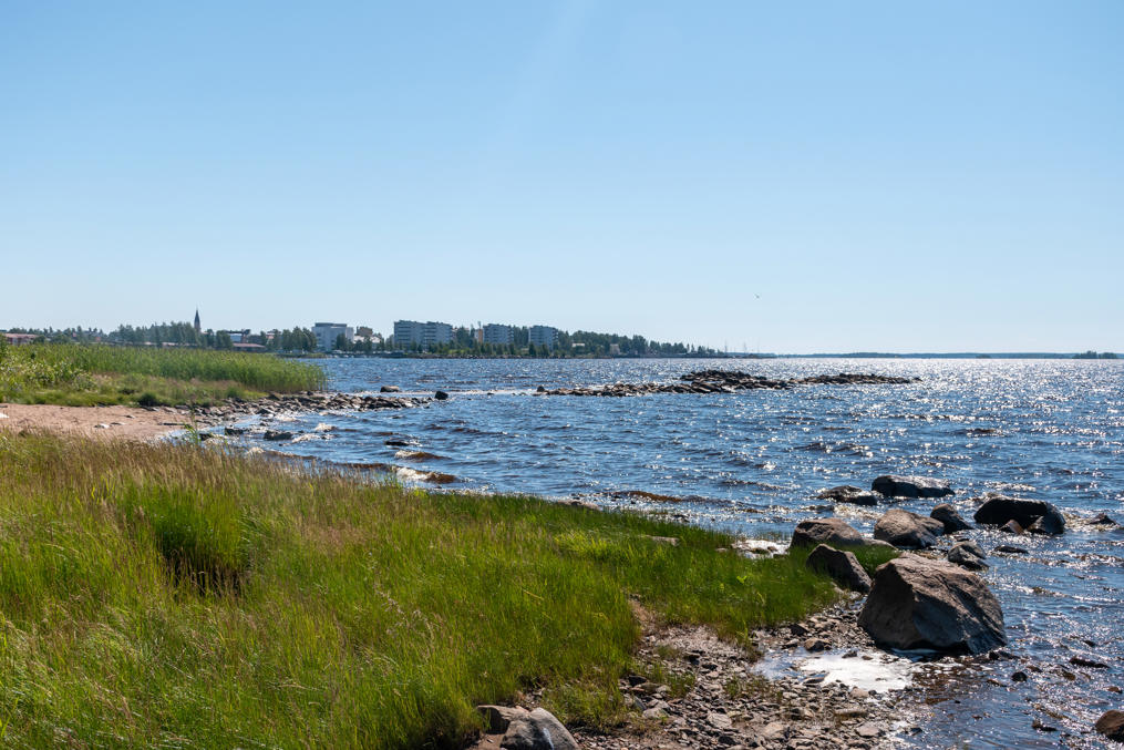 53. Природы в этих постах особенно нет, как минимум потому, что муниципальные границы Кеми так и остались невелики и природы в них особенной и не вошло, по крайней мере на материке (поэтому я в этот раз и не упоминал в начале отдельно населения муниципалитета и населенного пункта — в данном случае это примерно одно и тоже), но все-таки вот, например, занятый небольшим лесопарком полуостров Киикели (Kiikeli), откуда со смотровой вышки как раз виден весь центр Кеми.
