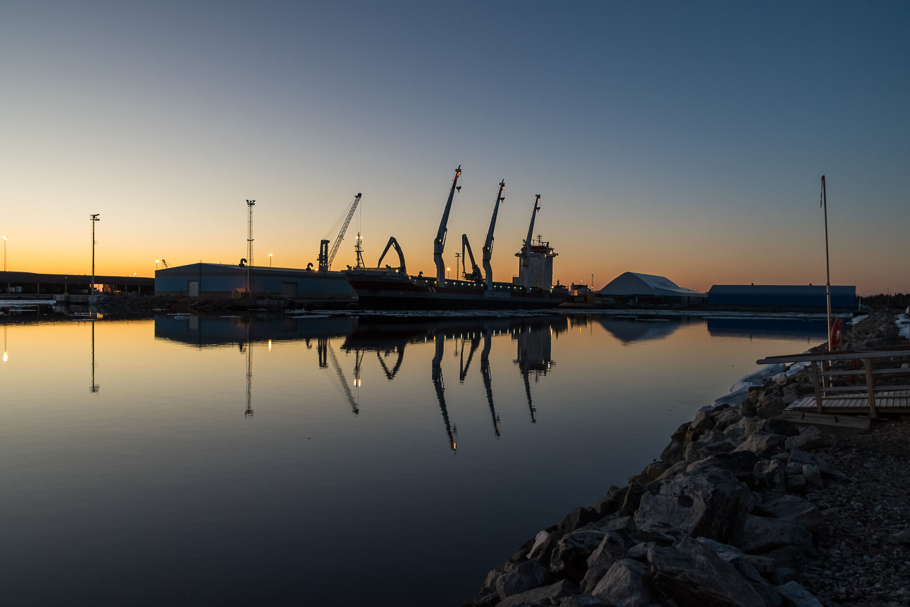 34. Сухогруз в порту у соседней с ледоколом пристани. После вступления Финляндии в НАТО в 2023 по договору DCA с США порт Кеми стал одним из портов, которые могут использовать американские войска, а бывшие заводские площади на Вейтсилуото отдали под склад американской техники. Я уверен (смотря хотя бы на снова зашедший на момент написания поста разговор о возможности аннексии Гренландии США), это было отличное и дальновидное решение, о котором никто в Финляндии никогда не пожалеет 🤡 В реальности, впрочем, пока что там американцев нет, только должны начать переоборудовать помещения под эти склады.