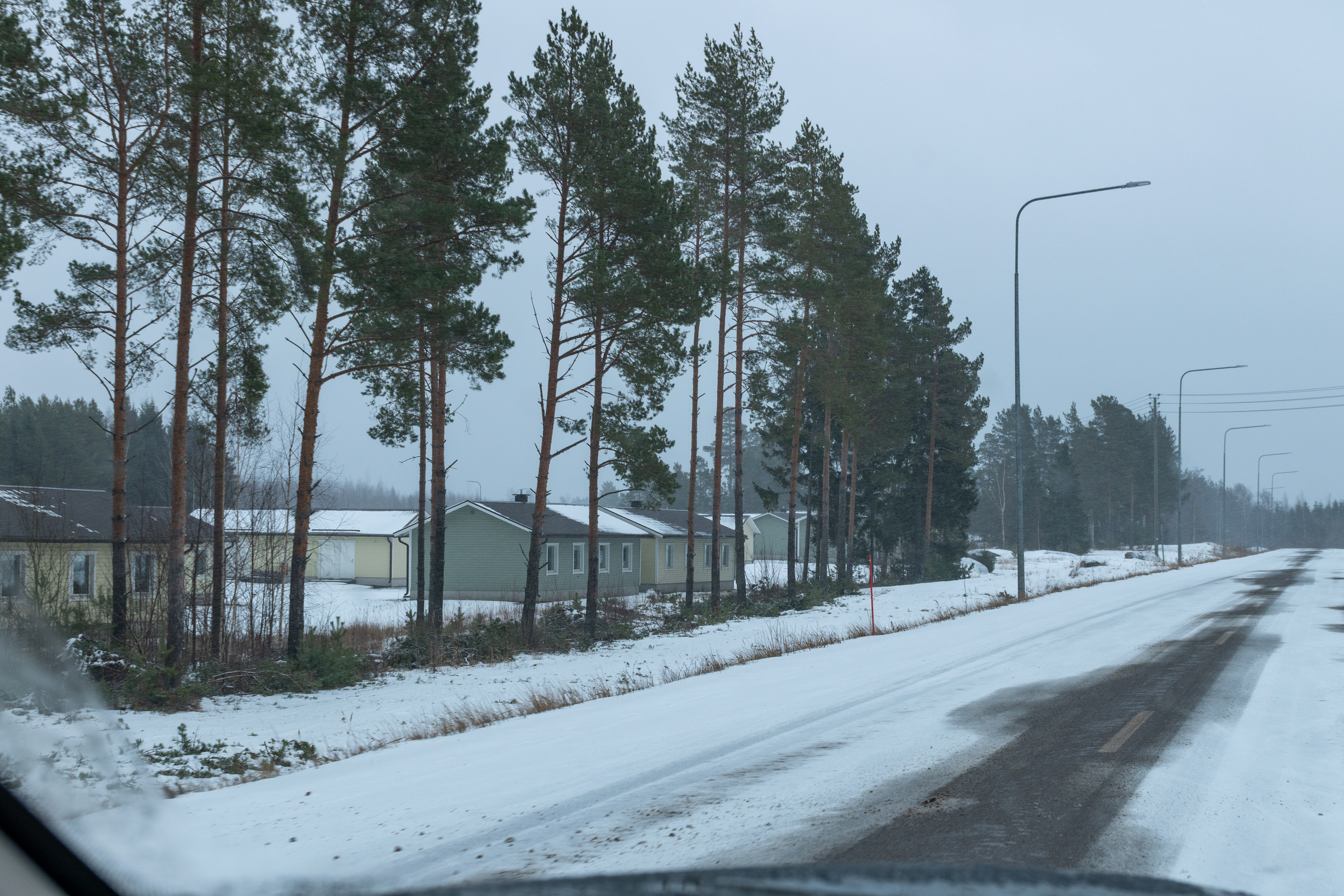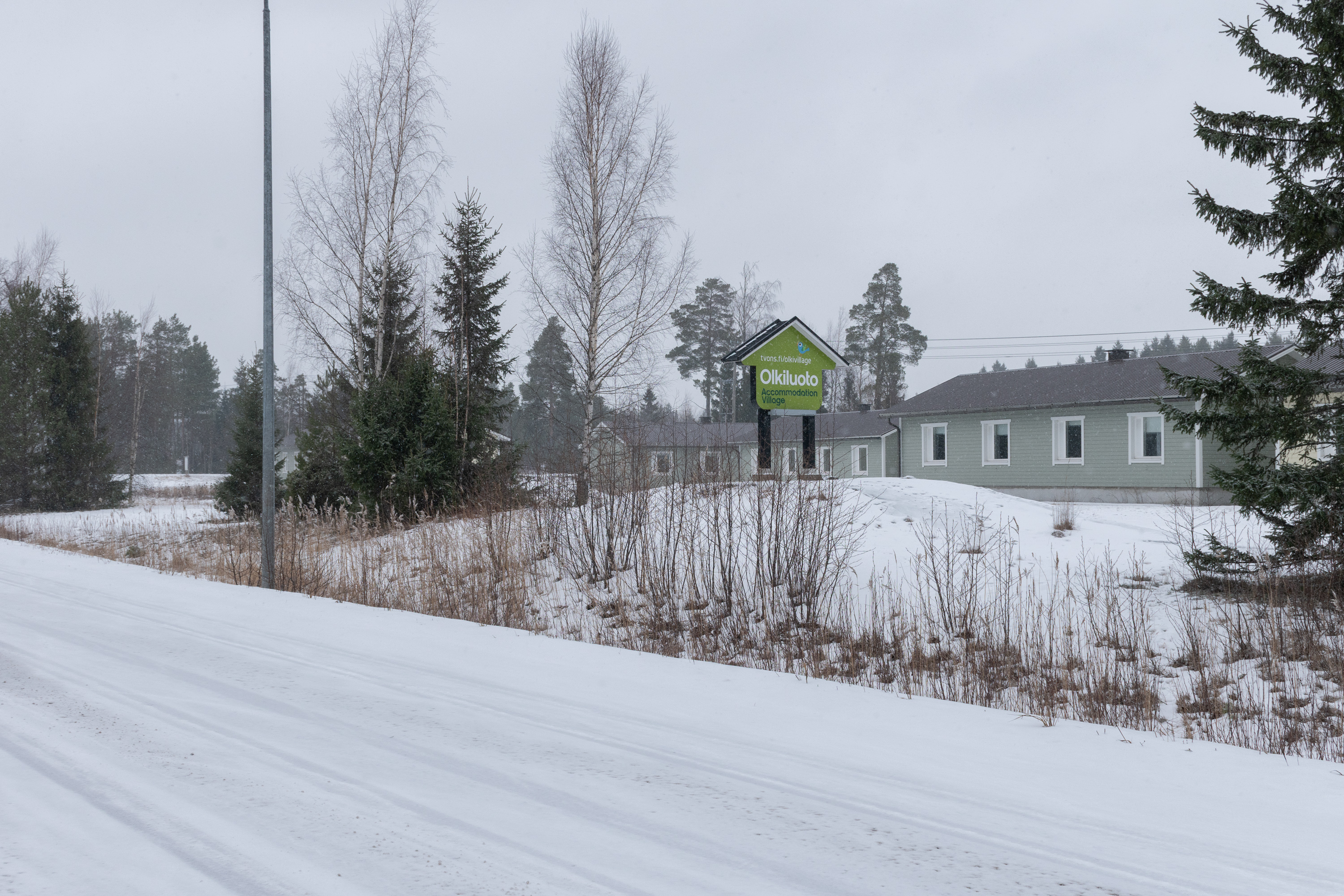 34. На этом вещи, которые на Олкилуото можно посмотреть простому смертному, заканчиваются. Пора покидать эти места. По дороге можно еще обратить внимание на поселок работников АЭС. Это уже не режимная территория, за внешними воротами АЭС. Поселок рассчитан на проживание до 425 человек, условия тут спартанские — однушки и комнаты в общежитиях. Народу не видно было, машин тоже мало, но, видимо, все-таки кто-то живет. Место небесполезное, главный населенный пункт муниципалитета, поселок Эурайоки, хоть и недалеко, но никаким "атомоградом" не является, совершенно обычный финский поселок, многоэтажек там десяток-другой. Меж тем персонал Олкилуото составляет более 1000 человек, а на ежегодные обслуживания приезжает и намного больше в т. ч. из других стран. Скорее всего, де-факто большая часть персонала Олкилуото живет в городе Раума, до которого здесь езды всего километров двадцать с небольшим.