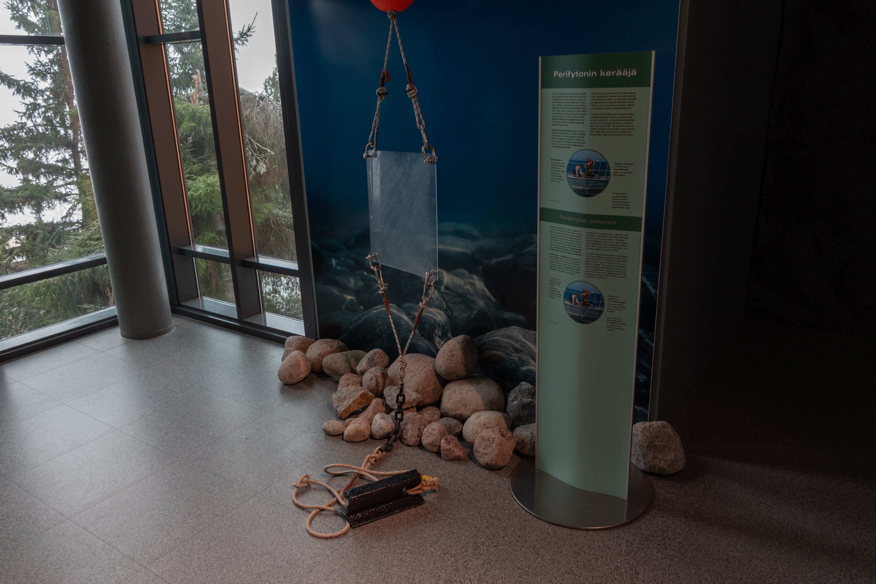 13. Безопасности и особенно хранению отработанного топлива вообще посвящена минимум половина экспозиции. И влиянию на окружающую среду тоже, вот объясняют, как мониторят состояние планктона в Ботническом заливе у берегов Олкилуото; точнее, в данном случае перифитона (всего, чем подводные камни и проч. обрастают).