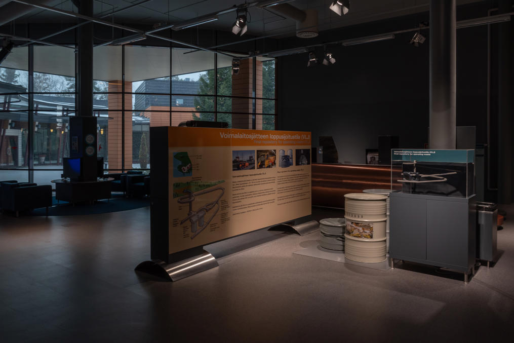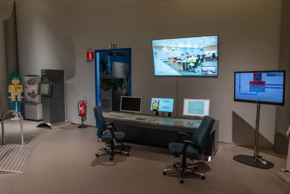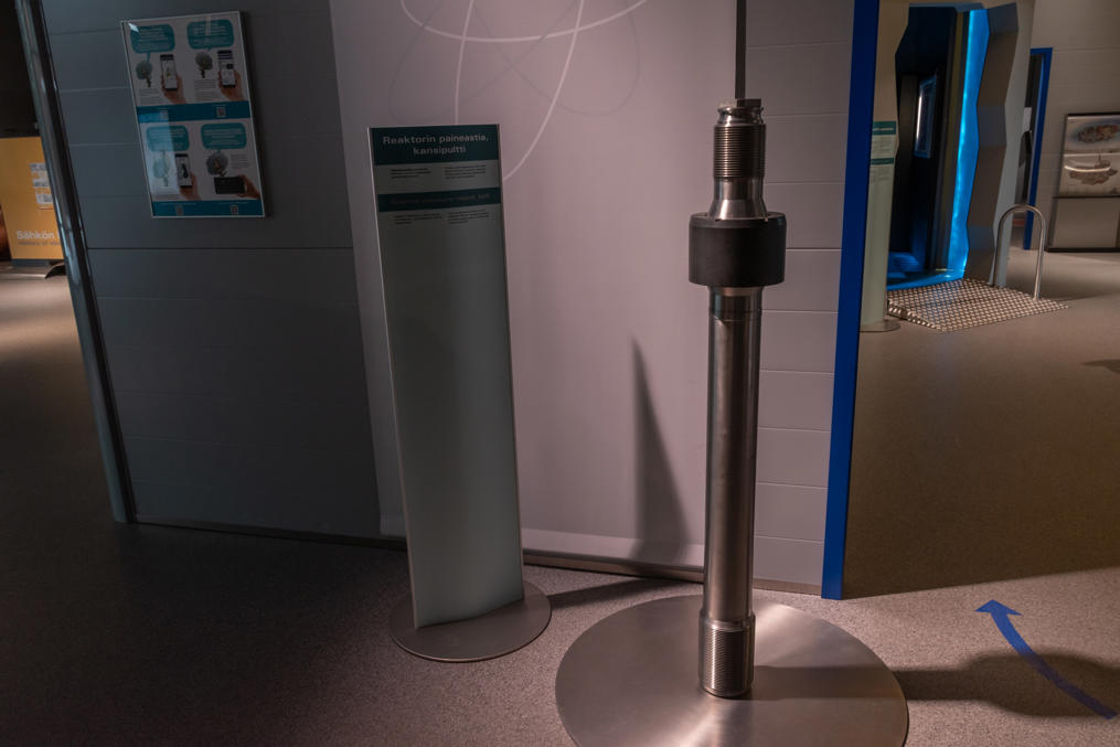 Но хватит об истории, перейдем к слайдам. Визит-центр! Он действует с 2006 года — видимо, приурочили к началу строительства Олкилуото-3. По сути это маленький музей, причем бесплатный и открыт круглогодично ежедневно до восьми вечера, что для Финляндии само по себе неслыханно :) Конечно, никаких секретов здесь не расскажут, но экспозиция с базовыми познаниями о ядерной энергии, о конструкции Олкилуото-1/2 и -3, и о том, что делают с отработанным топливом (обширная тема, которую я выше еще не затронул даже), весьма добротная. А еще есть смотровая площадка, с которой с расстояния в километр через залив можно полюбоваться на АЭС, и короткая тропа, где показывают, какая тут чистая природа :)