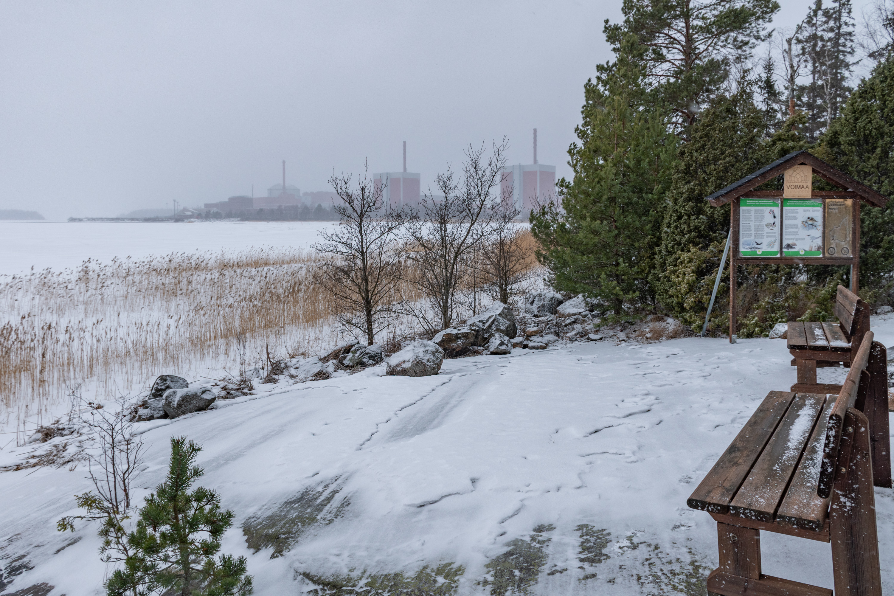 1. Честно говоря, ехать сюда все равно было как-то не по себе. Дорога все пустеет, в ее начале была деревня и хутора, потом уже жилье закончилось, снежок все меньше потревоженный. На целую АЭС еду! Финские АЭС — в общем-то, самые режимные гражданские объекты в стране, а я же все-таки, простите, русня, хоть и с паспортом правильным. Я, к тому же, помнил новость годичной давности, когда российского школьника (лицеиста) не пустили на экскурсию на Олкилуото, несмотря на то, что у него было финляндское гражданство. Но на TVO сказали новостям Yle, что не могут пускать двойных граждан, а в изначальном сообщении родителям и вовсе было написано так, что "в связи с текущей мировой обстановкой" не пускают "родившихся в России", что формулировочка так-то вообще ого-го и потенциально вполне дает повод пожаловаться омбудсмену по равноправию. Хотя в подобном случае вряд ли большинство людей заморачиваться будут, да и даже омбудсмен в наши дни сейчас обычно соглашается с доводами о "национальной безопасности". Свинство, конечно.
