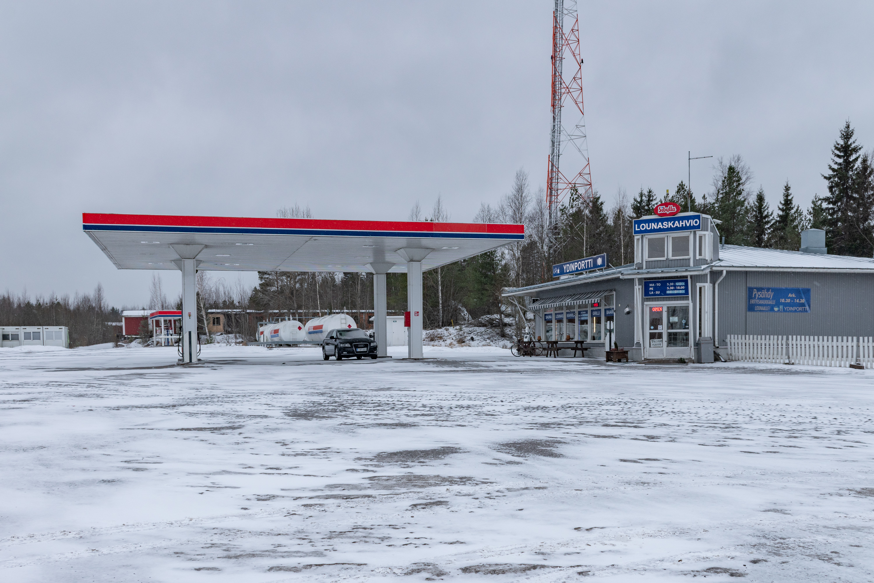 35. А рассказ про Олкилуото закончим АЭС с кафе "Ядерные ворота" (Ydinportti) на повороте на Олкилуото с трассы 8 Пори-Раума. Заправка сети Teboil, сейчас закрытой из-за санкций, но кафе работает вроде.
