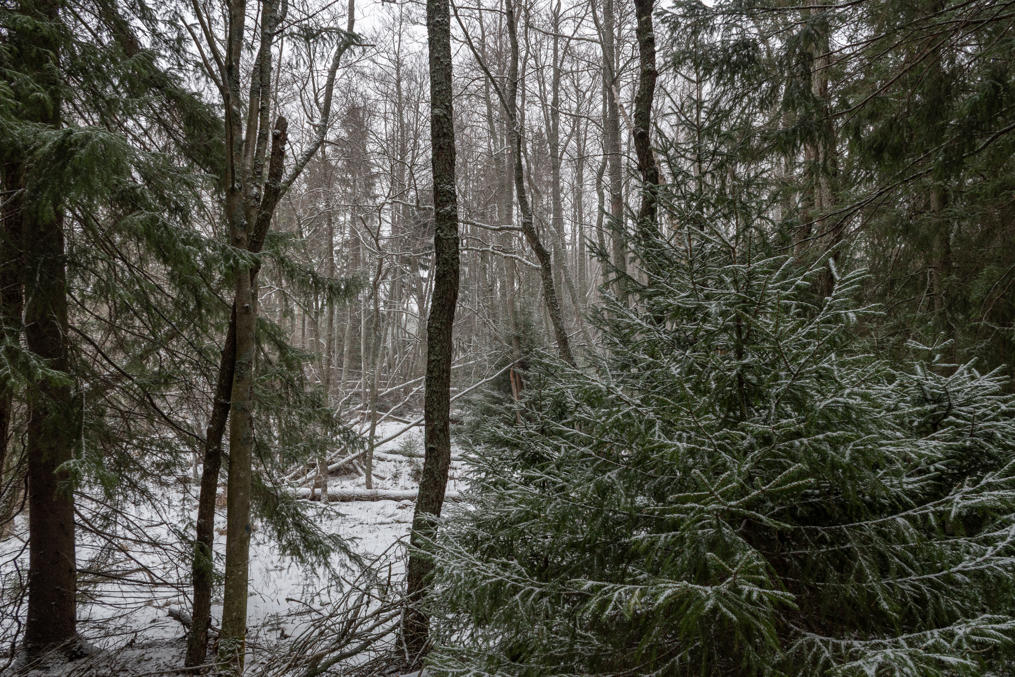 33. Останавливаться на природе смысла особого нет, но красиво, конечно, даже и зимой. Ну, снега еще мало очень — зима 2025-26 малоснежная очень выдалась, хотя и холодная — так что поинтереснее выглядит лес, чем когда сугробы по колено.