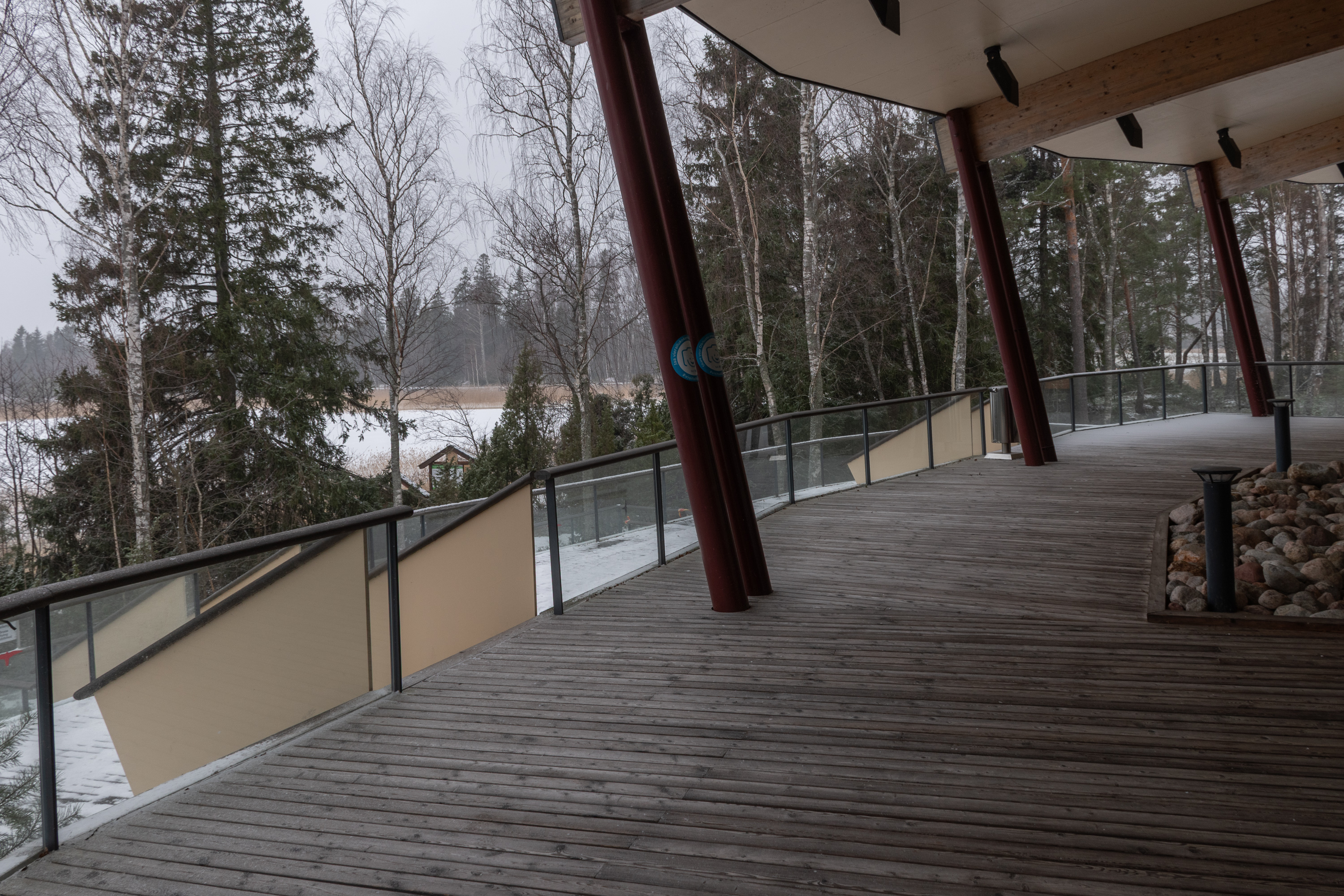2. В итоге, в общем, так никто и не узнал, что к ним приехал русский шпион и тайный путинист (шутка). Я проехал мимо комплекса Onkalo и свернул к визит-центру, где дорожка была совсем нетронутая, машин не было, и я уж даже начал сомневаться, открыто ли тут. Но оказалось открыто. Одну машину персонала я таки заметил, но внутри никого не увидел на информационной стойке или где-либо еще, чаи гоняют в офисе, небось. Посетителей других тоже не было, только под конец семья с детьми подъехала.