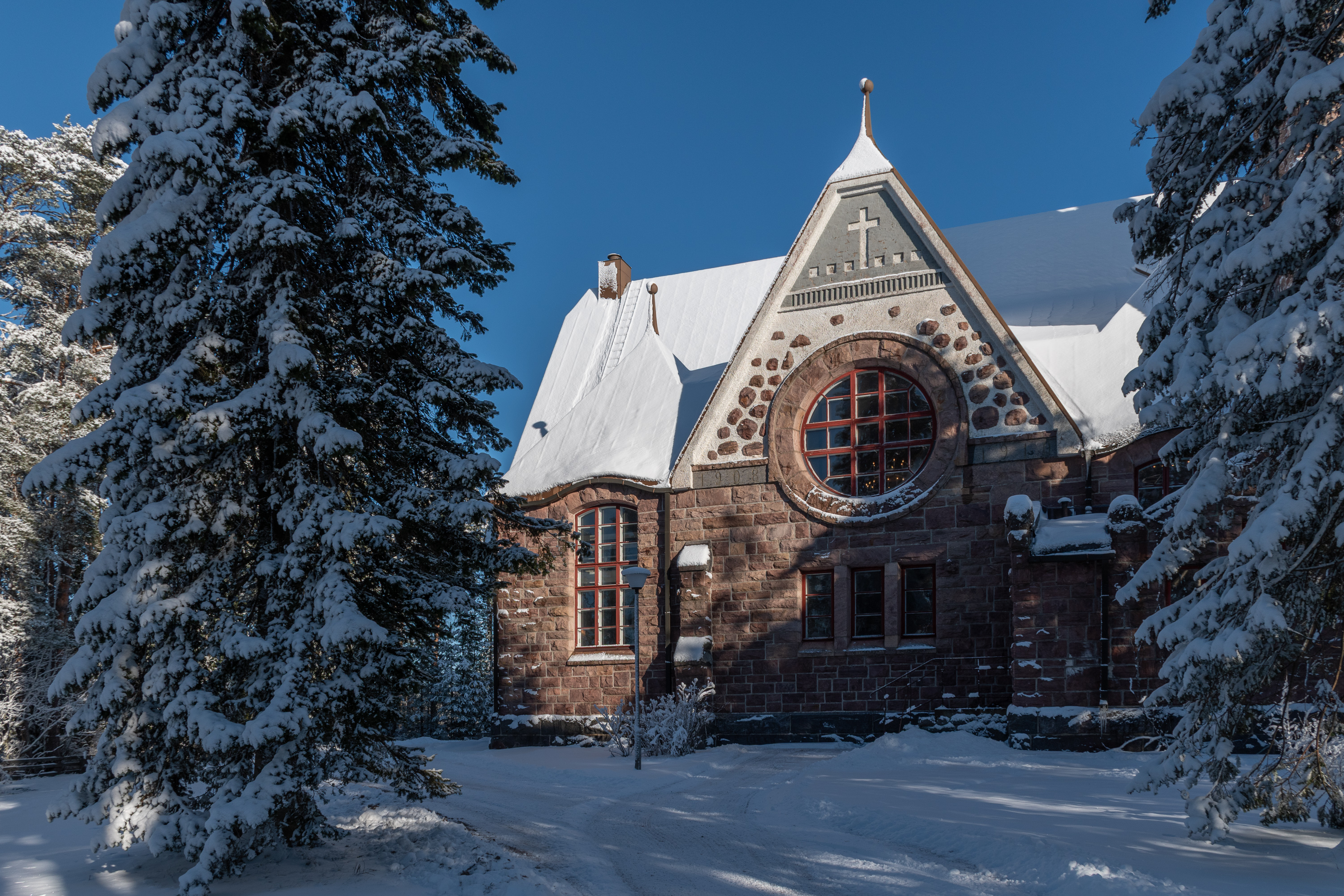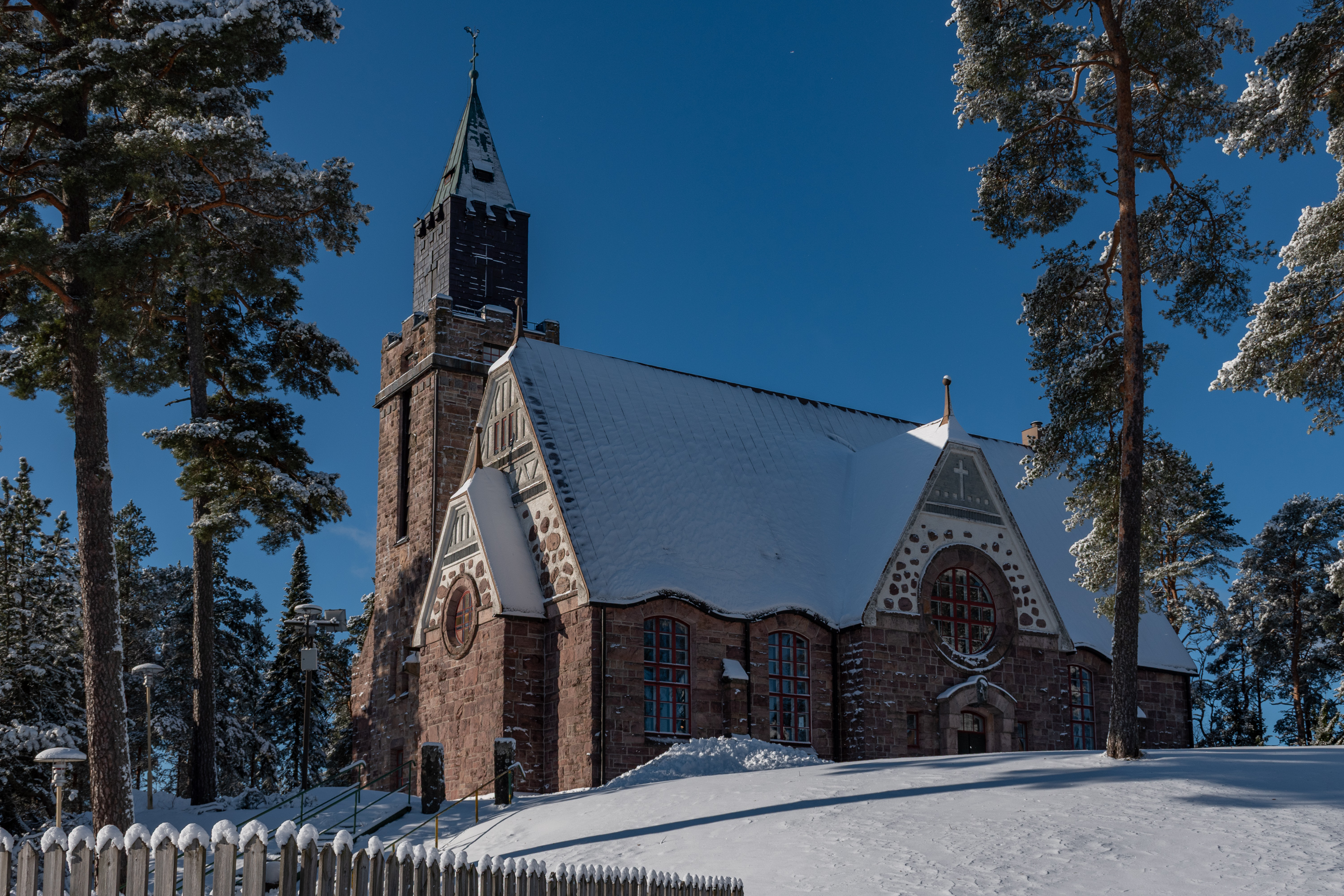 34. Единственная серьезная достопримечательность самой Лувии — это роскошная церковь в национально-романтическом стиле, 1910 года постройки и авторства знаменитого Йосефа Стенбека (Josef Stenbäck, 1854-1929). Гордо стоит себе на холме в самом центре, со своей башенкой.