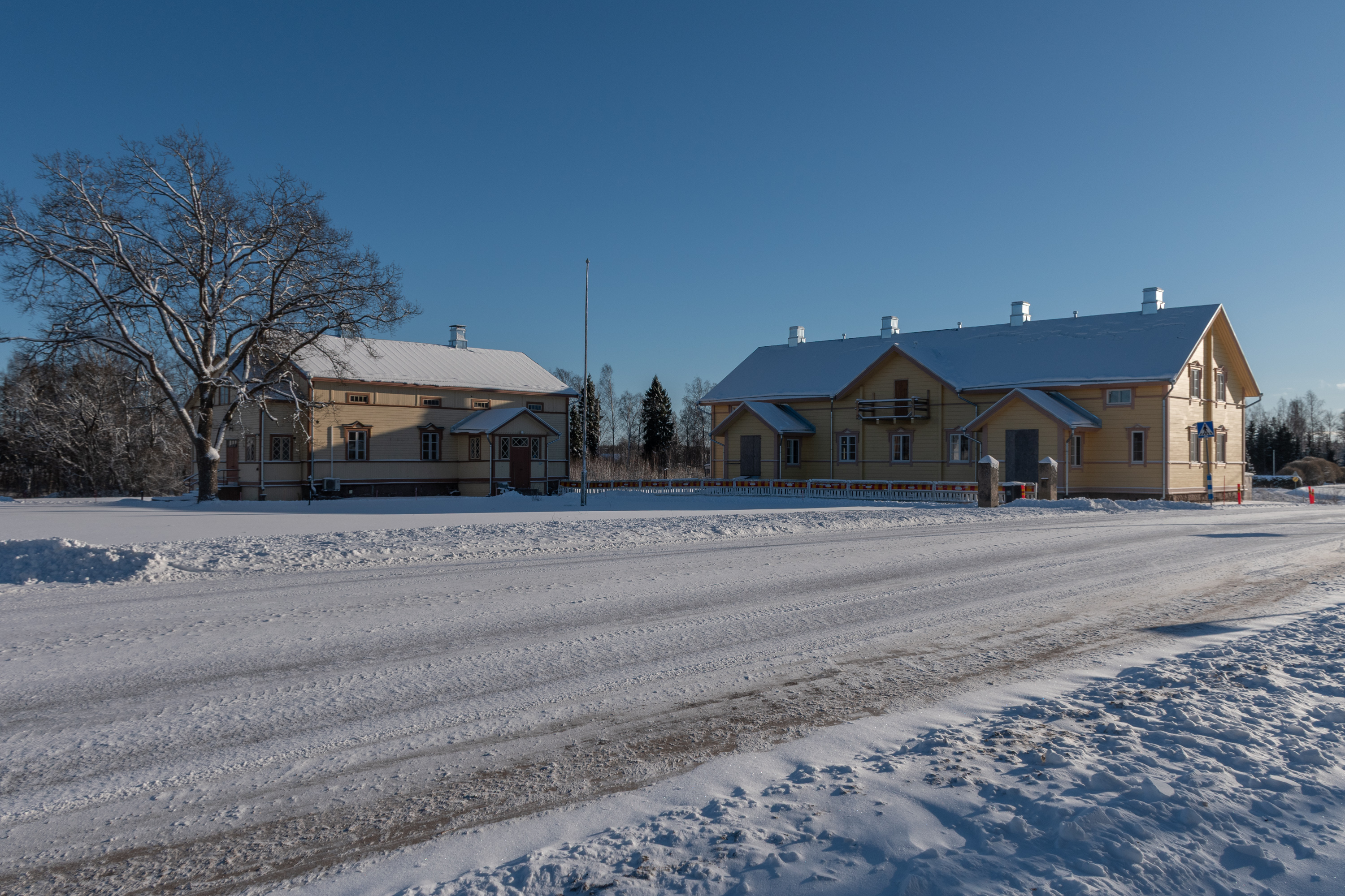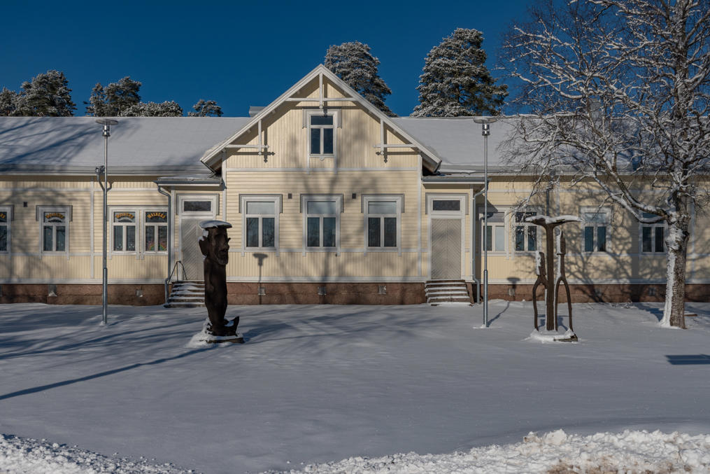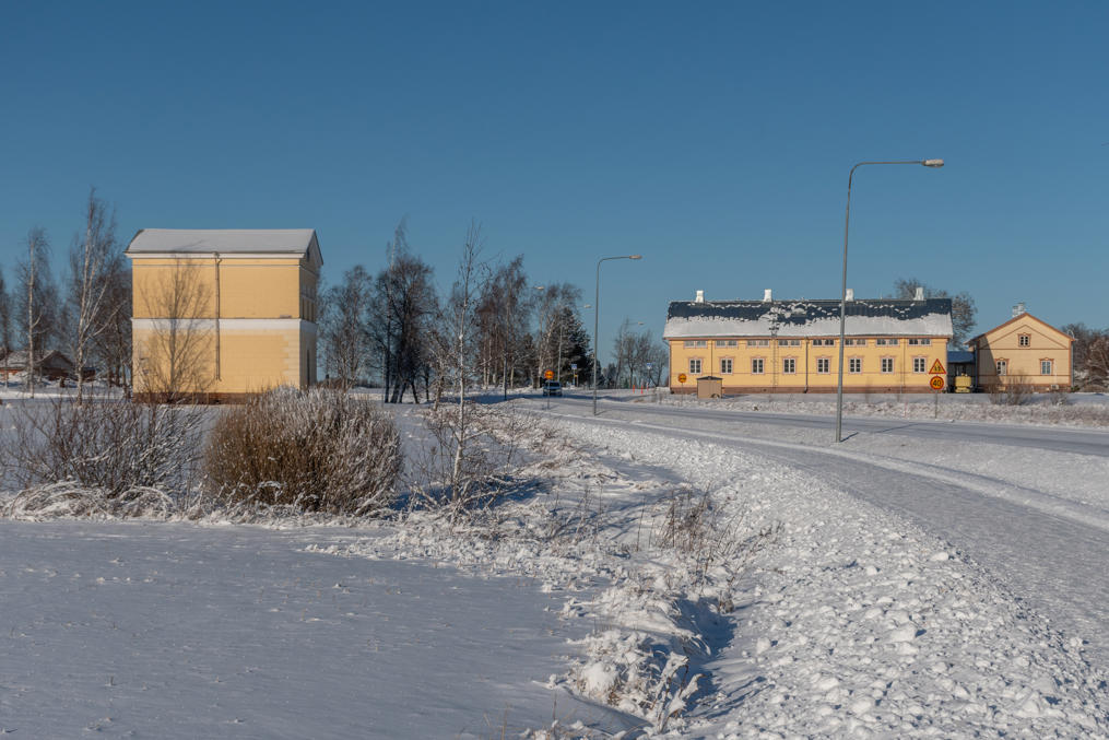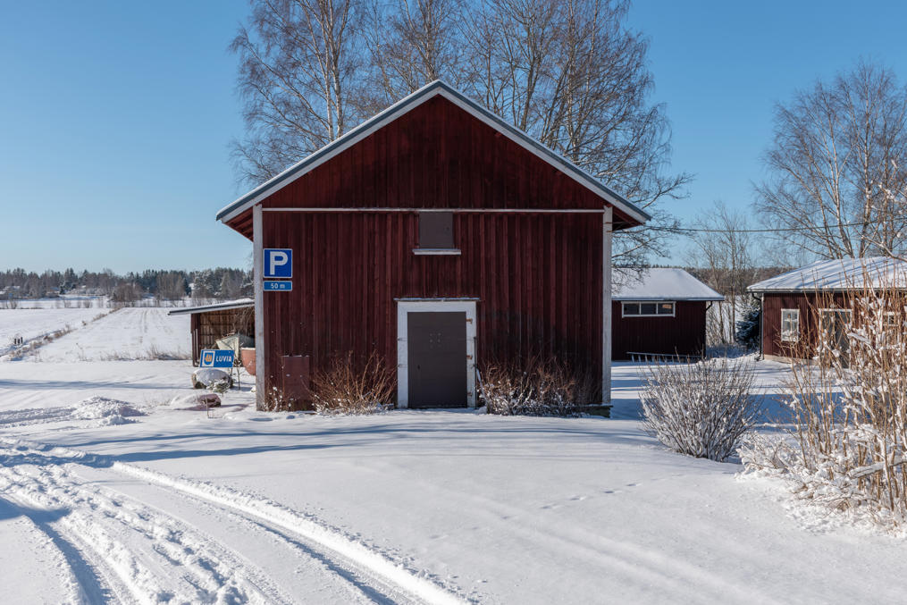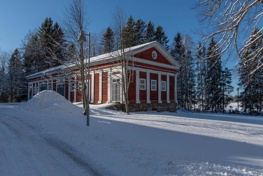 62. Еще две постройки поместья стоят через дорогу от амбара — поменьше дом приказчика, побольше дом работников. Правда, дом работников на самом деле новодельный, в начале 2020-х оба дома купил частный владелец, но один из них был в таком плохом состоянии, что проще было снести и отстроить заново с полным сохранением облика. Владелец планировал сдавать этот дом муниципалитету под детский сад, но те не захотели. Изначальные дома на самом деле были в Вуойоки, а сюда перенесены в 1844.