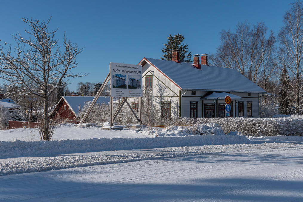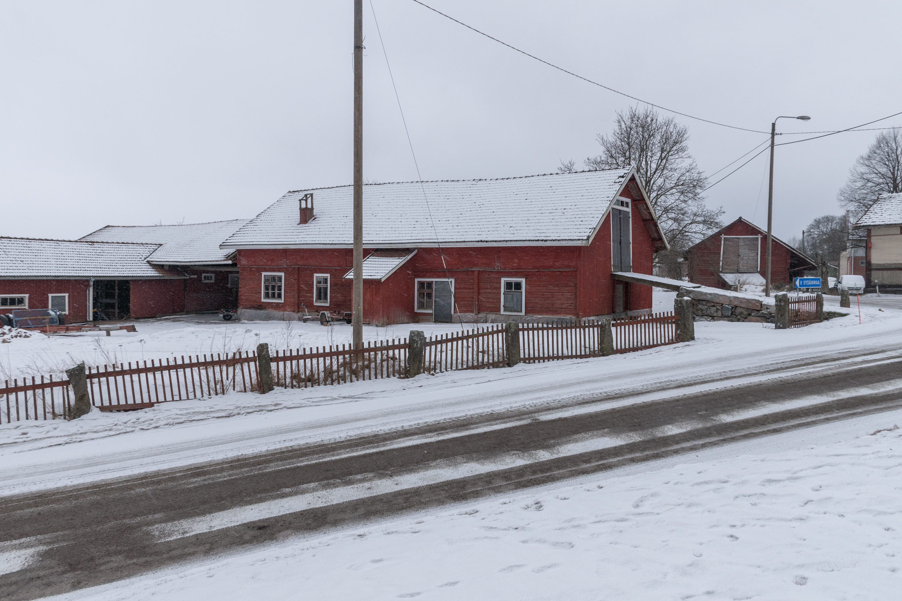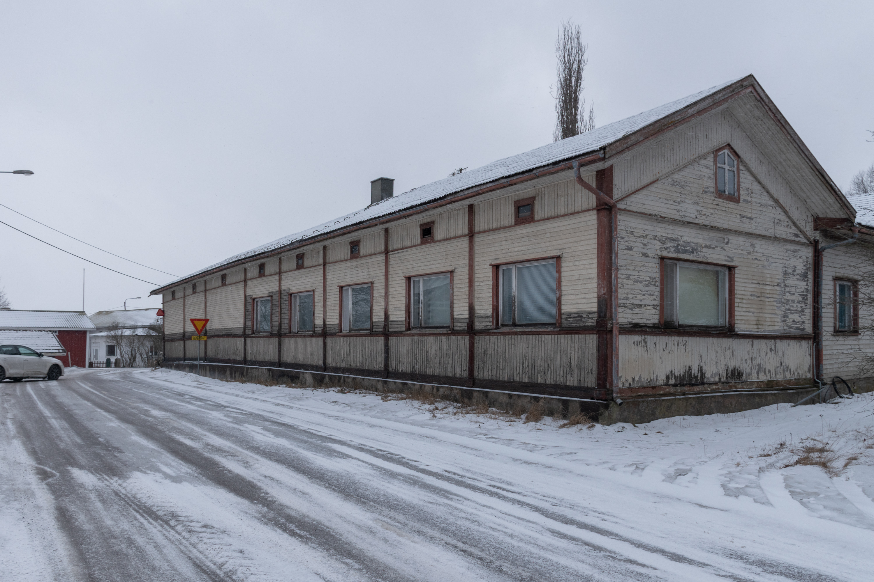 62. Еще две постройки поместья стоят через дорогу от амбара — поменьше дом приказчика, побольше дом работников. Правда, дом работников на самом деле новодельный, в начале 2020-х оба дома купил частный владелец, но один из них был в таком плохом состоянии, что проще было снести и отстроить заново с полным сохранением облика. Владелец планировал сдавать этот дом муниципалитету под детский сад, но те не захотели. Изначальные дома на самом деле были в Вуойоки, а сюда перенесены в 1844.