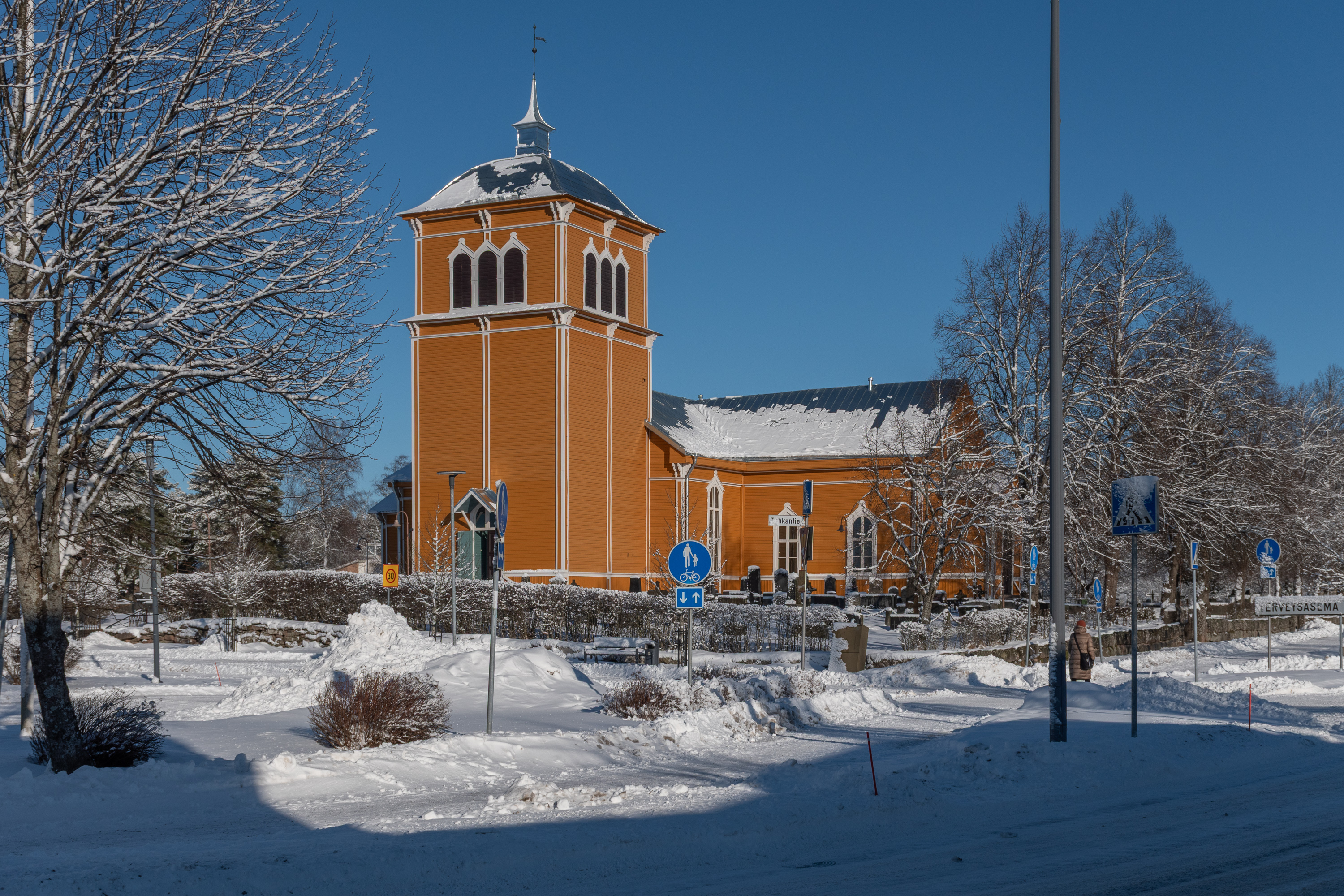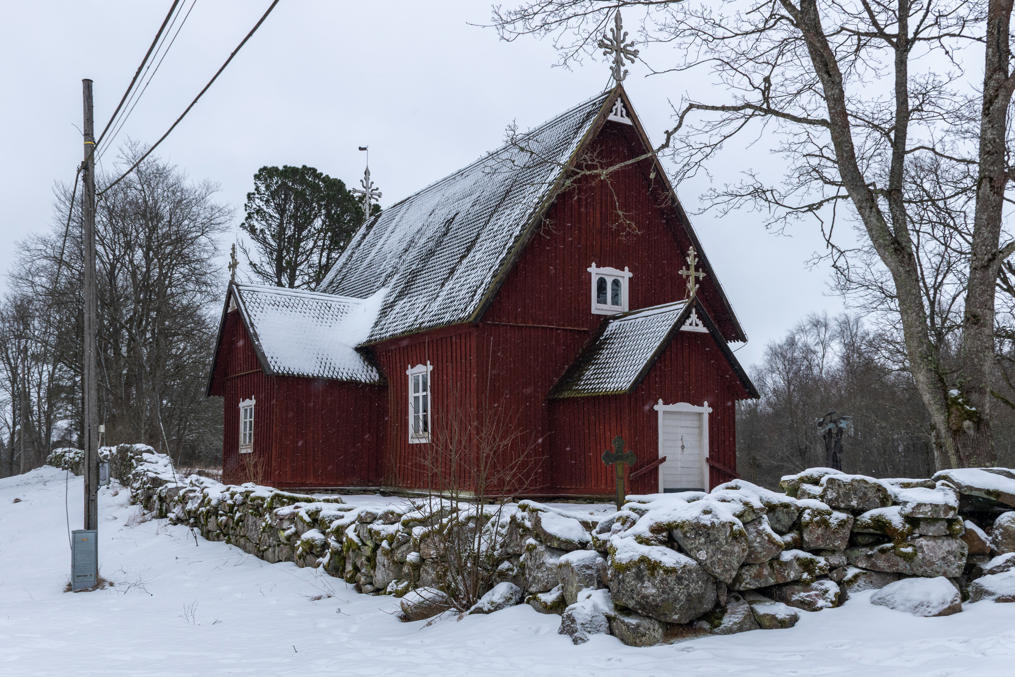 52. Церковь местная неплохая, но не такая красивая, как в Лувии, и не такая старая, как в Ирьянне. Деревянная, 1803 года, зовется также церковью Густава-Адольфа (Kustaa Aadolfin kirkko) — не в честь знаменитого Густава-Адольфа II, а в честь правившего на тот момент Густава-Адольфа IV, того самого, который потом всю Финляндию просрал России.