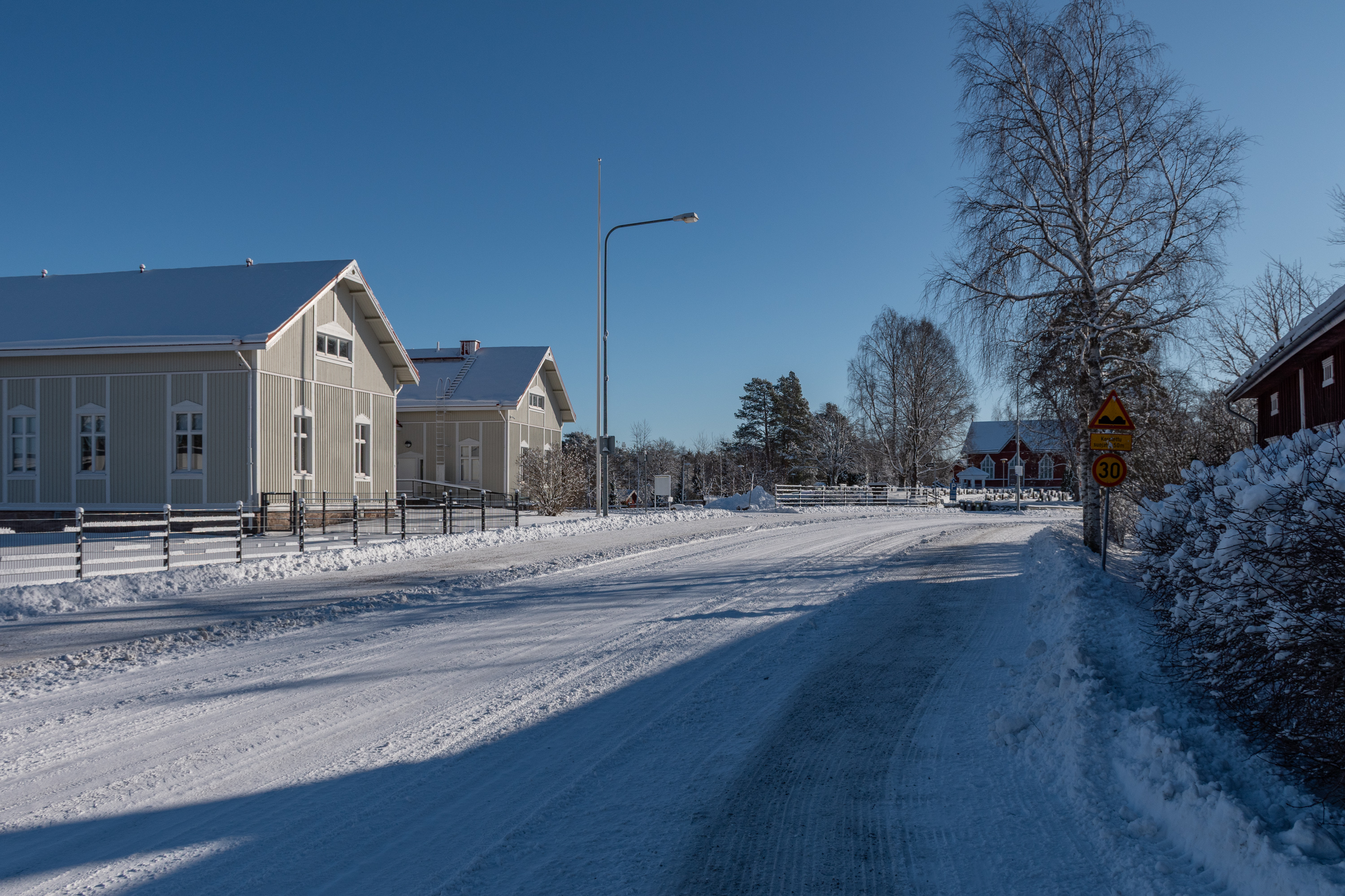 60. В Эурайоки я дошел до северо-восточной окраины поселка, которая именуется Лавила (Lavila). Здесь находилось когда-то поместье Лавила — одно из поместий, которыми владел Тотт и после него прочие, наряду с Вуойоки. Оно существовало с 16 века, то есть было еще старше Вуойоки, и во времена Тотта — крупнее и важнее. Но сохранившееся главное здание от 1906 года, построенное одним из Бьёркенхеймов, гораздо скромнее вуойокского. Сейчас здесь размещается Эурайокское христианское училище (Eurajoen kristillinen opisto).
