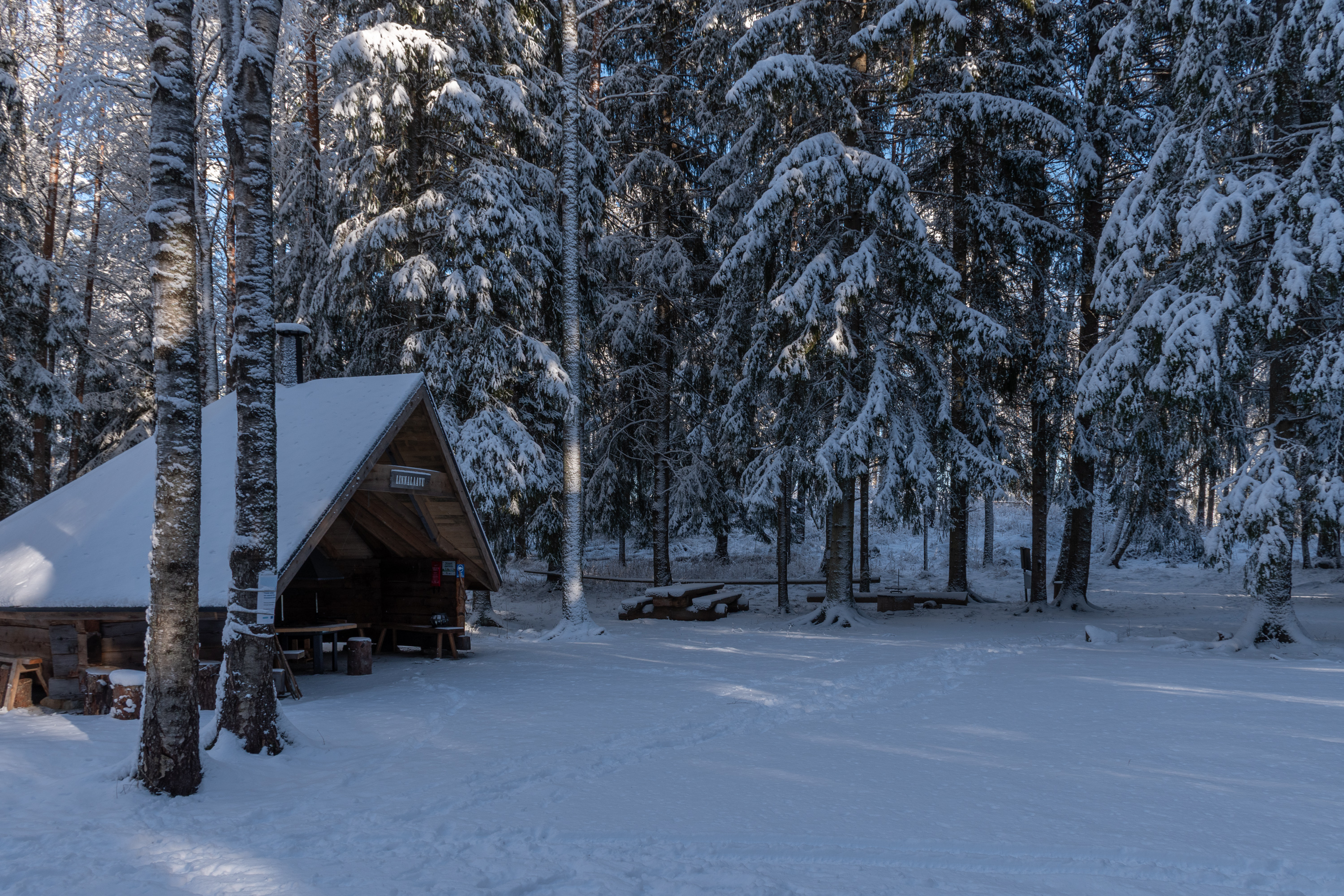 7. Но заехать сюда при случае все равно стоит, очень уж уютное местечко. Огромный новый навес-лааву еще стоит. Дорожка, ведущая к месту, узенькая совсем и зимой частично не чищенная, но снега этой зимой мало было, да мой "Дустер" и так бы проехал :)