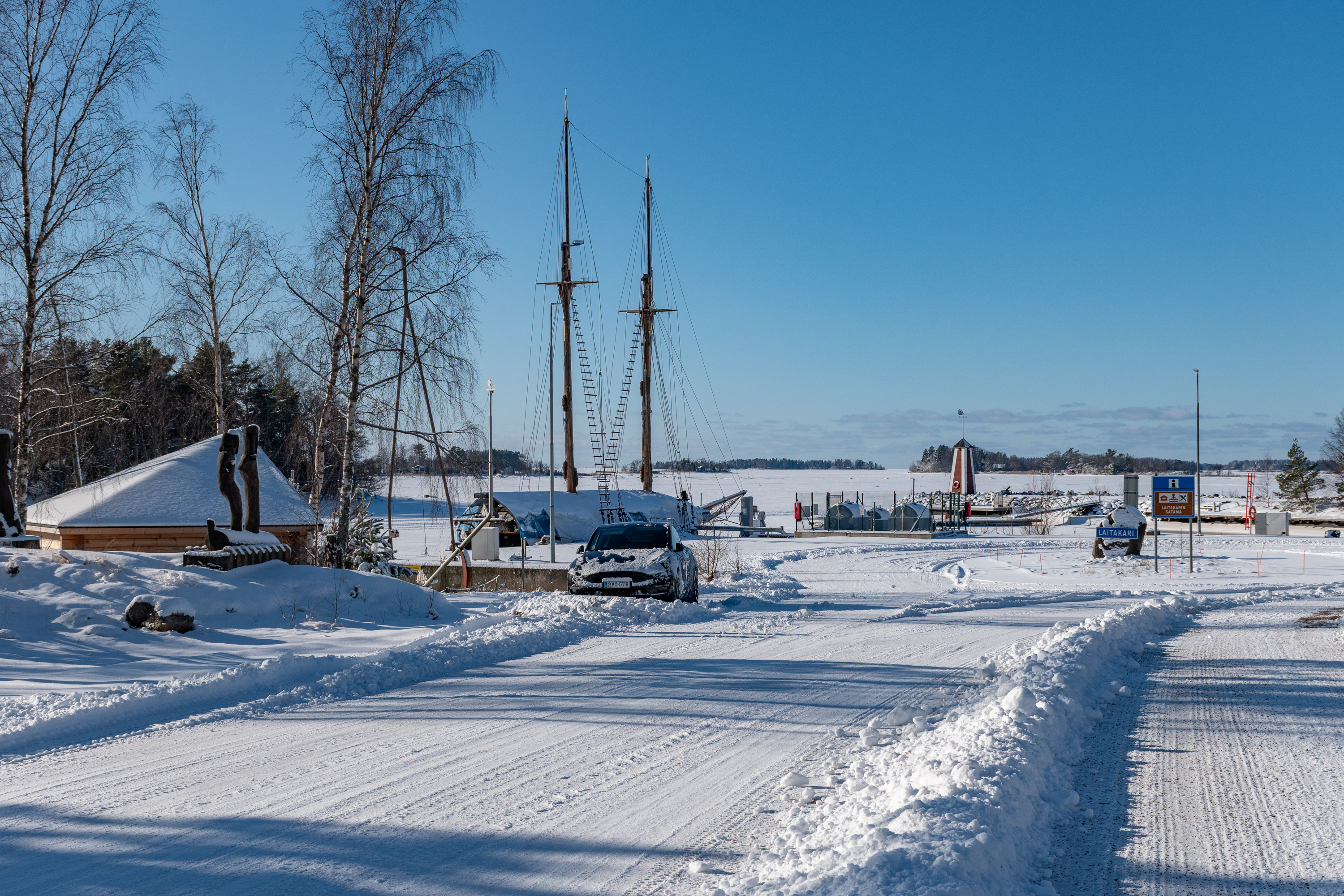 Гавань Лайтакари известна вот этим вот галеасом Ihana ("Прекрасный"), построенным тут же в 2005-2010, по чертежам галеаса "Марс" 1907 года (хотя мотором все-таки тоже оснастили). В 1.2 млн. евро обошелся проект, с поддержкой ЕС и муниципалитета и спонсоров, и трудом добровольцев. На галеасе теперь катают по архипелагу, в т. ч. на острова Кауниссаари и Нирво. Вроде бы не все отправления из Лайтакари, бывают и из Раумы, из города; безмашинным, конечно, из Раумы намного проще будет, чем отсюда.
